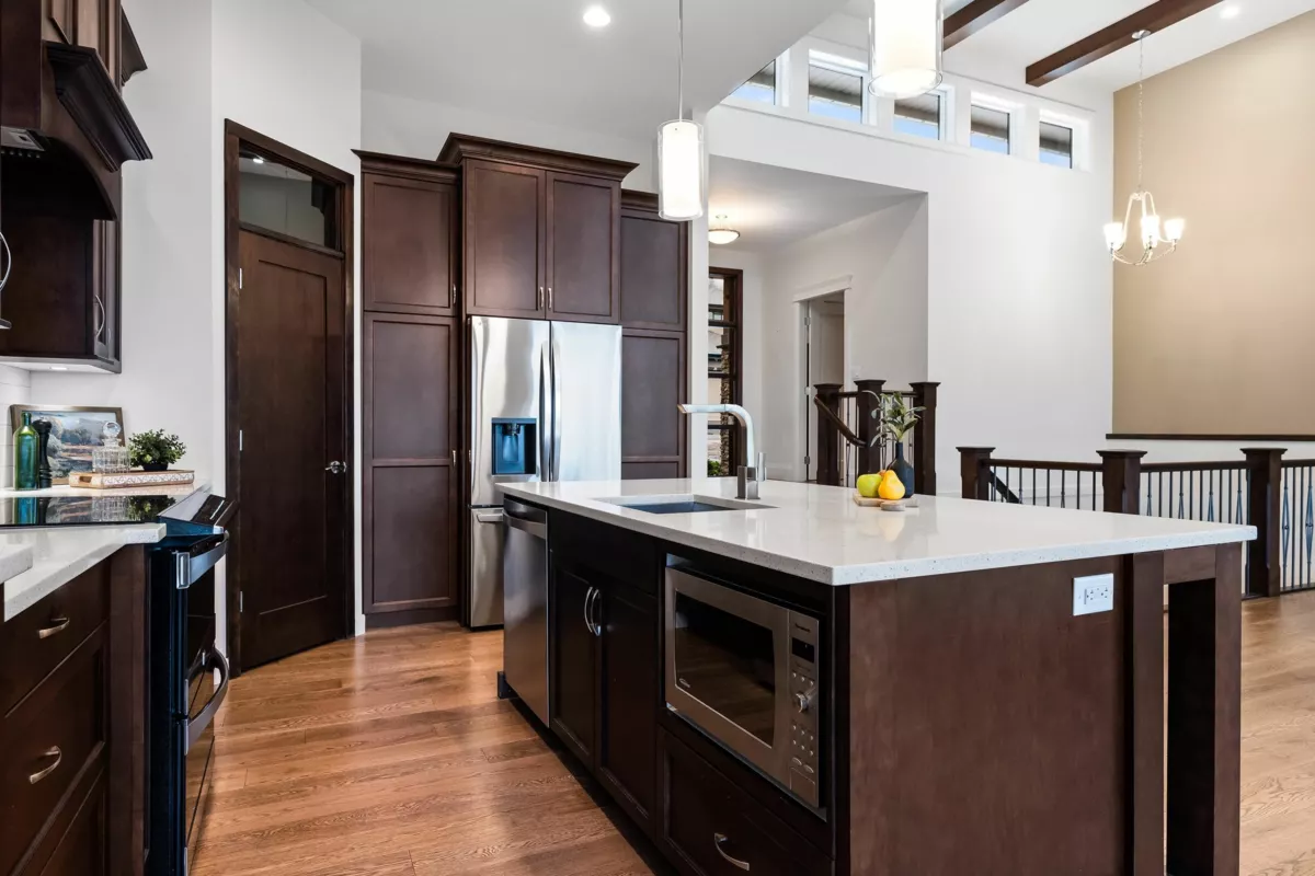 FABULOUS rancher w/basement in one of the BEST locations in Sunridge Estates! This 3,512 sq.ft. home offers BRIGHT, luxurious living backing the golf course. The open-concept main floor features high ceilings, large windows, modern gas fireplace, and access to a covered patio with serene views. The gourmet kitchen includes rich wood cabinetry, quartz counters, stainless steel appliances, new fridge, beverage cooler, pantry, and island with storage and eating bar! The spacious primary on main has a 5-pc ensuite with soaker tub, dual sinks, walk-in shower, W.I.C. with built-in shelving, and patio access. Downstairs offers 3 bedrooms, 3-pc bath, spacious office, rec room, and abundant storage. A must-see!