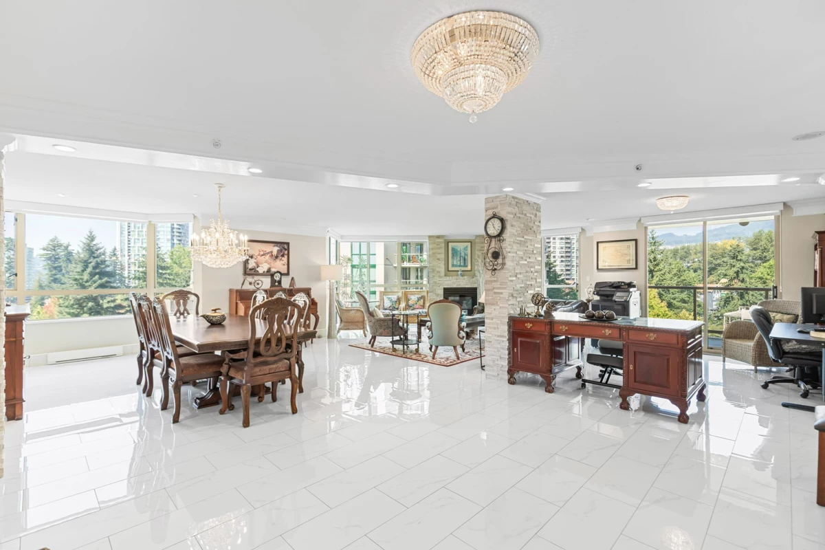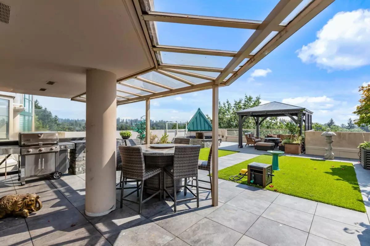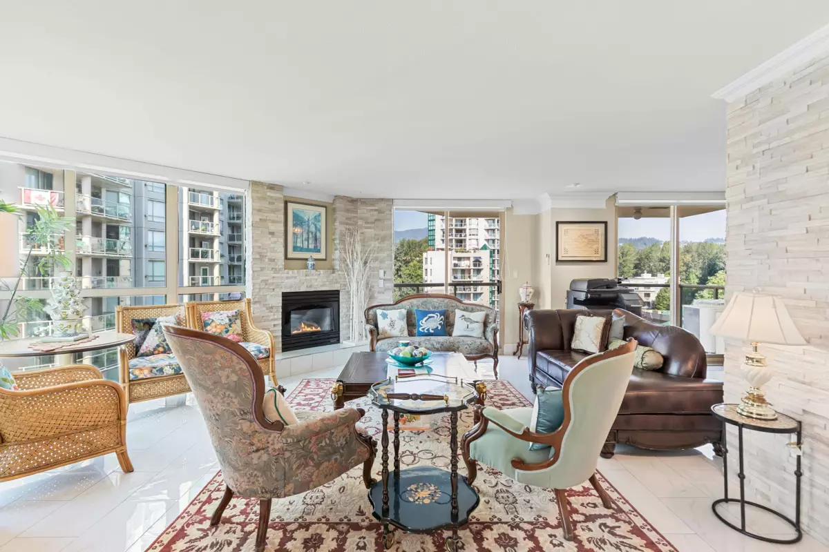 Prestigious 3,654 SF Bosa-built Apartment with 1,800 SF private patio and breathtaking mountain views. Ideal for multigenerational living or a luxury work-from-home lifestyle. 5 spacious bedrooms, 3 full baths, 3 fireplaces, full A/C, and excellent Feng Shui with natural light and open layout. Gourmet kitchen with Wolf steam + convection ovens, Miele dishwasher, LG ThinQ fridge, wine & beverage fridges, and quartz counters. Spa-inspired ensuite with bidet, rain shower, double vanity, and heated floors. Includes 5 secure parking stalls and 3 full-height storage lockers (combined into 1). Steps to SkyTrain, Lafarge Lake, top schools, and Coquitlam Centre. Call your Realtor for a private viewing.