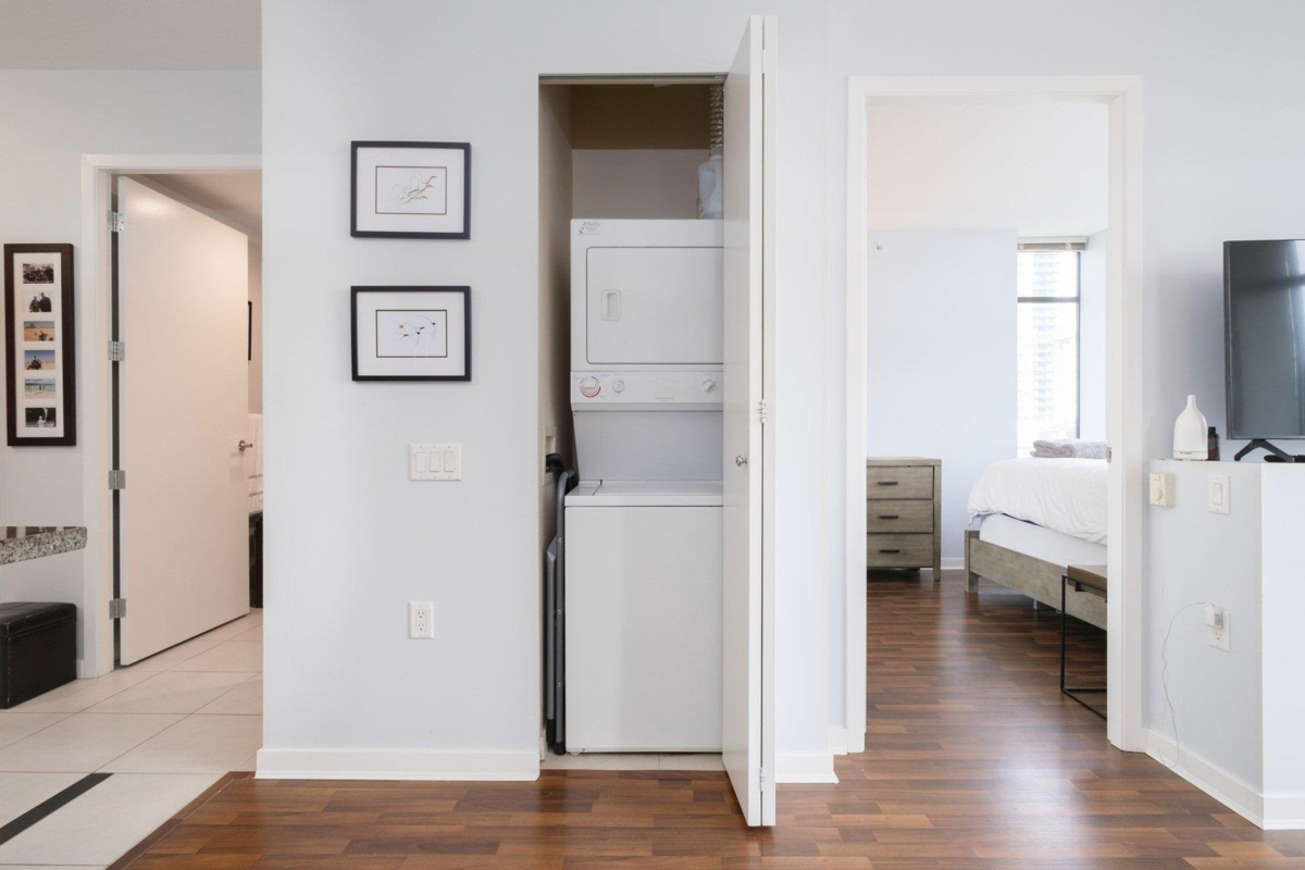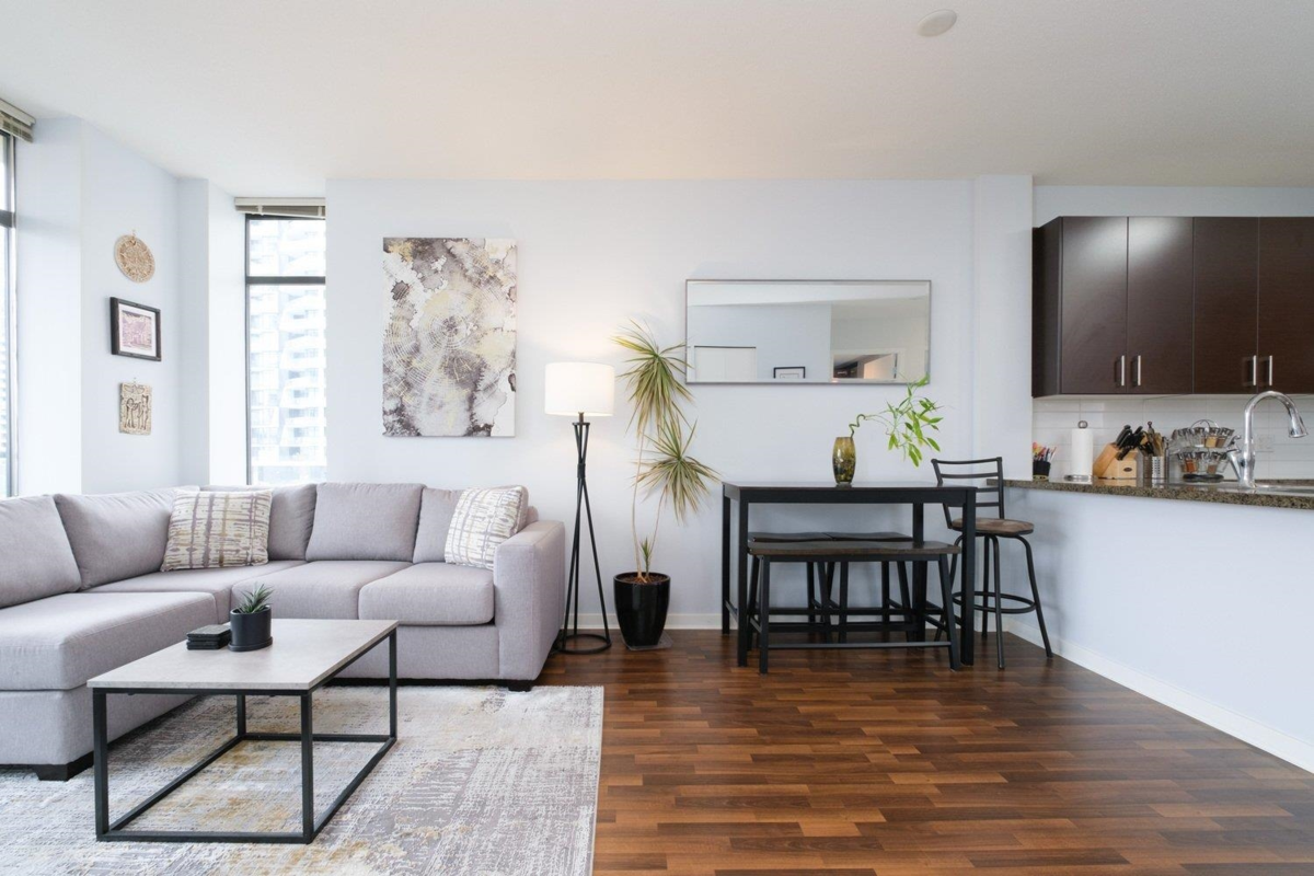 Welcome to your dream urban lifestyle! This fantastic one bedroom 647 SqFt condo is located in the heart of a rapidly growing urban community, offering a perfect blend of convenience, comfort, and countless amenities such as fitness centres, hot tub/sauna, indoor swimming pool, community gardens, rooftop patios, private concierge, club house/media room and much much more. Excellent access to public transportation/skytrain, steps away from trendy restaurants, cafes, boutiques, and entertainment options. Recent upgrades include new dishwasher, new washer and dryer, and newly painted interior walls. Enjoy a vibrant urban lifestyle without the need for a car. hurry in and don't miss this opportunity to own this home.