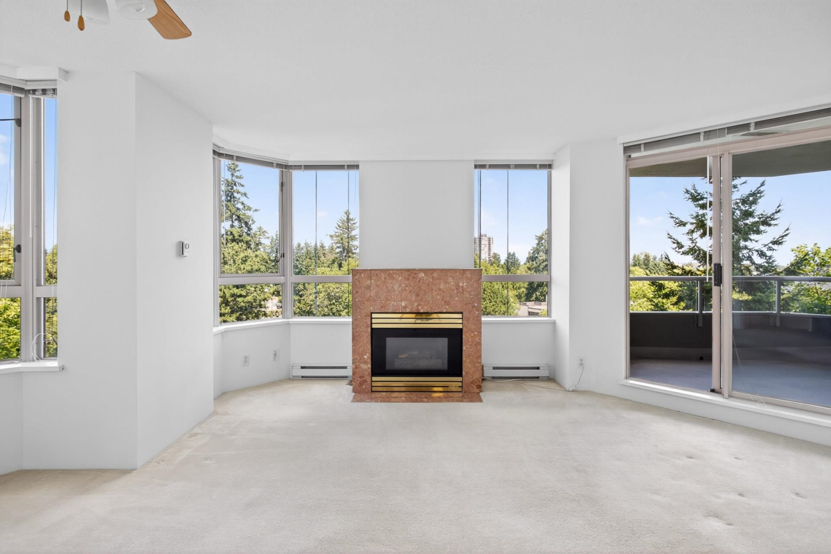 MOVE IN NOW! CHECK OUT this fantastic 1 bedroom and den (2nd bed) and 2 bathrooms with great views! Ample light in this spacious home with floor to ceiling windows, large balcony, feature gas fireplace in large living room. 3 parking stalls (146,460,589), storage locker (P1-16) and plenty of visitor parking. Check out the amenities...2 outdoor pools, 2 gyms, tennis courts, hot tub, sauna and party room.