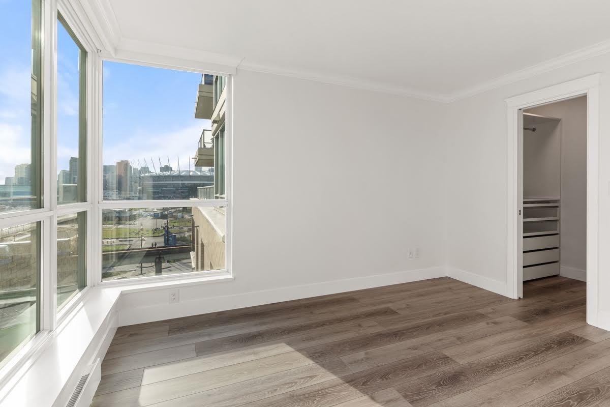 Spacious 2 bed, 2 bath, 1,140 sq.ft. home with stunning SW water views in a quality Bosa building. Located in the highly sought-after False Creek neighbourhood, this home features a bright open layout, well-sized bedrooms, and numerous upgrades, including engineered hardwood flooring, updated bathrooms, new kitchen cabinets, electronic roller blinds, optimized closet space, and elegant crown molding throughout. Unbeatable location across from the seawall and steps to SkyTrain, Science World, Olympic Village, BC Place & Rogers Arena. 2 parking stalls + 1 storage locker included. A beautifully cared-for home in an exceptional waterfront community. Please call your local realtor to book a showing or reach out for more details!