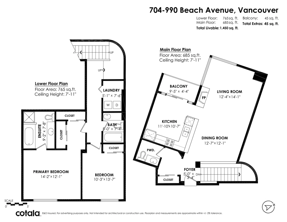 SEE VIRTUAL TOUR! If you’ve had your eye on a two storey condo in Yaletown, then this is it! Welcome to 990 Beach Ave and this 2 bed, 3 bath, 7th Floor condo w/ over 1400sqft of living space and views of False Creek. With great bones, this unit is waiting for your inspiration to bring it to a ‘Perfect 10’. Entry level kitchen, dining, living room w/ gas fireplace, 2pc powder, and balcony make this thoughtful floorplan perfect for entertaining. Downstairs features primary bed w/ 4pc ensuite w/ soaker tub, second spacious bedroom and bath, full laundry room w/ storage. Think that's all? The 5-star amenities include a gym, glass bottom pool, hot tub, squash court, and meeting room. Walk to English Bay, Aquatic Center, and more!