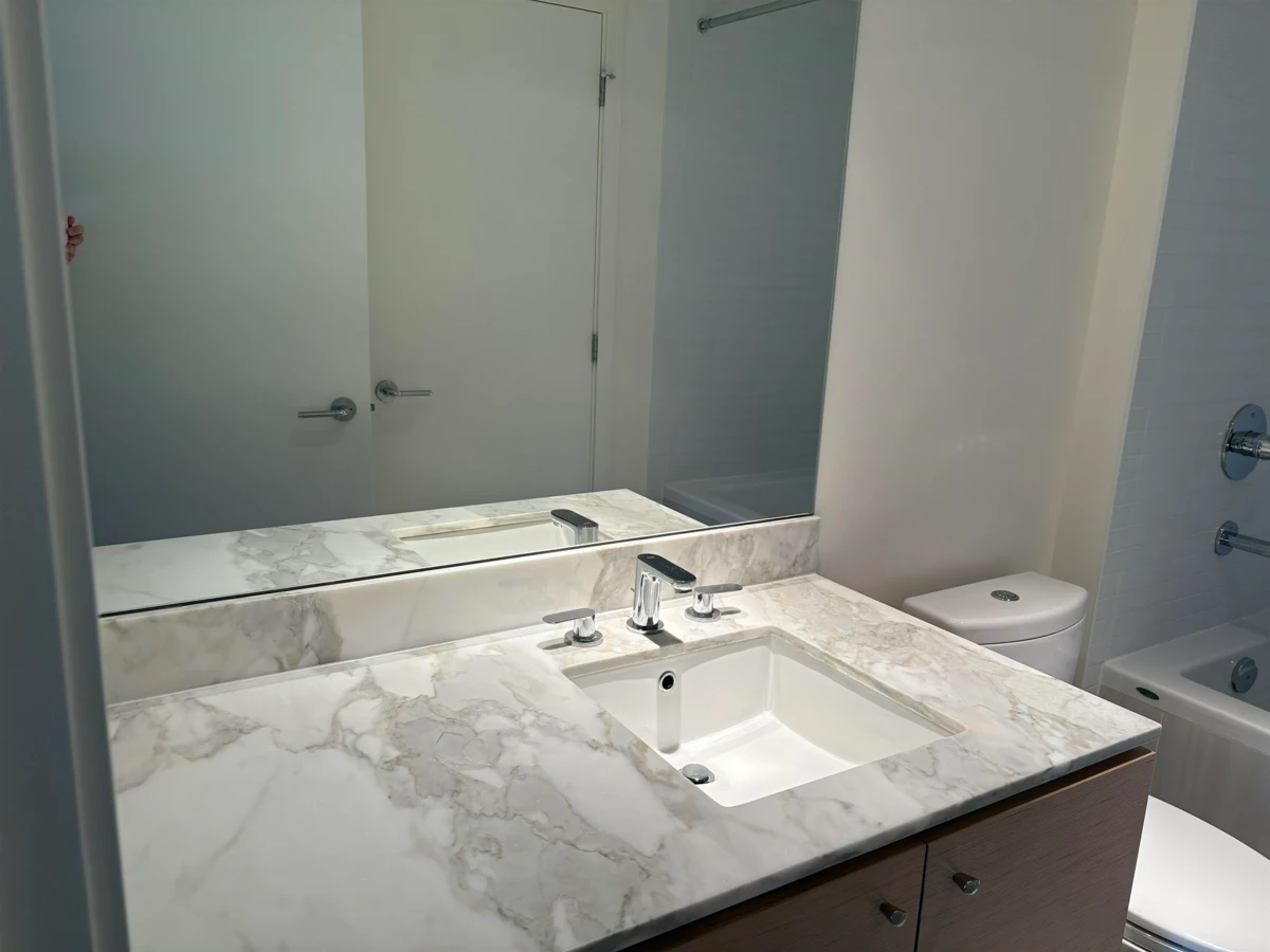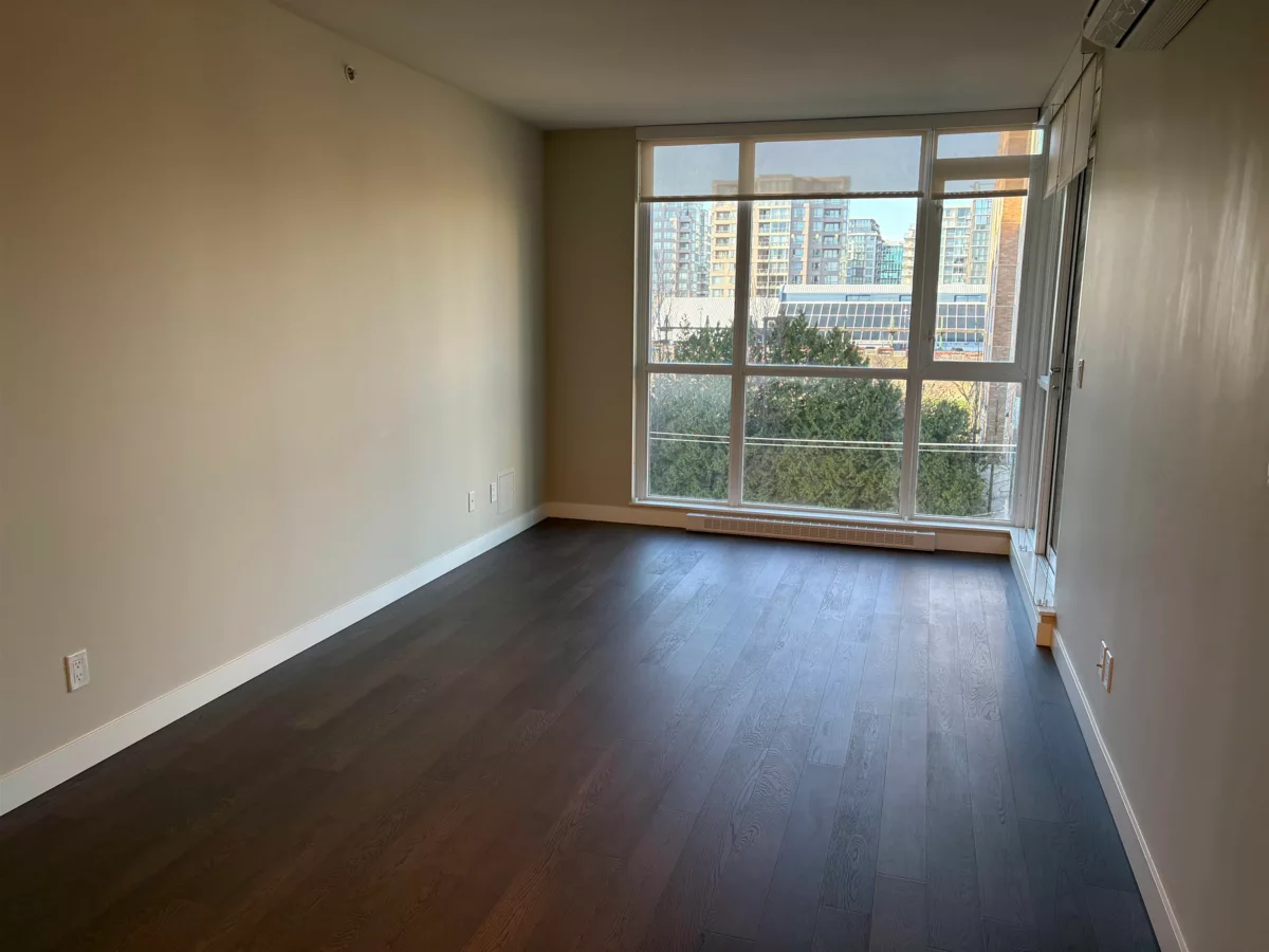BRAVO at Brighouse - this spacious 1 bedroom, 1 bath, PLUS DEN home conveniently located in the heart of Richmond. Laminate flooring, top of the line stainless steel appliances. Both kitchen & bathroom feature elegant Caesar stone countertops & wood cabinetry. Low strata fees include city water & sewer. Balance of 10 year new home warranty. Terrific amenities include gym, party room & playground. Enjoy the comfort of AC & a private West-facing balcony for outdoor relaxation. Close to Richmond Public Market, shops & restaurants, all within walking distance to Brighouse Skytrain Station, Richmond Centre, Kwantlen University, & Lansdowne Mall. 1 parking.