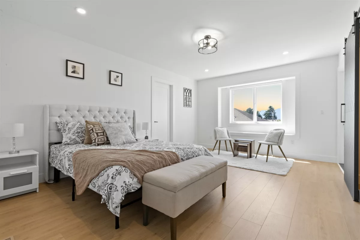 Welcome to this beautiful newly built home by Sindhi Custom Homes in the heart of Sardis. This home offers over 3,300sf of living space with 6 bedrooms and 6 bath while sitting on an approx 4,000sf rectangular lot. Main floor features an open concept floor plan with a den/office off the main entrance, gourmet kitchen, quartz counters throughout, prep kitchen, fam rm, dining, mudroom, and a 2pc bath. Upstairs offers a generous sized master suite with it's own 5pc ensuite, walk in closet, and additional 3 bedrooms+2 full bath. Downstairs offers a LEGAL 2 bed suite w/ a private entrance, making it perfect for extended family or as a mortgage helper along with a bonus den. This home is located just minutes from all your shopping needs, bus routes, HWY1, schools, and parks.