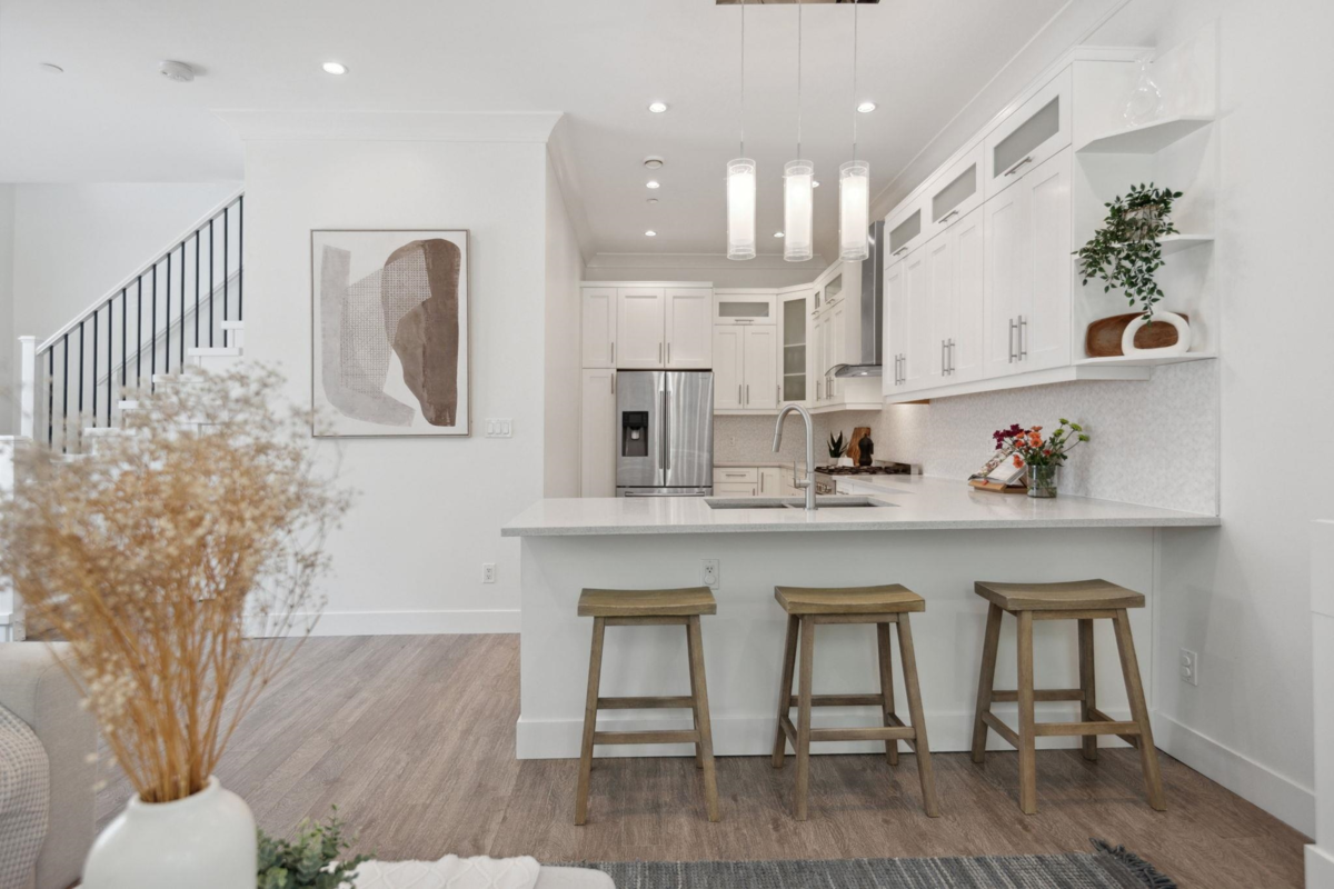 Immaculate, contemporary 1/2 front duplex styled to perfection in sought-after Mount Pleasant. Located on a beautiful tree-lined bike street. 3 beds & 3 baths on two levels. Radiant heat for the winter, and stay cool in the summer as this home is AIR CONDITIONED! Modern quality finishes, high ceilings with pot lights, security system & fresh paint throughout. Gourmet kitchen is outfitted with a gas range, stainless appliances, and quartz counters. King-size bed will fit nicely in the generous primary with a private en-suite. Sit on your porch and enjoy your coffee or BBQ from your fenced south-facing yard. When it cools down, relax in front of the fireplace. Detached garage in the rear and steps to public transport, cafés and Michelin recommended restaurants like Savio Volpe.