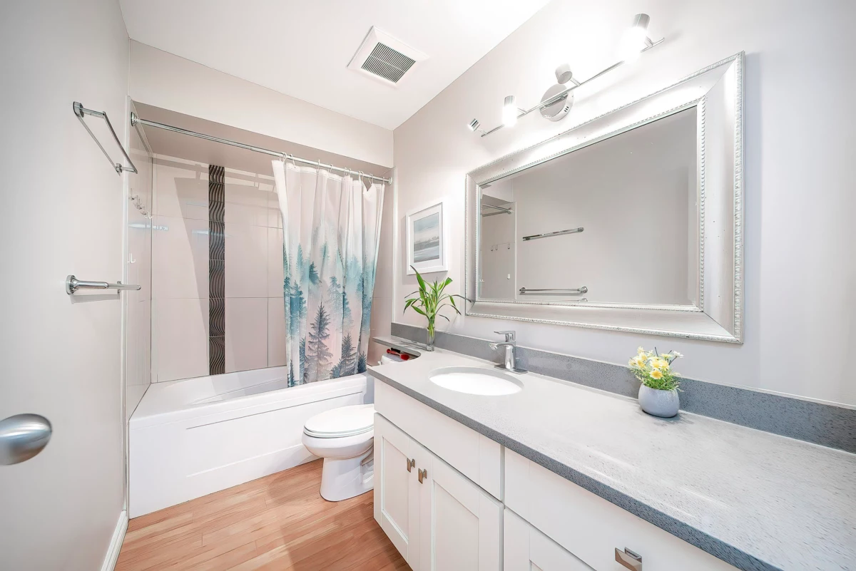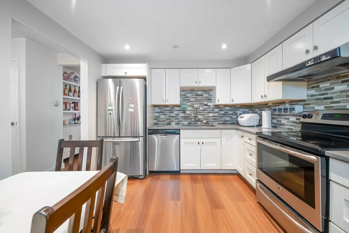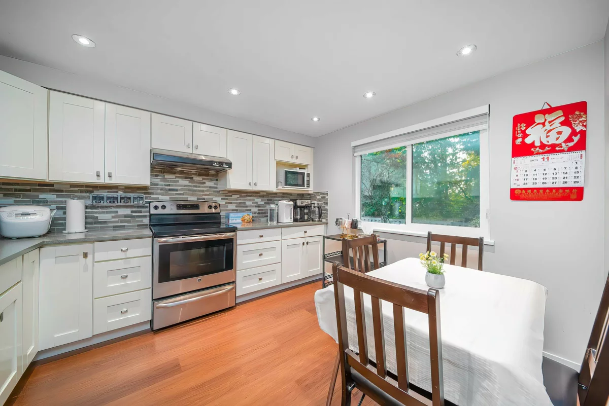 Live Like a SINGLE HOUSE! Over 2,000 sq.ft., SOUTH–NORTH Facing! Beautifully updated 3-level, 4-bedroom, 3.5-bathroom townhome offering exceptional space and comfort. Recent upgrades include kitchen, bathrooms, flooring, windows, and appliances. Bright living/dining areas feature quality flooring and a cozy gas fireplace. The kitchen with eating area overlooks a private greenbelt. Generous-sized bedrooms including a primary with updated ensuite. The lower level offers excellent flexibility—large rec room,1 bedroom,new full bathroom, ideal for extended family or RENT to a student as a MORTGAGE HELPER. A rare townhome that truly lives like a single detached home. Move-in ready and shown with pride. Open house: Nov 29& 30, 2-4PM