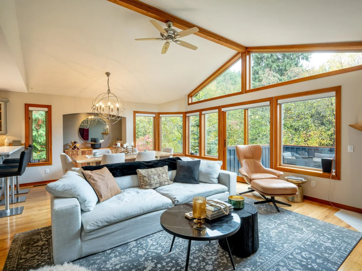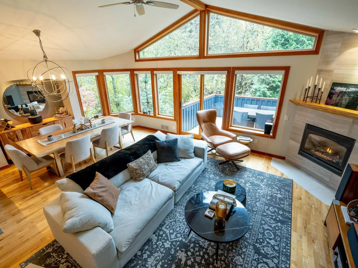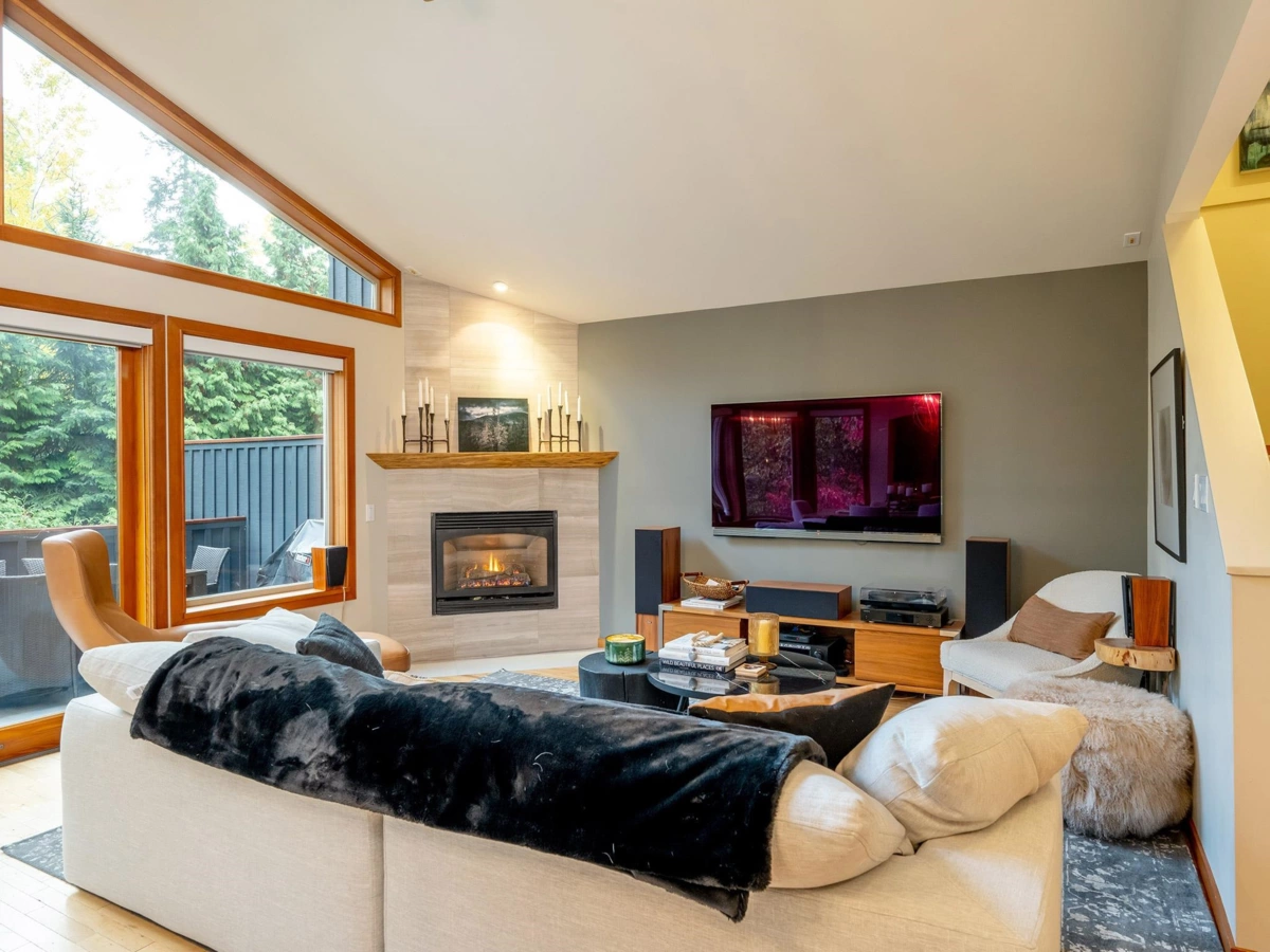 Imagine living a short drive or e-bike to the village, while enjoying a truly private and peaceful setting. Conveniently situated near Spruce Grove park & Lost Lake trails. Backing onto protected greenbelt in the very desirable Spruce Grove neighborhood. This location has it all! The combination of picture windows & vaulted ceilings invites wonderful natural light into the home. Large sundecks on both the front & back extend your living & entertaining space. Outside is a covered walkout patio & grassy flat yard. Creature comforts include a natural gas fireplace & radiant in-floor heating. Tasteful modern updates completed in 2020 make this home move-in ready. Outdoor enthusiasts will also appreciate having a garage, generous crawl space for storage, laundry room & extra long driveway.