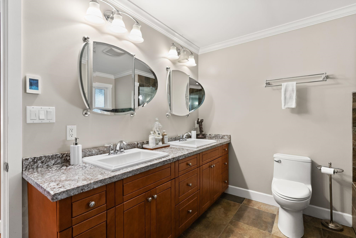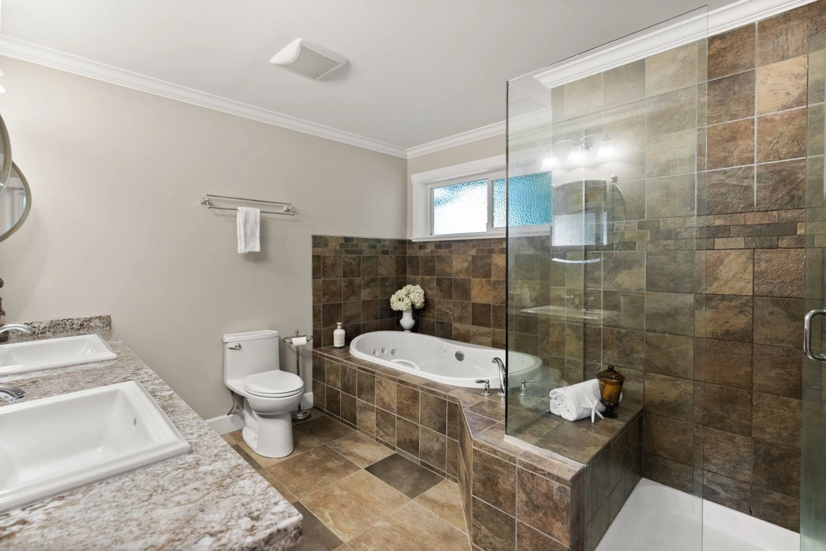 Executive Rancher shows as new! Lovingly maintained & professionally renovated w/ no expense spared. 2 permitted additions expand this sprawling 2,500 SF single-level home w/ 5 bdrms & 3 full bath on a lrg 9,500 SF lot in a quiet cul-de-sac of great neighbours. Stunning kitchen w/ granite counters, gas range, built-in drawer microwave, pull-outs & heated tile floors. Spa-inspired baths feature granite, dbl sinks, frameless showers & heated floors. Bright great room w/ skylights, clerestory windows & vaulted ceiling opens to private deck w/ Fire Bowl & hot tub for entertaining. Retreat to your primary wing w/ fireplace, jetted tub & W/I closet. BONUS 675 SF detached garage/workshop w/ 600 SF attic storage. Roof 1.5 yrs! Easy access to schools, commuter routes & amenities. OH SUN NOV 16 2-3