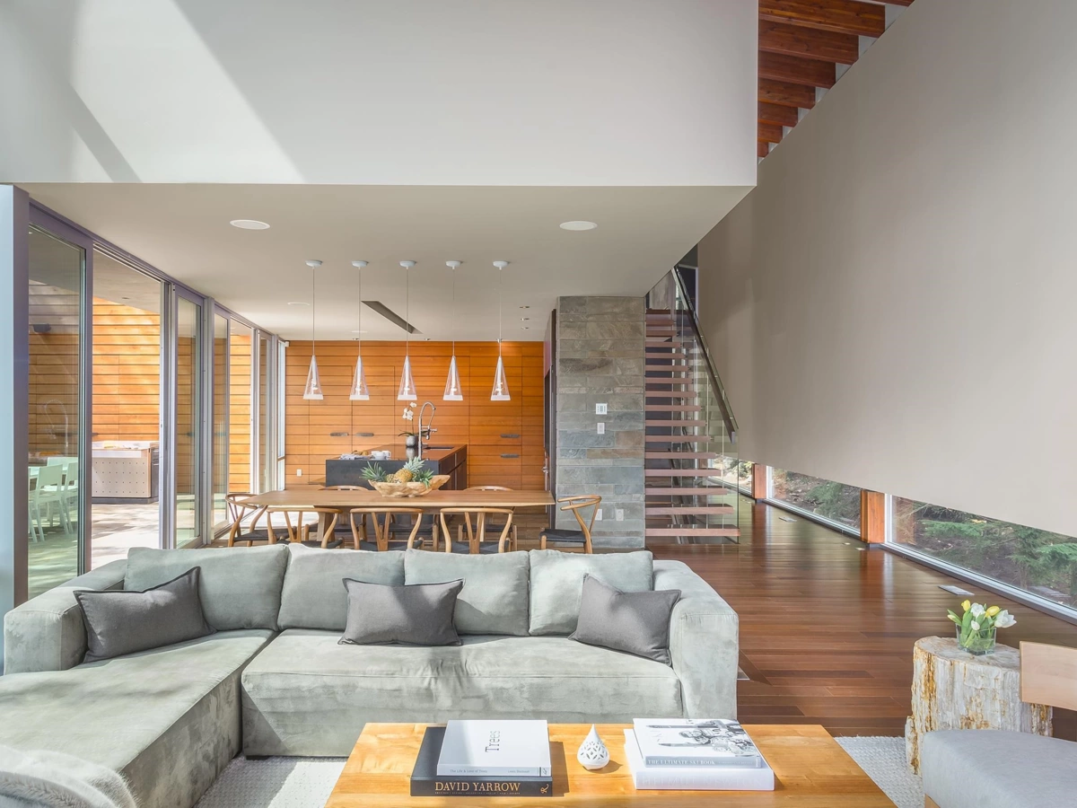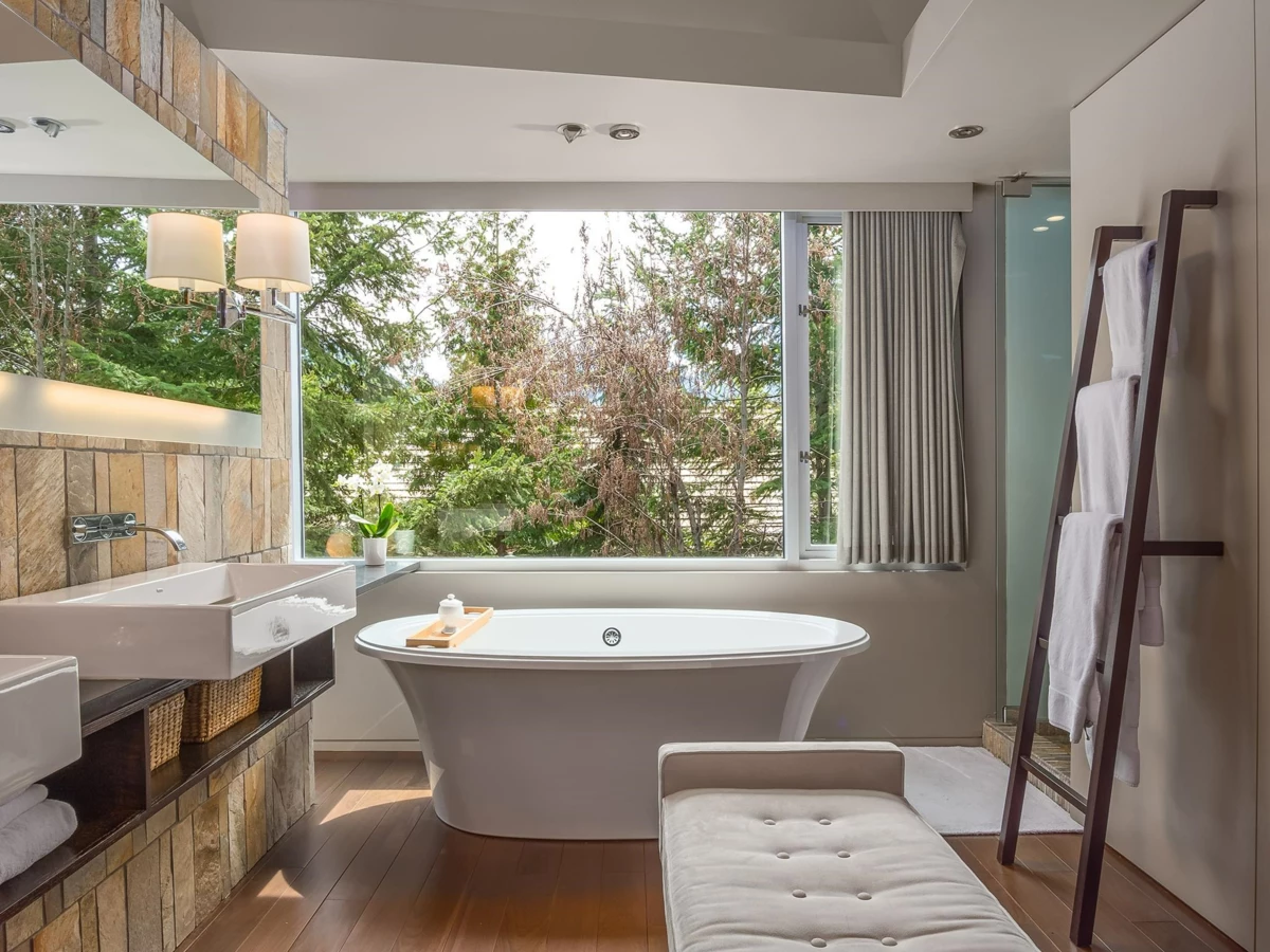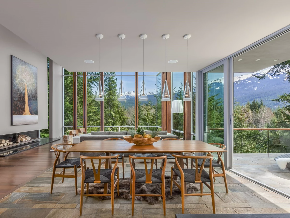 Clean, sophisticated lines capture natural surroundings and welcomes expansive panoramic mountain views through floor-to-ceiling windows that envelope the main living area, while large sliders seamlessly connect the indoors to the expansive outdoor living space with oversized gas fireplace. Providing architectural design elements throughout, this purposefully designed residence with modern comforts includes five ensuite bedrooms, family room, wine room, outdoor hot tub and firepit, ideal for hosting family and friends. Located just a few minutes’ walk to Whistler Village, lakes and trails, this stunning residence offers a rare and valuable combination of privacy, space, natural surrounds, and uninterrupted views - a true retreat with access to the magic of the mountain resort.