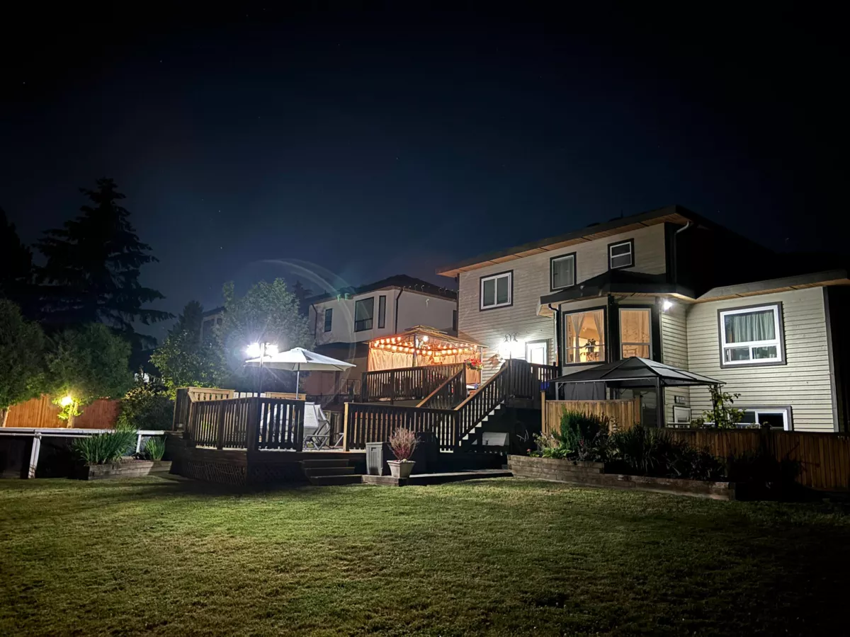 WELCOME TO THE PRESTIGIOUS NEIGHBOURHOOD OF CHIMNEY HILLS!!! This beautifully maintained home is situated on a Rare Half-Acre Gross Density Lot with Nearly 100FT of Frontage, Backing onto a peaceful Greenbelt for added privacy and charm. The home offers a bright and open layout featuring a vaulted foyer that seamlessly connects to the formal living and kitchen areas. Recent upgrades include a newer high-efficiency Furnace and Hot Water Tank (2023). The kitchen has granite countertops and solid oak cabinetry, combining quality and timeless appeal. Downstairs you'll find a self-contained Two-Bedroom in-law Suite with a private entrance, patio, and its own fenced backyard perfect for multi-generational living or rental income.OPEN HOUSE SEPT 14 SUN 2-4PM