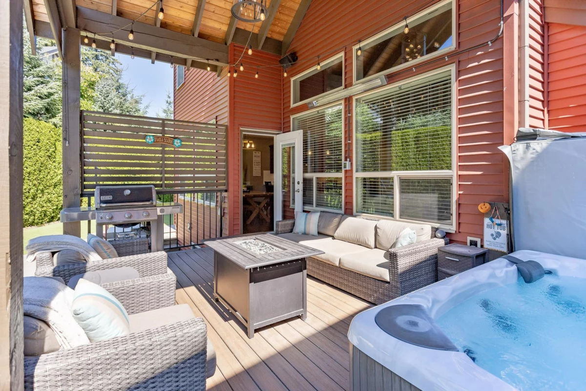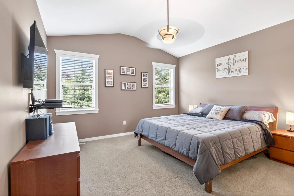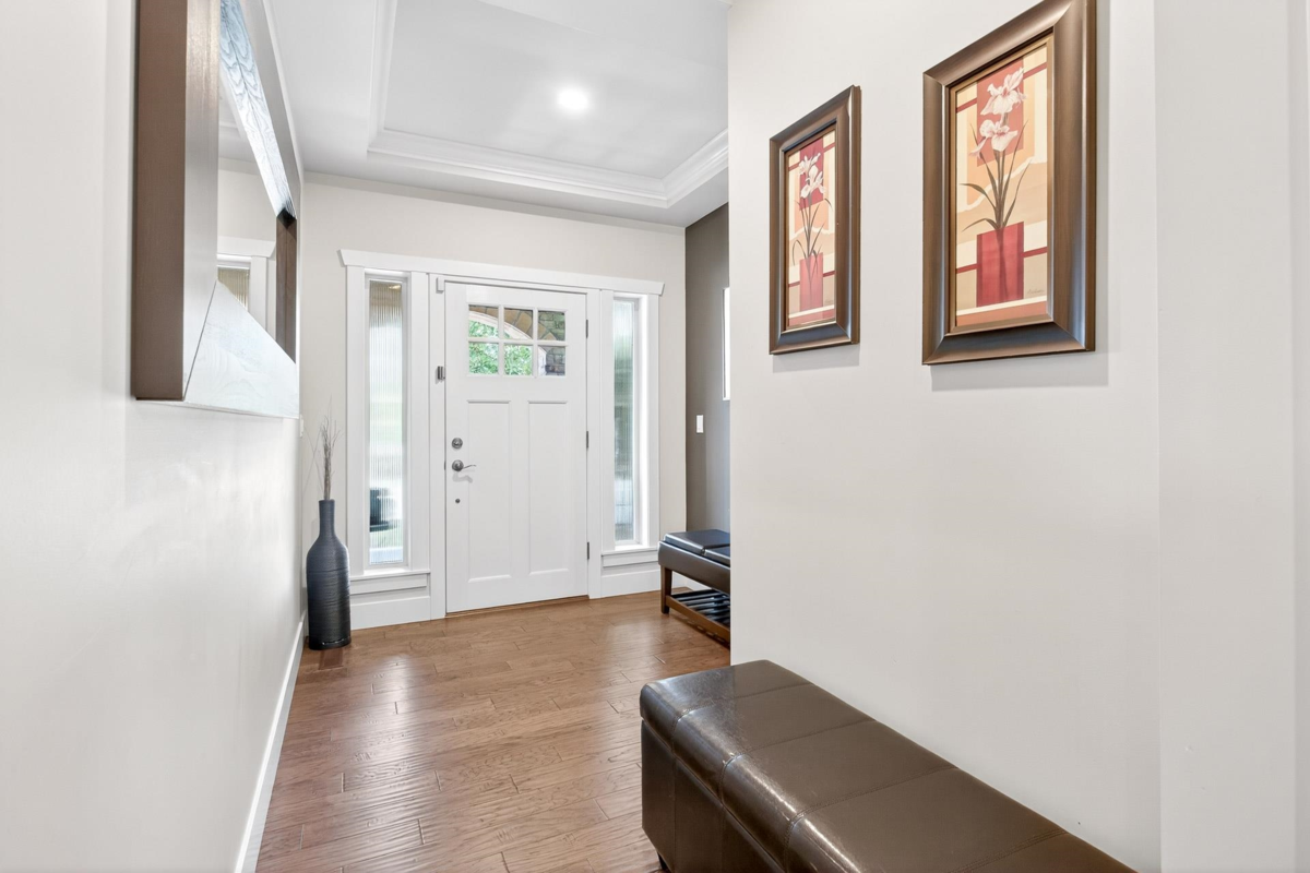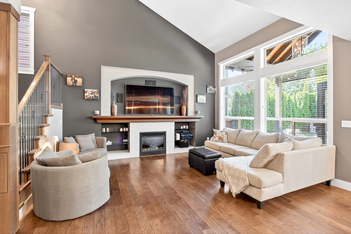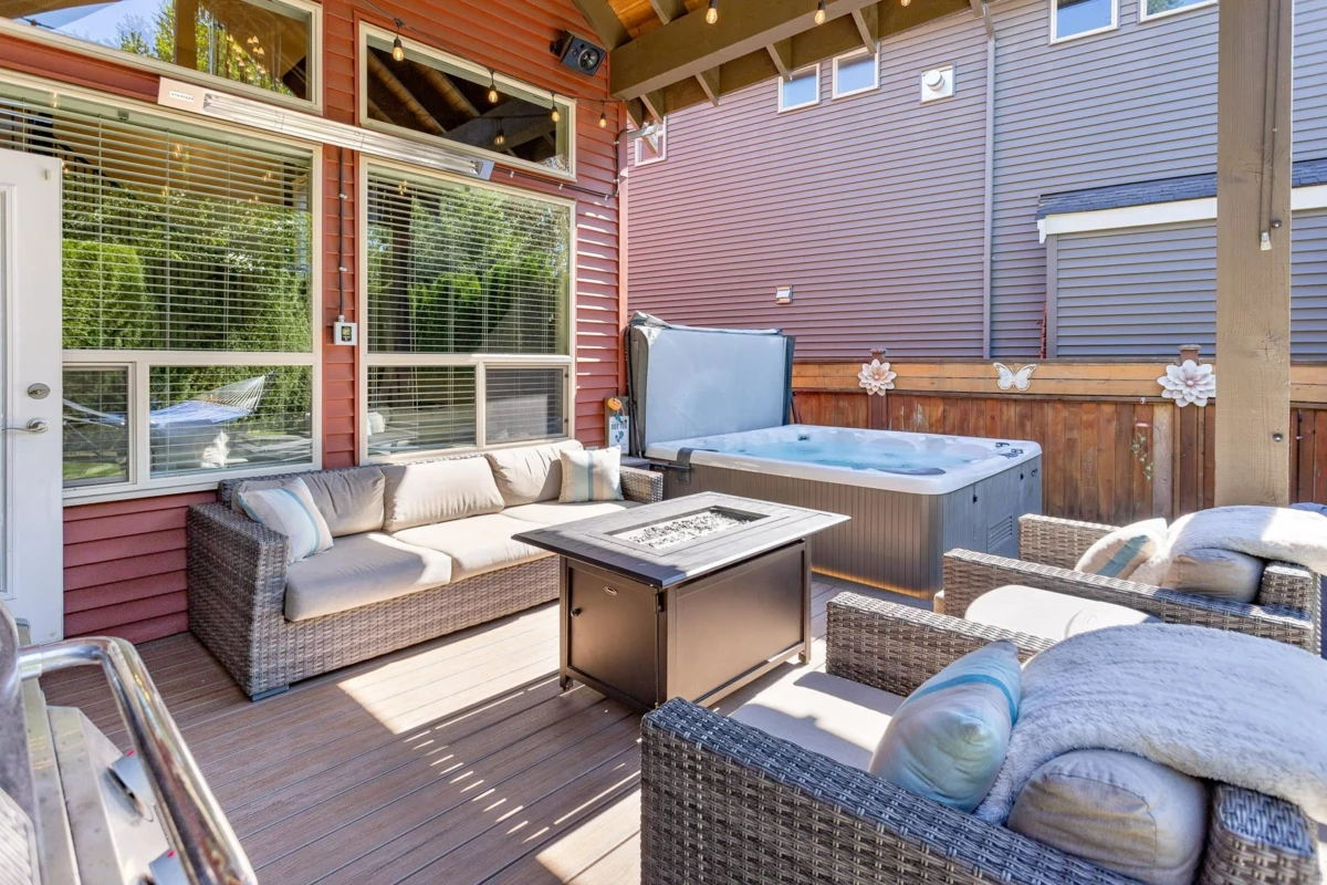 A stunning RAB home in Yorkson South. The great room offers a bright open space with oversized windows and double-height ceilings, a gourmet kitchen, granite counters and rich dark cabinetry. Dining area includes a built-in buffet/wine bar. Wired for surround sound and incl A/C for your comfort. Upstairs are four large bedrooms with a spa-inspired ensuite and walk-in closet. Downstairs has a rec room, exercise area, and an additional unfinished 500 sq ft for a potential mtg helper. The lot is one of the biggest in the neighborhood, featuring a large patio patio with a vaulted roof, chandelier, a built-in heater for year-round use and stamped concrete . As well as hot tub and low-maintenance turf, 12’ privacy cedars w/ irrigation. Minutes from parks, schools, shopping and hwy access