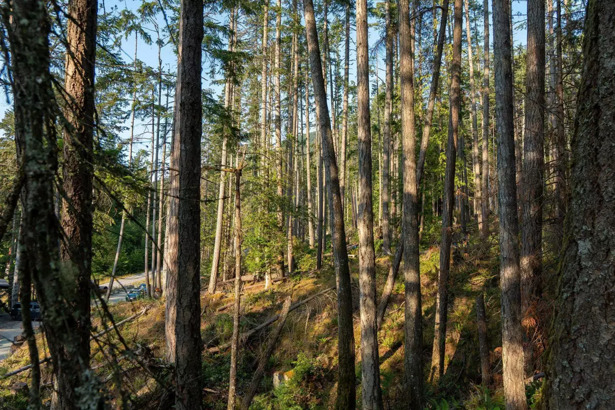 Arbutus Ridge is quickly becoming the place to be if you love contemporary architecture in a stunning setting of tall Douglas Firs & rocky outcrops. This 1.0 acre building lot is in its natural state which allows you to keep as many trees as you want for privacy, or thin them out to let in some more light – you choose. Currently, the property has beautiful filtered light all day long. Sunsets create vignettes that beg to be subjects of paintings. The terrain is gently sloping with a prominent rock bluff at the SE corner. A shared septic field is already installed on a nearby property with connection at the lot line. Walk to King Edward Bay Beach in about 10 minutes, where 2 private mooring buoys await (included). Forest bathe for hours with hiking with trails at your doorstep.