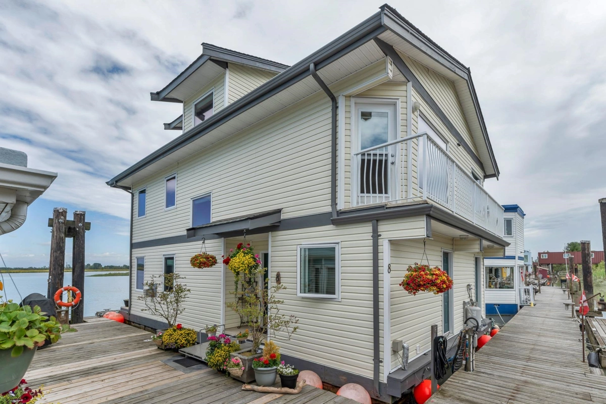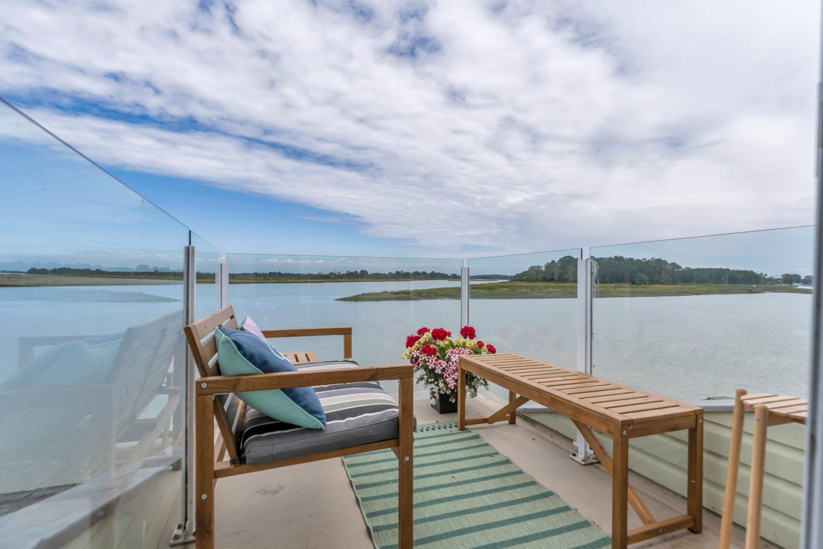 Live the dream in this 2000+sf floathome with breathtaking unobstructed views stretching from the Gulf Islands to the North Shore mountains...see the peaceful shimmering river in the morning and end the day with glorious sunsets all from the comfort of your home. Step into a rare blend of natural beauty and modern comfort. The open concept mn flr flows easily from kitchen to dining to living areas with walk-in pantry, powder rm and laundry. The 2nd flr full width primary suite has a window seat, custom closet and spa-like ensuite. The 2nd bdrm with ensuite and top flr retreat complete the home. Decorative bonus of $7,500 offered by sellers. Nature is at your doorstep with seals, eagles, swans and more. Paradise is not lost!