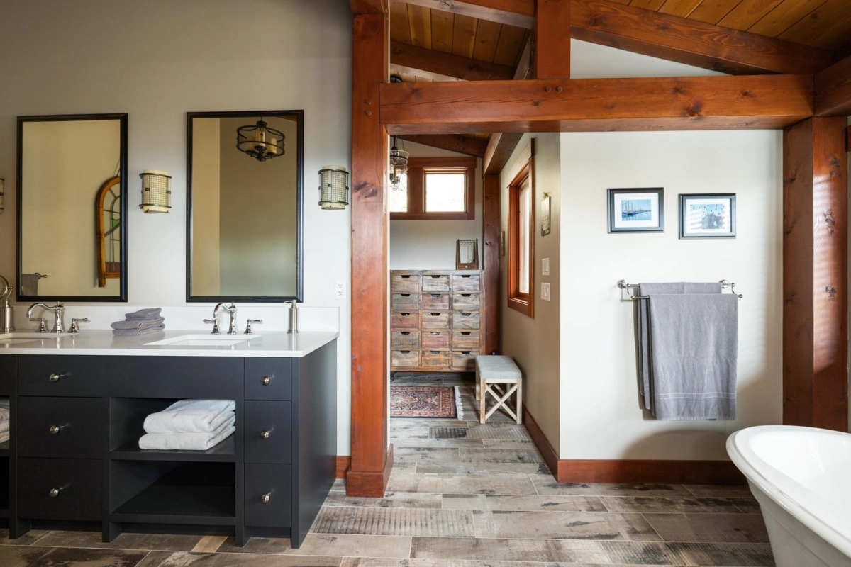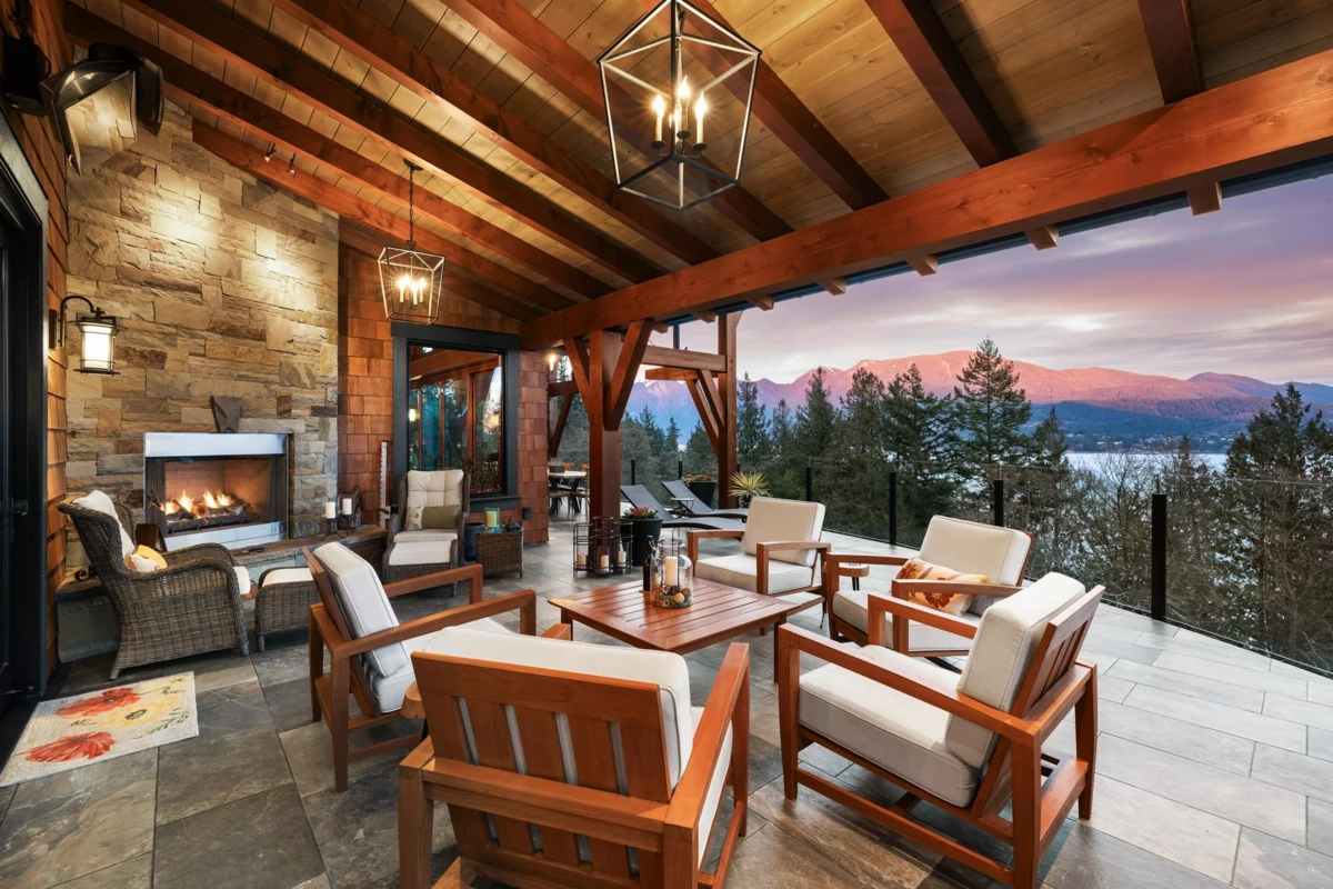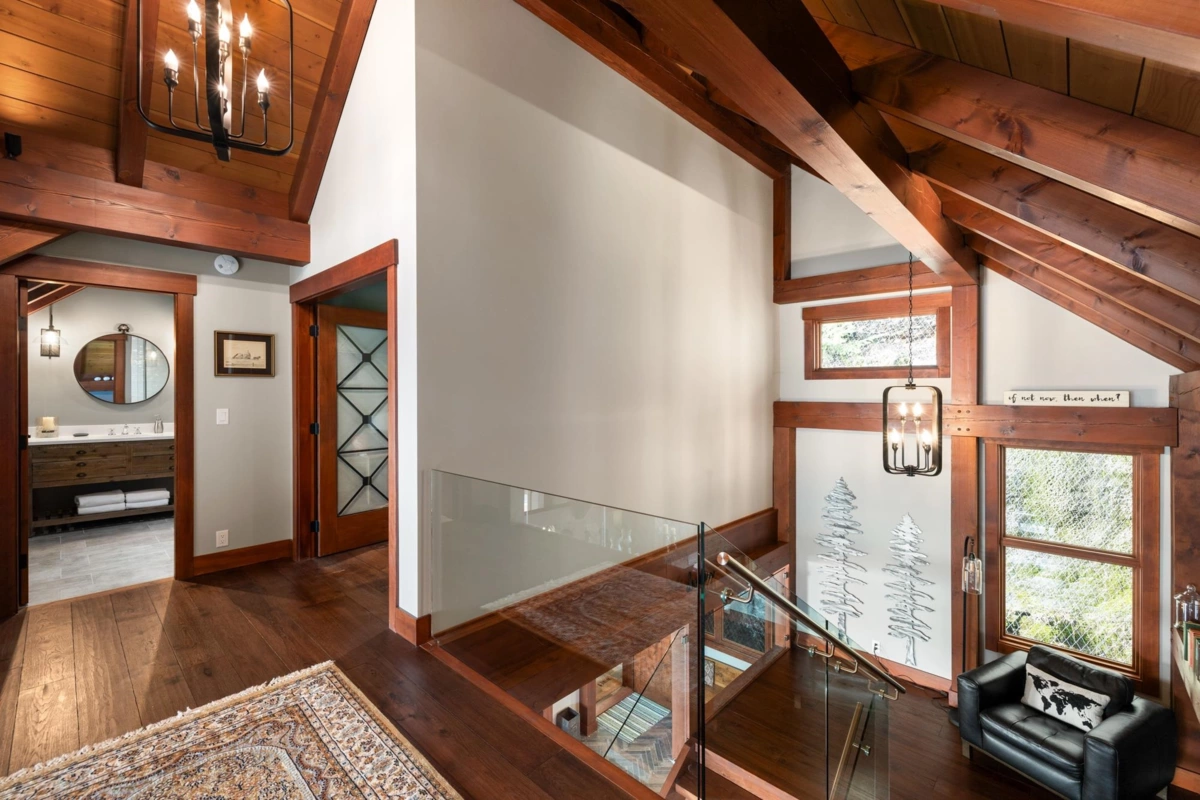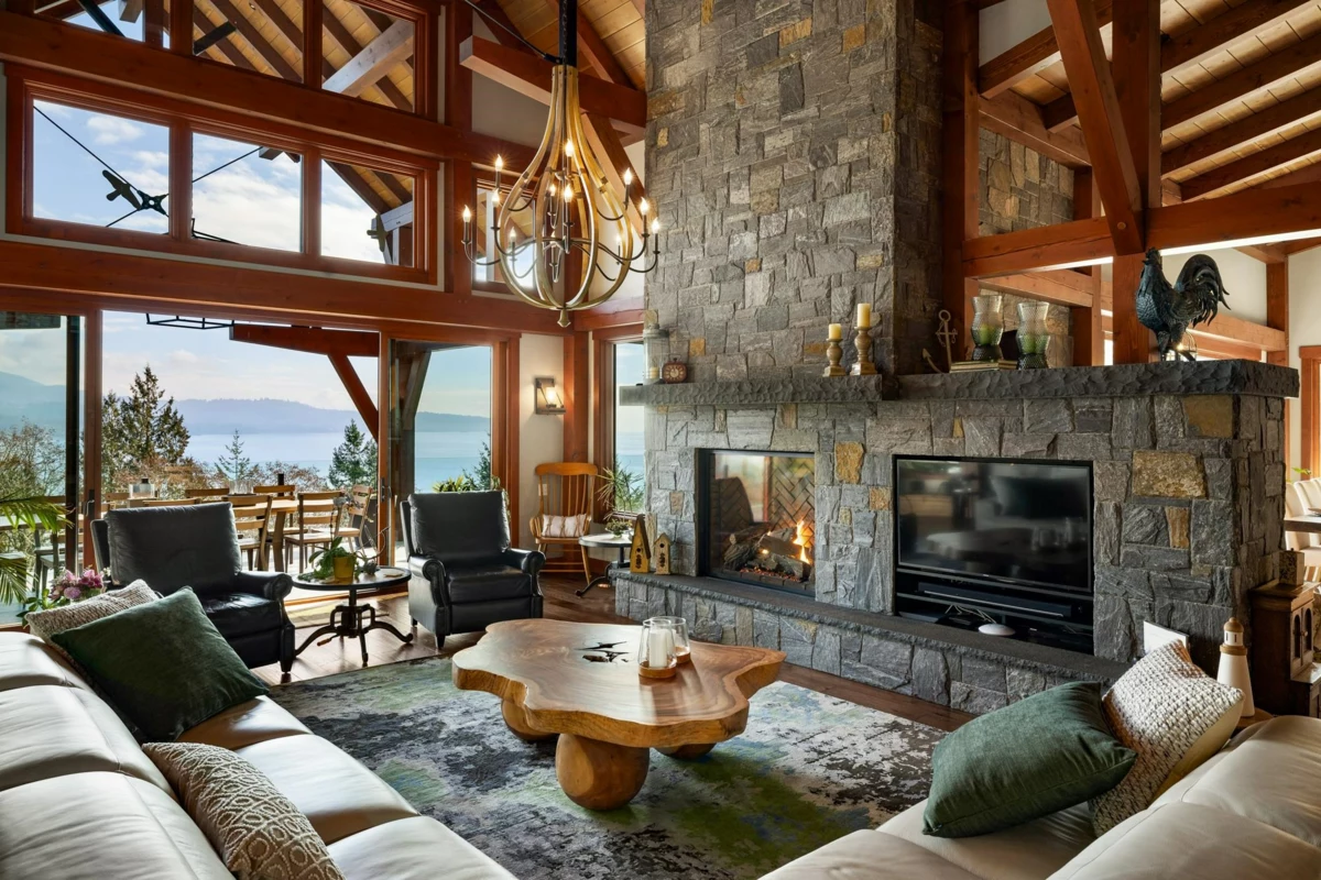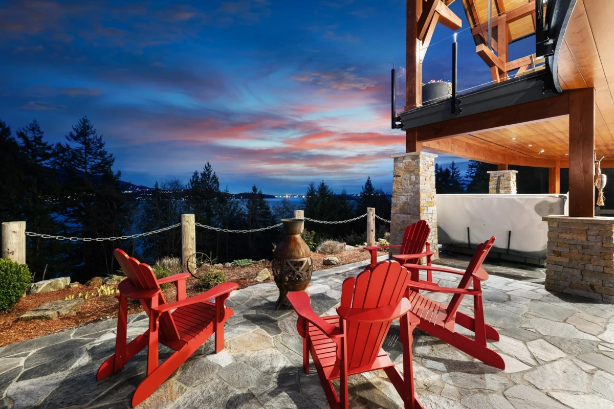 This stunning ocean view property featuring a masterpiece of engineering, custom built, Canadian Timberframe Ltd home is ready to welcome a new family. The expansive timber peaks & over 1100 sq.ft. covered entertainment deck sets it apart. The open plan main floor boasts timberframe ceilings soaring over 24'. Custom Loewen Douglas Fir interior/metal exterior windows & doors, engineered Hickory flooring & exclusive lighting compliment the space. Chefs will covet the gourmet kitchen with state of the art appliances & expansive Quartz countertops. Main level primary bedroom, ensuite & walk in closet showcase the cathedral timberframe ceilings. A special retreat w/floor to ceiling fireplaces & private decks overlooking ocean, mountain and coastal views. Vancouver within easy reach.