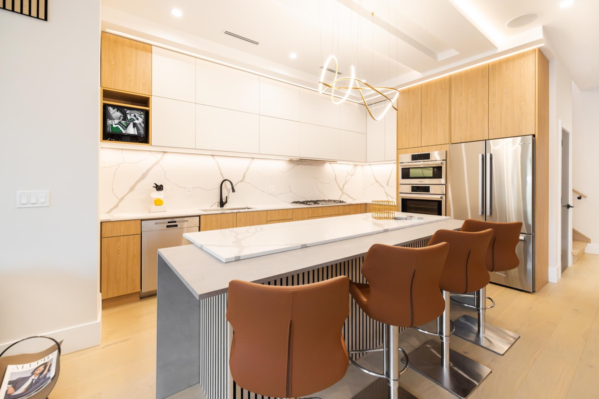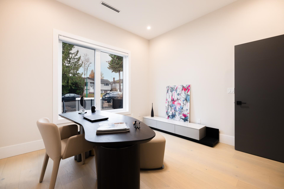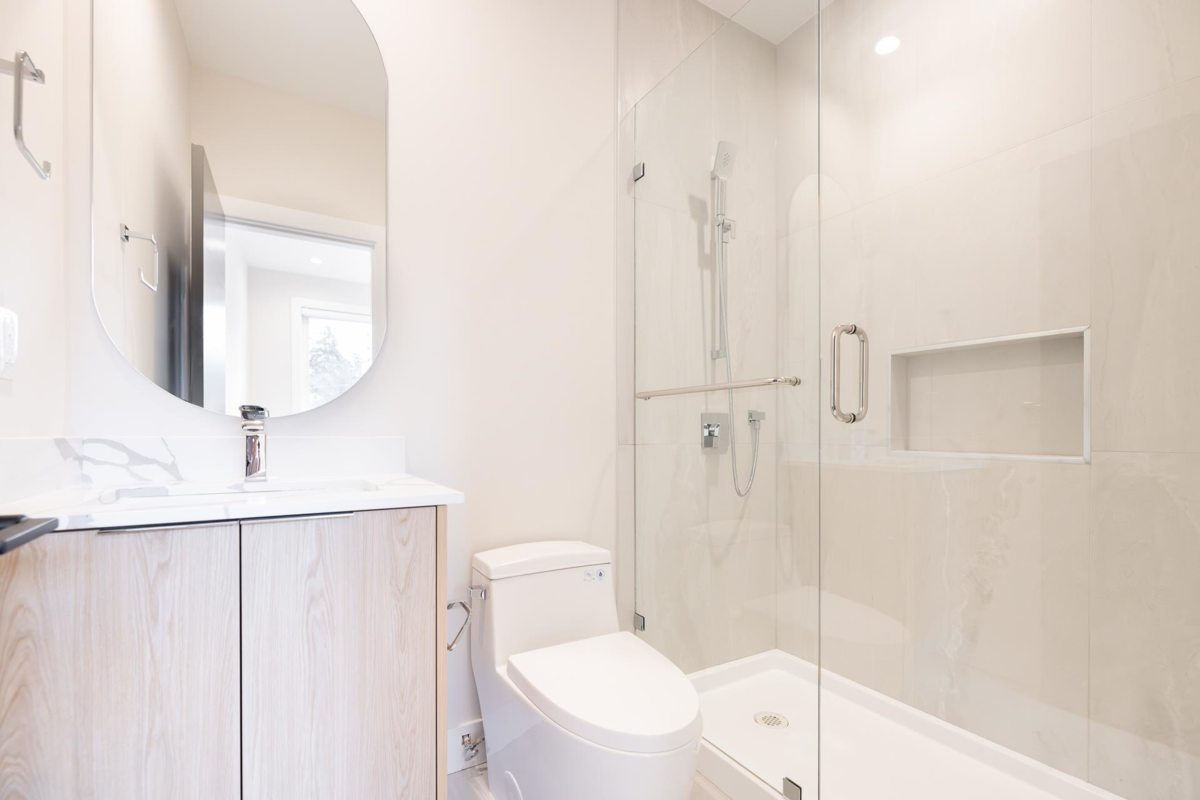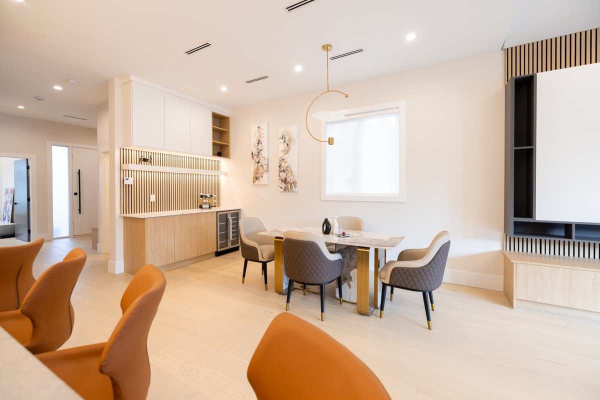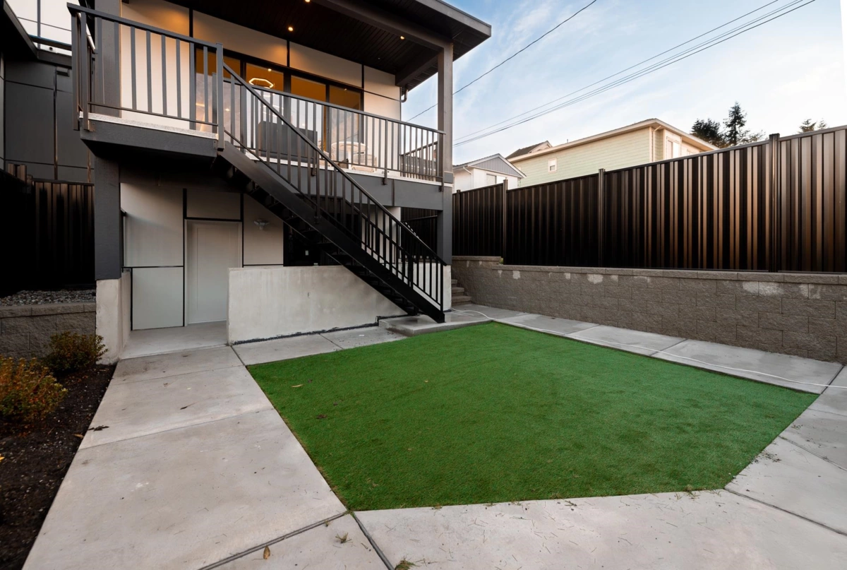 Welcome to this custom 3 level 1/2 duplex on a quiet street in East Burnaby! This 7 bedroom, 7 bathroom, 3102 sqft home is beautifully designed including a modern kitchen that offers gas cooking, and a large island perfect for entertaining. The open-concept dining and living areas are enhanced by large sliding glass doors leading to your covered deck. A flexible main floor bedroom/office with ensuite as well as a 2 pc powder room add convenience. Upstairs, you'll find 3 spacious bedroom each with it's own ensuite. STAIRS CONNECTING MAIN FLOOR AND BASEMENT, OPTION FOR 2 BEDROOM OR 3 BEDROOM suite as a MORTGAGE HELPER. High quality finishing throughout including european tiles, engineered hardwood, designer lighting and extensive wood work. OPEN HOUSE SUNDAY NOVEMBER 30th 2-4pm