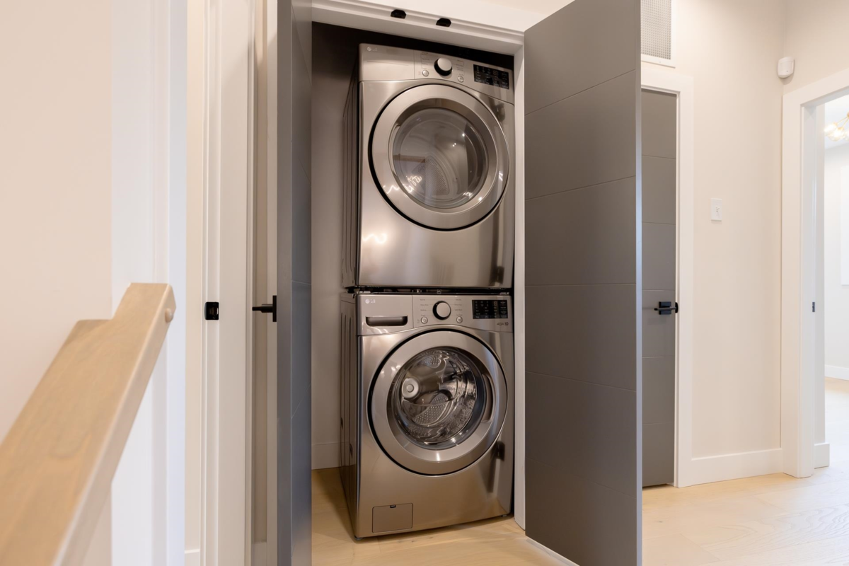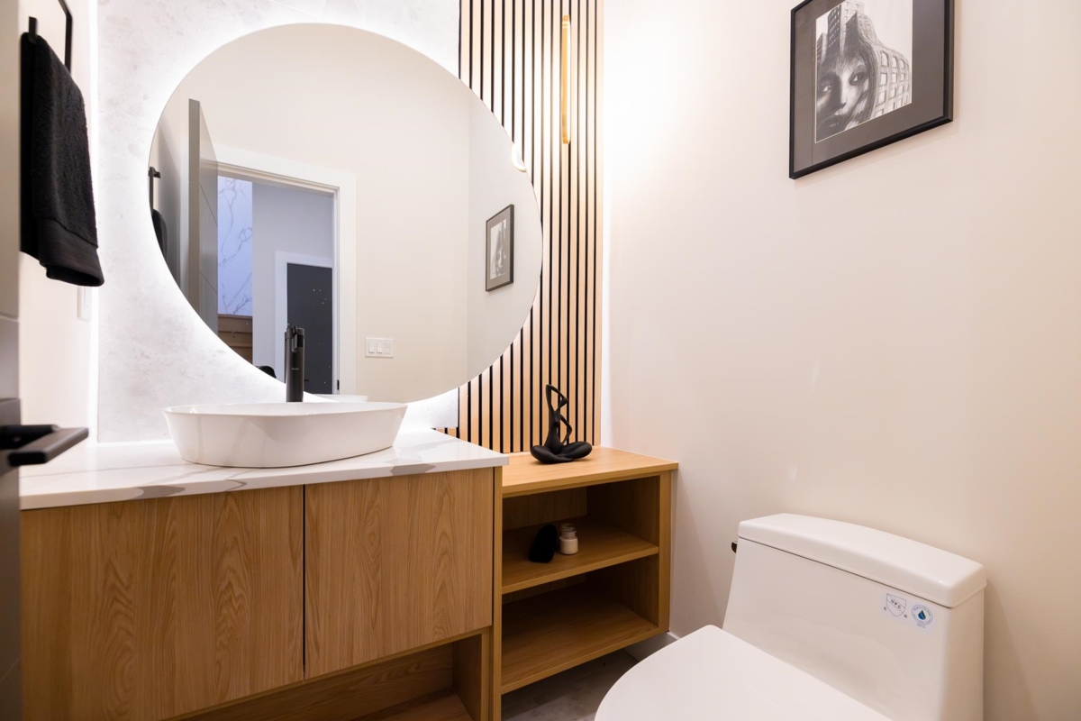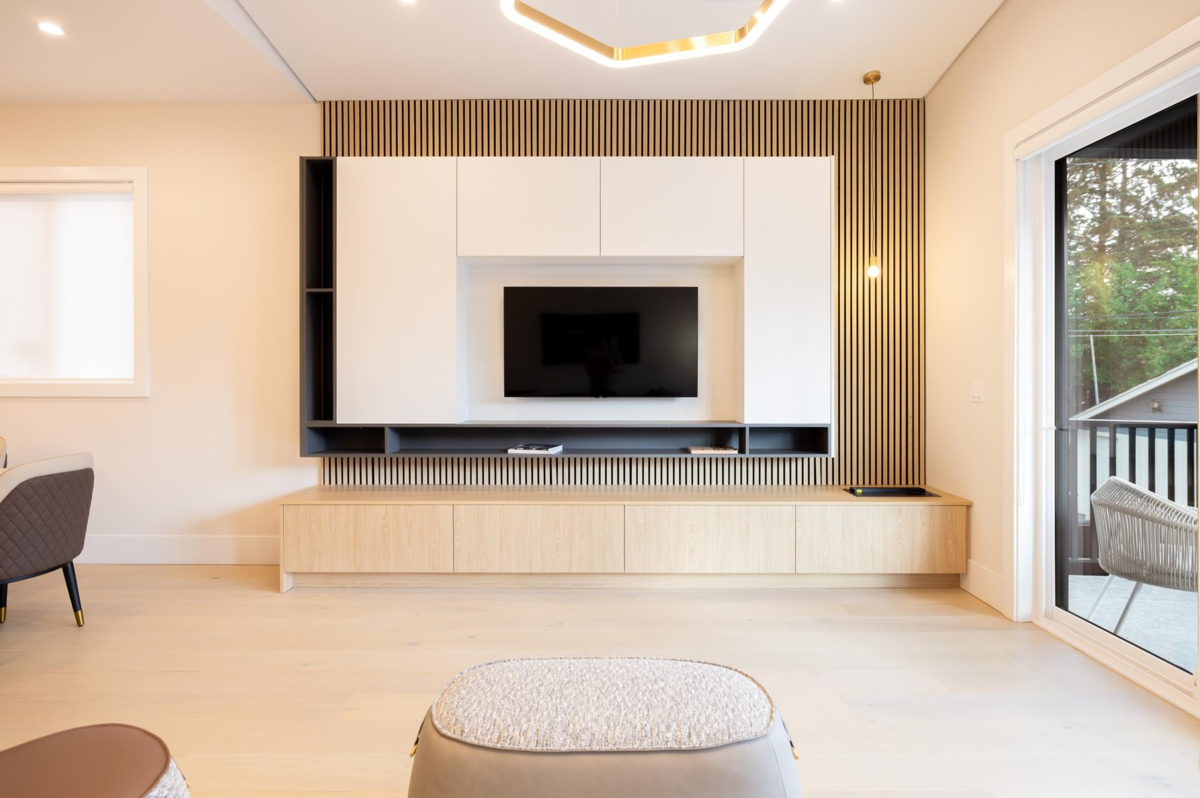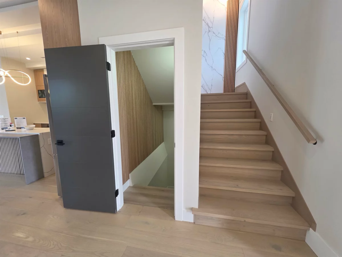 Welcome to this custom 3 level 1/2 duplex on a quiet street in East Burnaby! This 7 bedroom, 7 bathroom, 3102 sqft home is beautifully designed including a modern kitchen that offers gas cooking, and a large island perfect for entertaining. The open-concept dining and living areas are enhanced by large sliding glass doors leading to your covered deck. A flexible main floor bedroom/office with ensuite as well as a 2 pc powder room add convenience. Upstairs, you'll find 3 spacious bedroom each with it's own ensuite. STAIRS CONNECTING MAIN FLOOR AND BASEMENT, OPTION FOR 2 BEDROOM OR 3 BEDROOM suite as a MORTGAGE HELPER. High quality finishing throughout including european tiles, engineered hardwood, designer lighting and extensive wood work. OPEN HOUSE SUNDAY NOVEMBER 30th 2-4pm