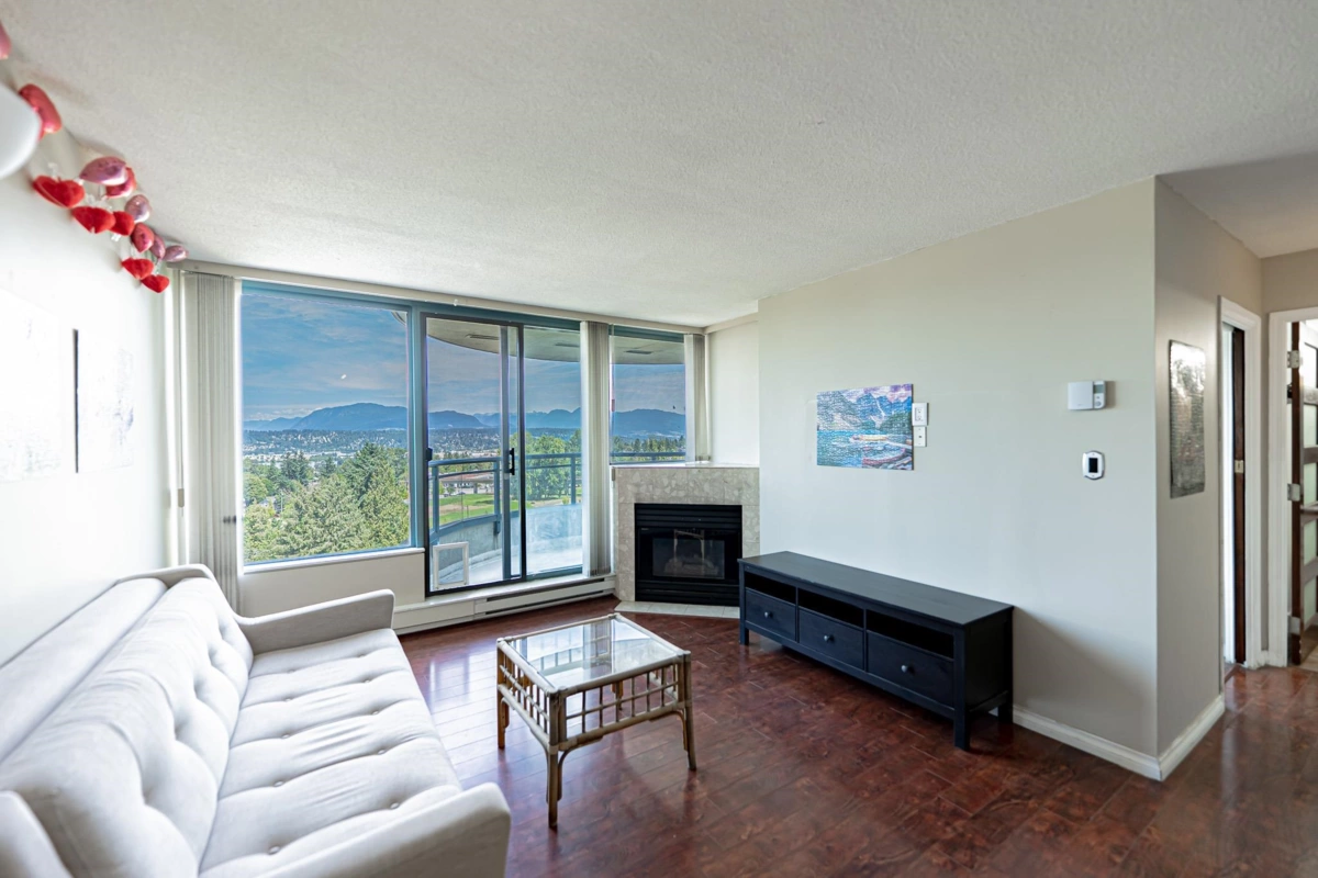 Welcome to this North facing 644 SQFT functional and spacious 1 bedroom condo with urban styling. Be fascinated with the panoramic unobstructed view of the North Shore Mountains and the Fraser River. Large circular balcony accessible from bedroom and from living room. This home boasts gleaming hardwood floors with upgraded s/s appliances, in-suite washer/dryer, cheater ensuite with contemporary fixtures. BONUS 2 designated underground parking & own storage locker. Beautiful secured building steps away from Gateway station in the Central City close to shopping, restaurants, library, recreation centre and the SFU Campus. Amenities include an outdoor pool and gym! Call for your private showing today!