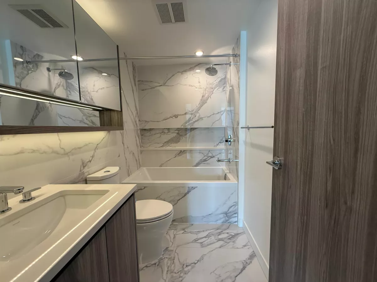 Experience Concord Living at Park George – Move-In Ready! Immerse yourself in luxury with this spacious and light-filled 2-bedroom, 2-bathroom home. Featuring a perfect blend of modern interior finishes, including quartz countertops, Bosch appliances, and side-by-side Blomberg washer & dryer, this home offers both style and functionality. Enjoy expansive, entertainment-sized balconies—perfect for hosting barbecues. Residents have access to first-class amenities such as an indoor pool, hot tub, sauna, and recreation room. This innovative, tech-forward building also includes EV parking, a smart thermostat, and NFC-enabled common area access. Ideally located within walking distance of King George SkyTrain Station.