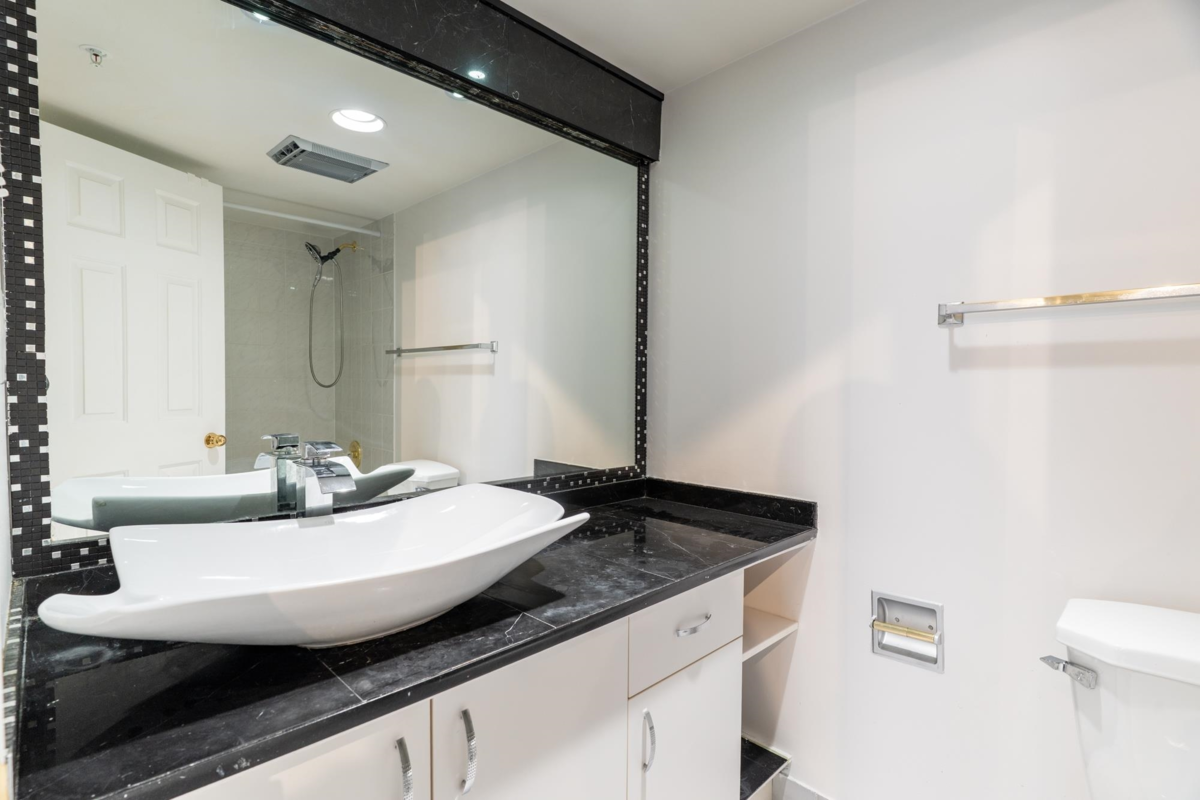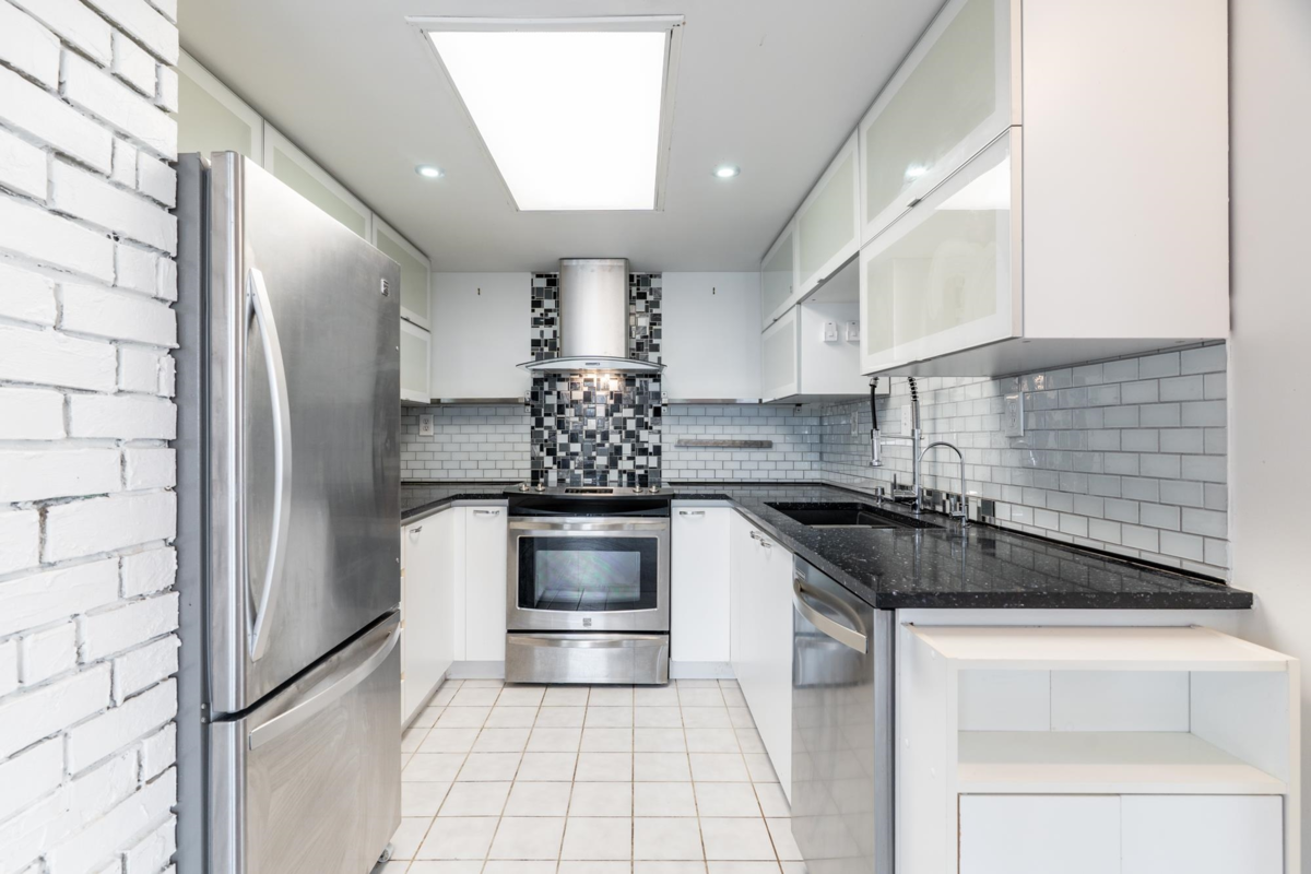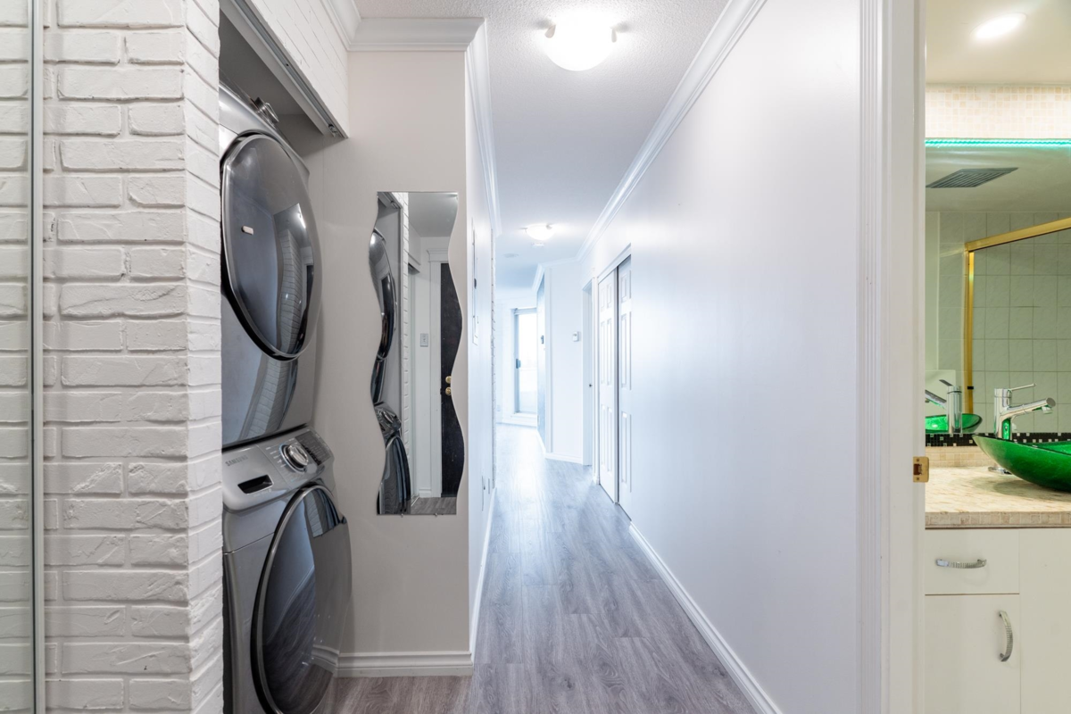 Bright and spacious 1-bedroom plus den condo featuring an updated kitchen, stylish vinyl plank flooring, and two beautifully renovated bathrooms. Enjoy soaring windows that fill the space with natural light and offer spectacular southern views. This complex offers exceptional amenities, including indoor and outdoor pools, tennis courts, a sauna, hot tub, and two fitness centres. Conveniently located within walking distance to Guildford Mall, transit, and with easy freeway access — the perfect blend of comfort and convenience!