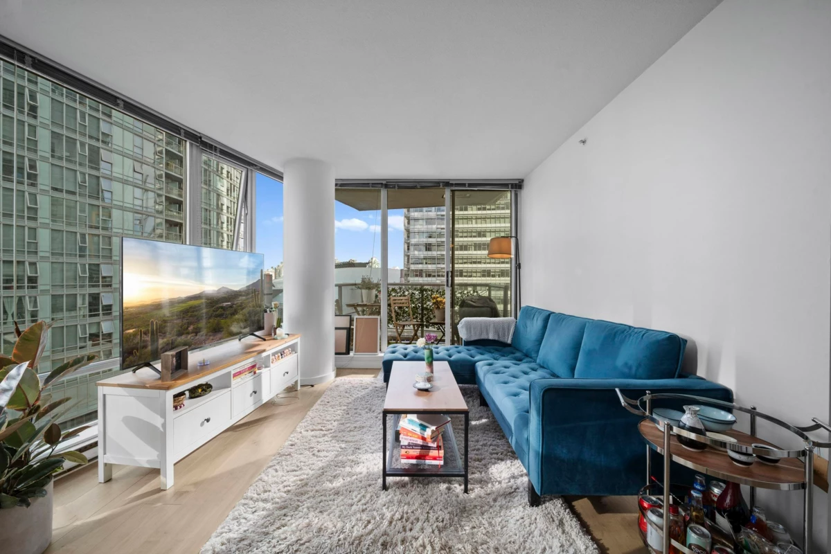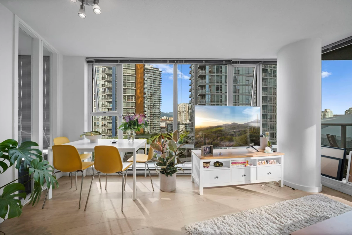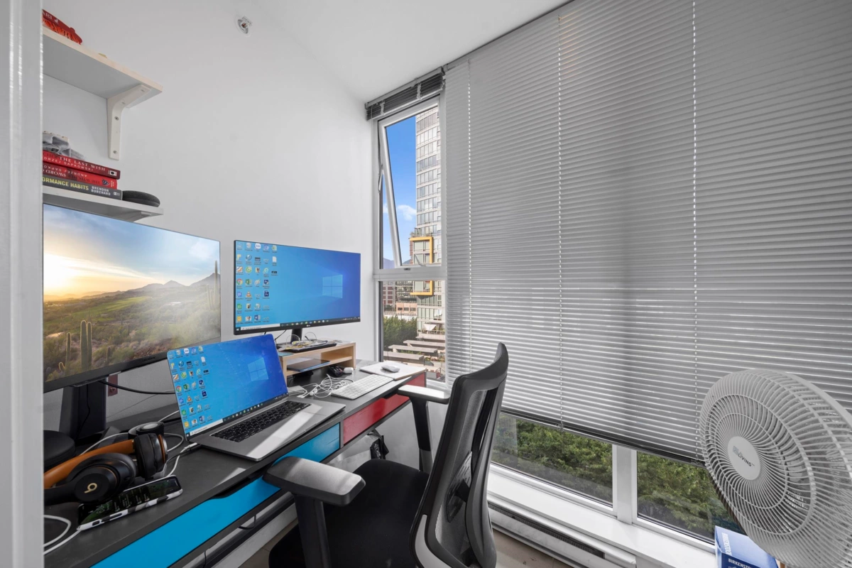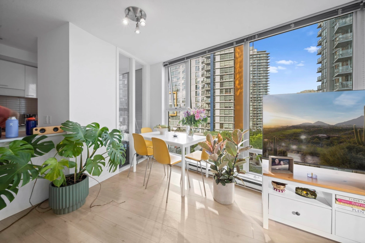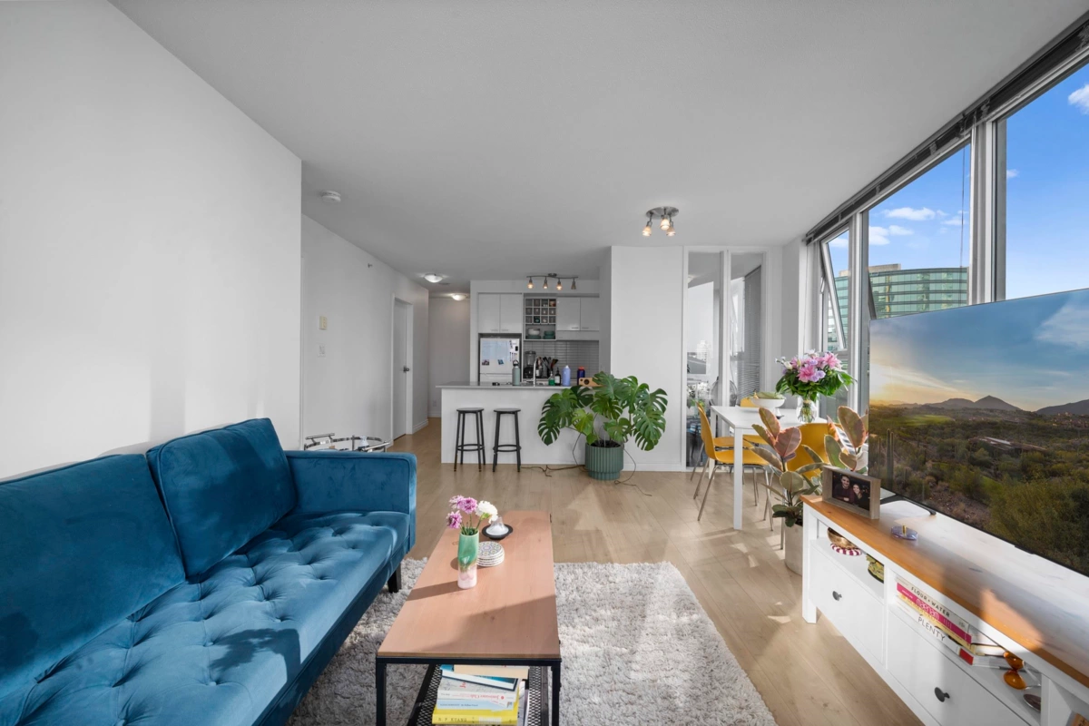 Bright 2 Bed + 2 Bath + Den corner unit at Spectrum 2 by Concord Pacific! This well-designed home features floor-to-ceiling windows with sweeping city + views, 810 sq. ft. of open living space, bedrooms on opposite sides, a versatile den/home office, and bonus in-suite storage. Enjoy in-suite laundry, 1 secure parking stall, and access to top-tier amenities: 24-hr concierge, indoor pool, hot tub, sauna, and gym. Steps to SkyTrain, Costco, Rogers Arena, BC Place, seawall, shops & dining. Pet-friendly. Don’t miss this!