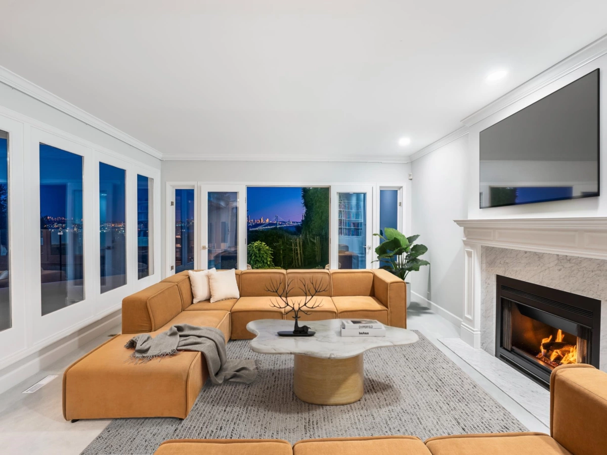 Gorgeous residence in prestigious Sentinel Hill. This spacious 5,000+ sf home sits just mins from downtown in one of West Vancouver’s most desirable neighbourhoods. Enjoy spectacular close-in panoramic city and mountain views from nearly every room. Features 5 beds (4 up), 6 baths, large entertaining areas, office, 4 gas F/Ps & a vaulted grand entrance foyer. The 12,750 sf level, private lot impresses w/ a long gated driveway, massive auto court, manicured gardens, patios & decks, and an oversized 2-car garage. Walk to Park Royal & Ambleside Beach. Views, location, privacy & lifestyle—all in one