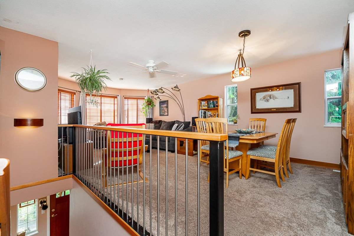 Awesome home on a treed private corner yard. Main floor has lots of modern updates (see PDS), has living room with bay window, dining room, open kitchen with stainless steel appliances, eating area with bay window, family room with newer install gas fireplace and refreshing green paint, door off family room leads you onto a huge 2 level covered deck overlooking a private treed and fenced rear yard, 3 bedrooms, 2 baths. Downstairs off foyer is an office/5th bedroom?, huge rec room, 4th bedroom, den, laundry and separate entry to rear yard. Lots of updating also done here. Double garage. Car/RV canopy on side yard. Storage shed. Attached 12x11 workshop. Great location, 5 minutes walk to Cherry Hill Elementary School. Great family home.