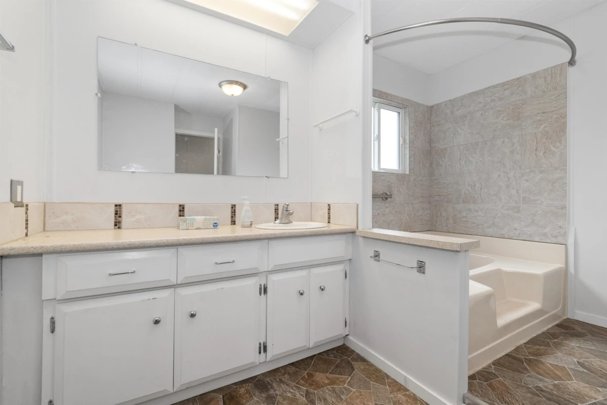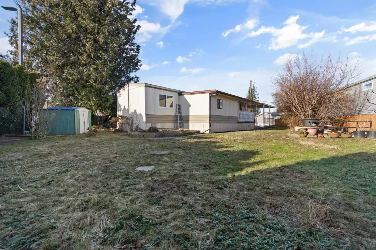 Welcome to one of the largest private yards in Maple Meadows! This 2-Bedroom manufactured home located in the heart of a well-maintained park in Sardis, boasts a prime corner lot location with a spacious backyard. You're sure to enjoy this peaceful community in your 2 bed home with 1 bathroom with oversized, easy-access tub. Easy care laminate flooring, updated windows, and fresh white kitchen cabinetry add a modern touch to the home. Plus you’re located just a quick walk away from local shopping centers, parks, and coffee shops. Enjoy your days soaking in sunlight in your private backyard that is perfect for gardening. Small dogs allowed, no cats. Come take a look today!