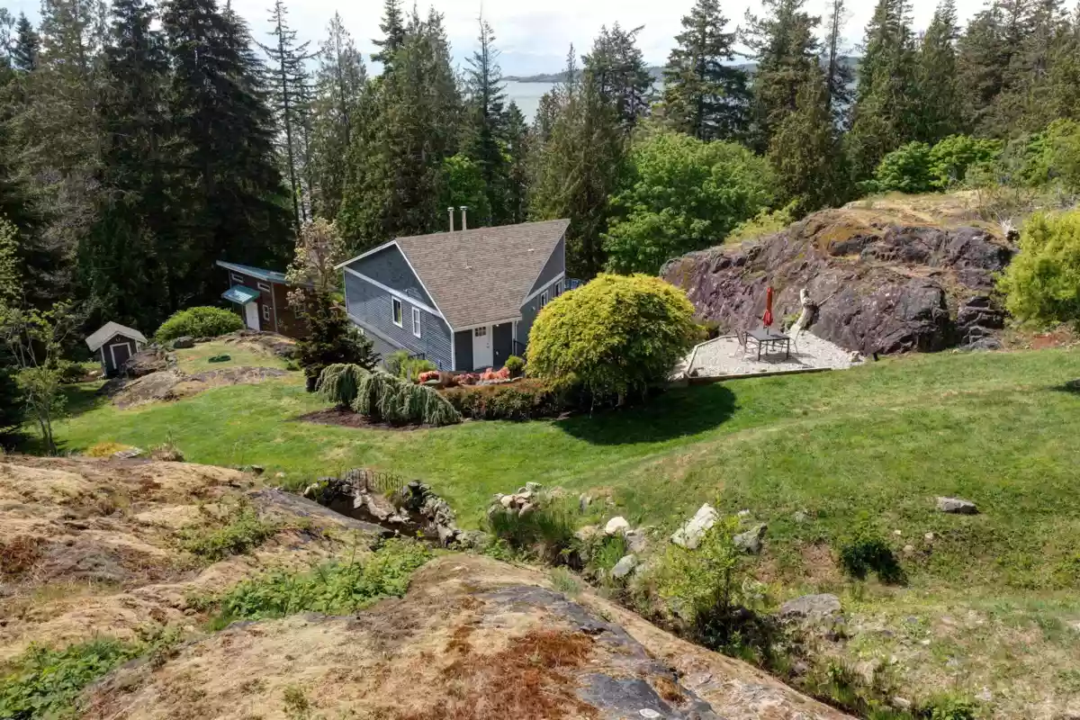Private 1.53-Acre Oasis Near Welcome Beach. This 2,160 sq ft south-facing home offers ultimate privacy, tasteful updates, and nature-filled surroundings. Freshly painted w/ new flooring, remodeled kitchen, updated appliances and bathrooms. Main level features a spacious guest suite w/ kitchen, bedroom, and office/den. Generous natural light, serene views, energy-efficient heat pump, and a refreshing ocean breeze-this home blends comfort and beauty in every season. Stunning landscaping, natural rock outcroppings, tranquil ponds, and serene sitting areas. A mature forest with your own private trail, that backs onto the Welcome Woods trail system. Bonus features: powered workshop/bunkie, RV/boat parking, and zoning for a second dwelling. A rare offering in a peaceful coastal setting!