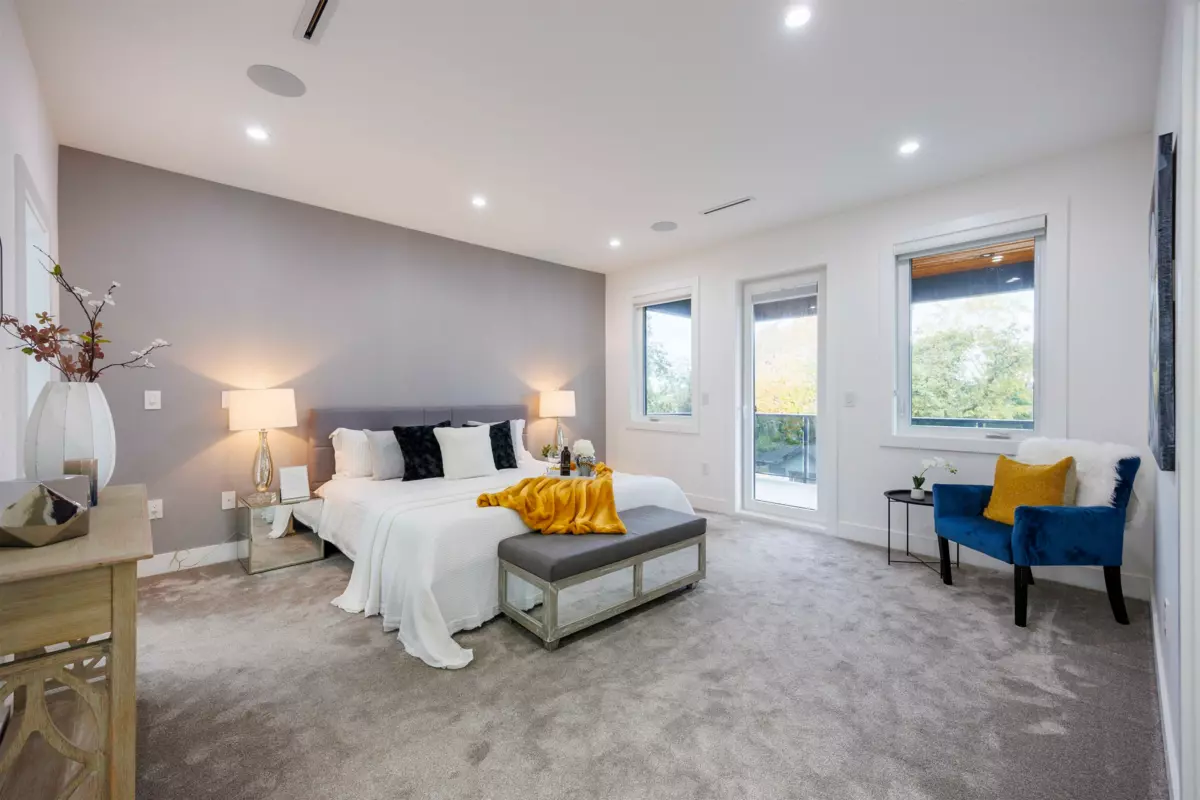 This meticulously designed & custom built 4 years old mansion sits on the huge 8300sqf level lot in the desired quiet street in Burnaby East. The luxury & bright home features 8 spacious bedrooms(6 ensuites) and 10 baths w/great layout & open concept,10' high ceiling on main, stunning gourmet Chef's Kitchen with massive island & fine cabinetry, spacious Wok kitchen, spa-like primary bathroom, state-of-the-art theatre, engineering HW flooring, central AC, HRV and radiant heating, 2 bdms legal suite w/laundry, video security, central vacuum, fenced huge level yard, and 3 cars heated garage with bath & 50A EV included. RV capable parking spaces from lane. Steps to top-rated Cariboo Secondary, Armstrong Elementary & Choices Market. Still under 2-5-10 new home warranty. OH: Nov 30, Sun., 2-4pm.