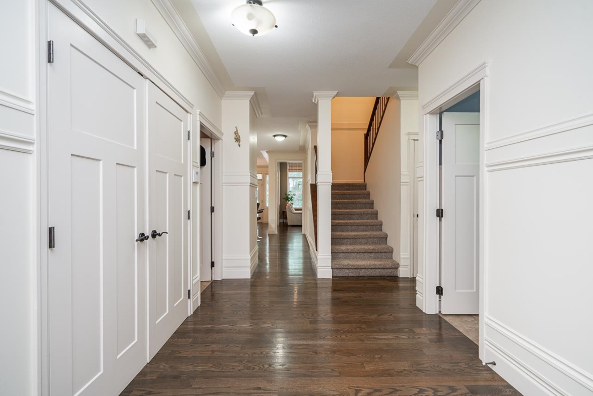 Spacious 3 Bed, 3 Bath Home with Loft, Basement & Private Backyard! Enjoy comfortable main level living with a versatile loft & basement. The bright kitchen features custom cabinetry, backsplash, hardwood flooring, & a garburator, plus detailed molding & wall paneling. The semi formal dining area opens to a great room with a coffered ceiling & gas fireplace. Upstairs, the loft includes an electric fireplace, perfect for work or relaxation. Step outside to a private fenced backyard with stamped concrete, a shed, & a park like setting ideal for outdoor living & soaking in the hot tub. The main floor primary suite offers a sitting area & double sink ensuite. The basement provides finished living space plus an unfinished area for customization. Extras include RV parking. Call today to view!