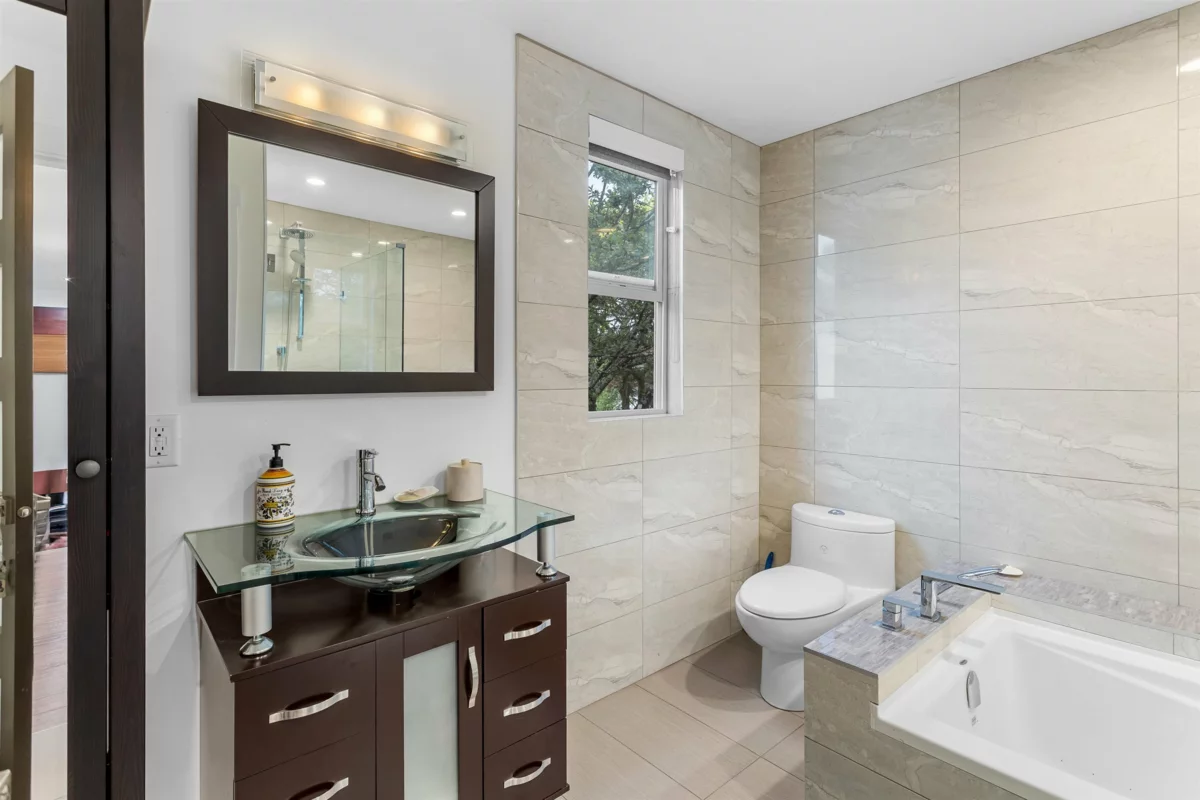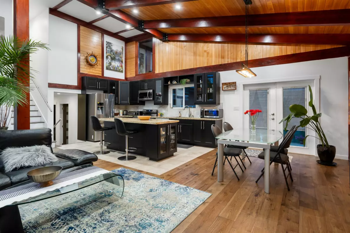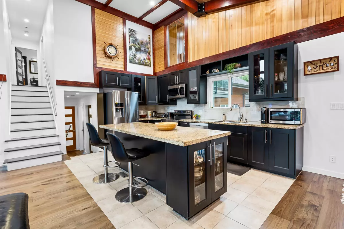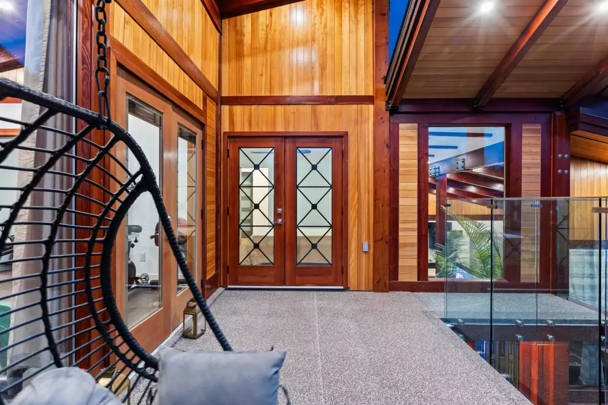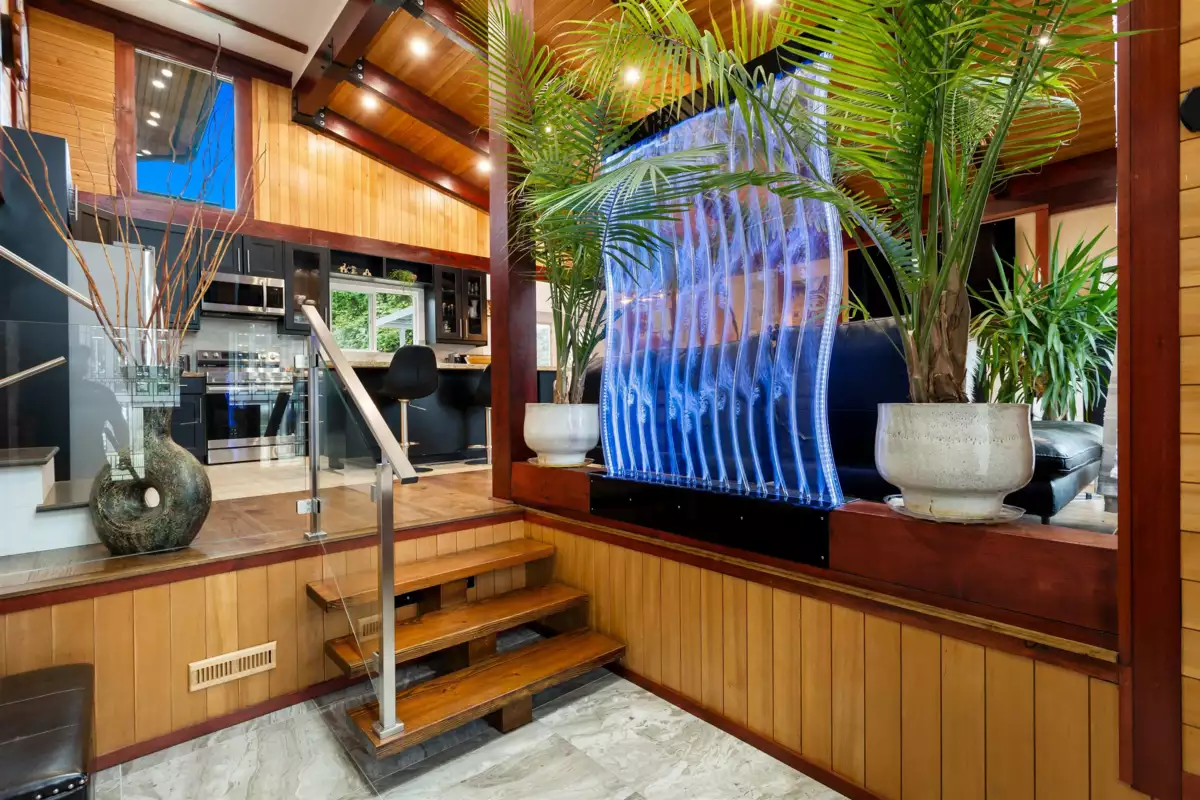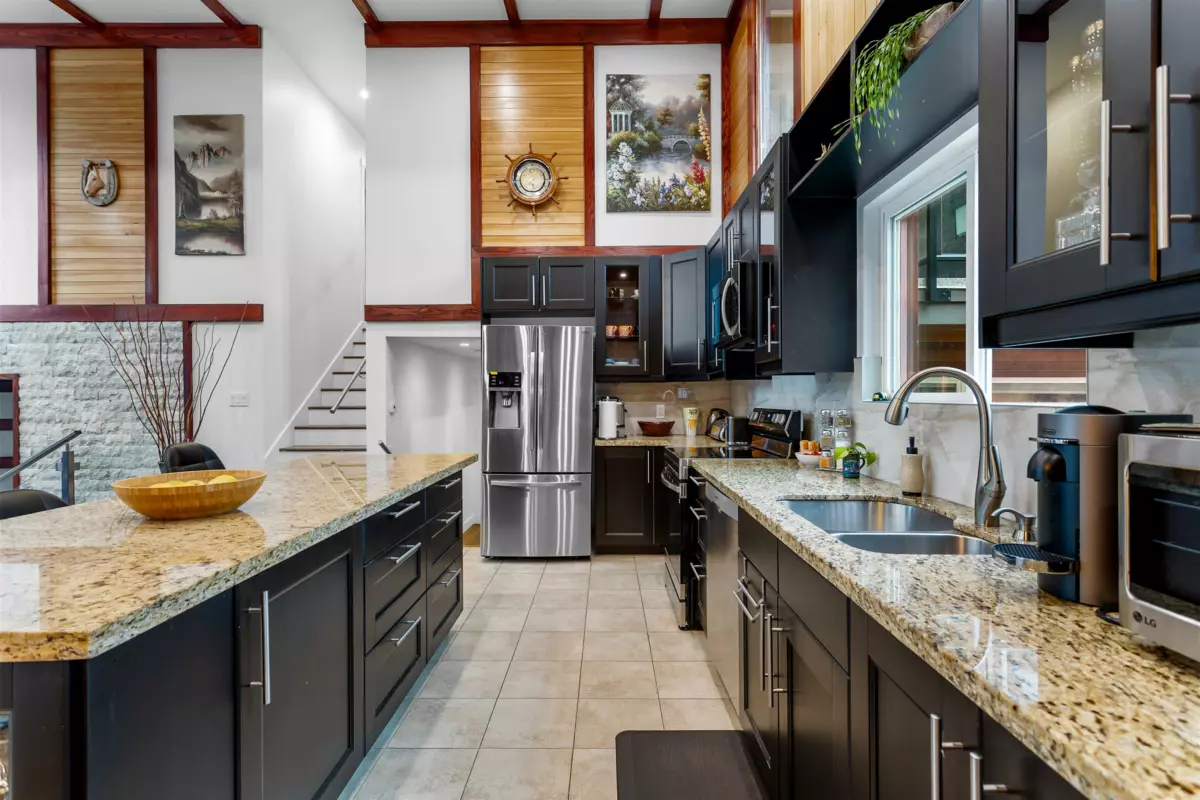 This 4-bedroom, 3-bath Slovakian-inspired Whistler post-and-beam masterpiece combines timeless craftsmanship with modern functionality. From its gated entrance, stamped concrete and brick driveway, and custom travertine exterior to its low-maintenance artificial turf and frameless glass railings, every detail exudes quality. Inside, soaring 16-ft ceilings, grade #1 hemlock finishes, custom cabinetry, granite surfaces, and Samsung/Bosch appliances create a warm yet refined atmosphere. The primary suite offers dual walk-in closets, a skylit Romeo & Juliet balcony, and a marble-encased fireplace. Additional features include a sunlit solarium, multiple French doors to cedar decks, a fully equipped workshop-style garage, and a self-contained one-bedroom suite with luxury finishes.