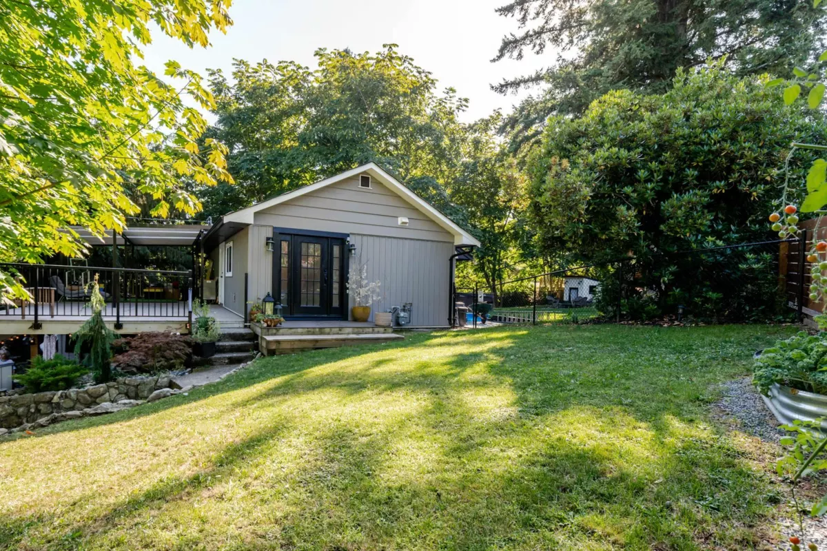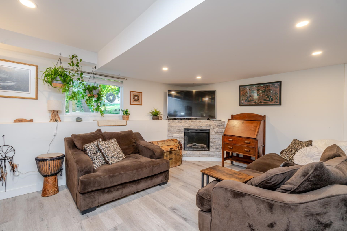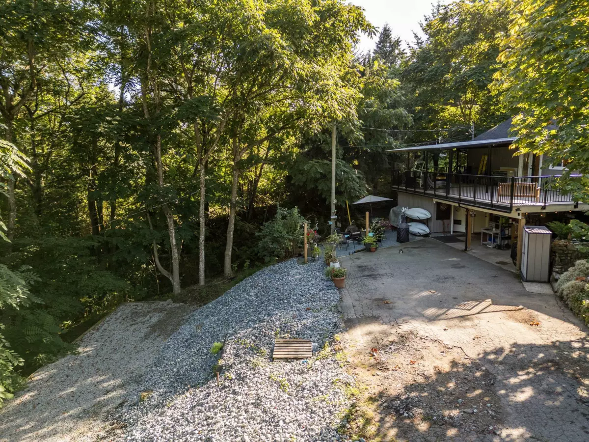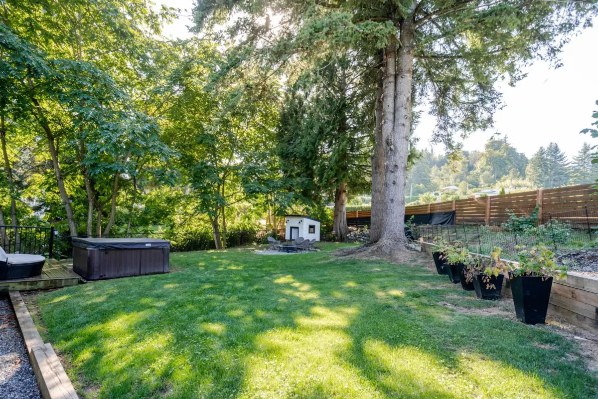 Nestled on 1.64 acres of lush greenery, this beautifully renovated country home offers serenity just 10 minutes from city amenities. Inside, the home features stunning upgrades: a stylish kitchen with white quartz countertops, subway tile backsplash, solid wood cabinets with black hardware, and stainless steel appliances. Bathrooms showcase trendy blue vanities, adding a rustic charm. Enjoy effortless indoor/outdoor living with a massive 40-ft covered deck—perfect for BBQs, family gatherings, or simply soaking in the tranquil scenery. Extensive landscaping enhances the natural setting, creating a true retreat. The property also includes a spacious, fully separate 2-bedroom suite, ideal as a mortgage helper or guest accommodation. This home is a rare blend of privacy, style, and convenience