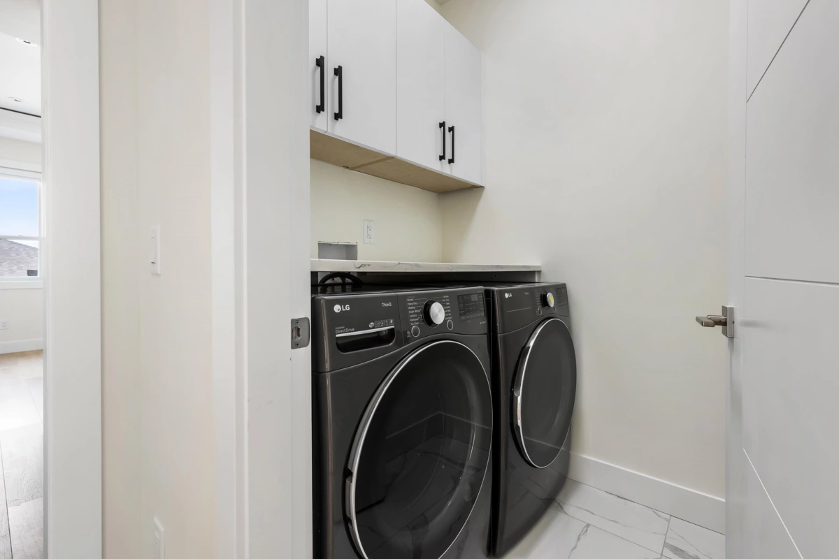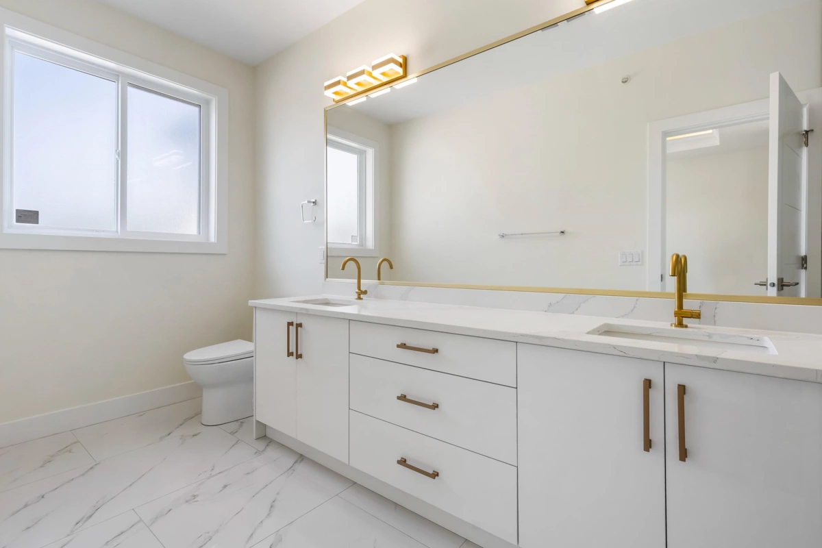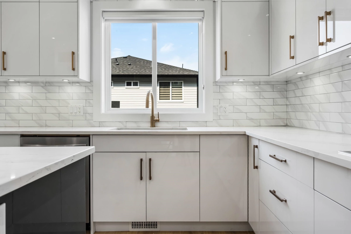 BRAND NEW 2 storey home w/bsmt offering 2,700+ sq.ft of LUXURIOUS living! Step into the SPACIOUS foyer w/feature wall & inviting warmth. The OPEN CONCEPT main floor boasts a bright living room w/black marble f/p, built-in shelving & large windows for ABUNDANT natural light! Stunning kitchen w/stylish backsplash, chic lighting, island w/gold accents, spice kitchen & covered patio, making this IDEAL for entertaining! Upstairs features a MASSIVE primary suite w/trayed LED ceiling, PRIVATE balcony, large W.I.C. w/custom shelving & spa-like ensuite w/dual sinks, walk-in glass shower & elegant gold finishes - plus 2 more bedrooms up! BONUS: Flex room & 2 pc bath downstairs w/under stairs storage & a 2-bed bsmt suite w/sep. entry AND laundry! Not to mention, a large fenced backyard w/turf - FAB!