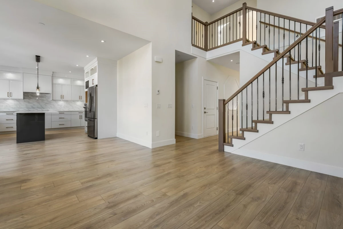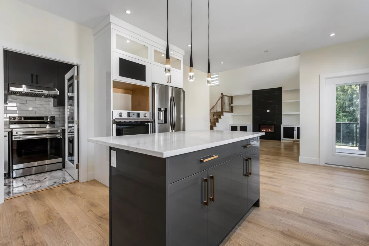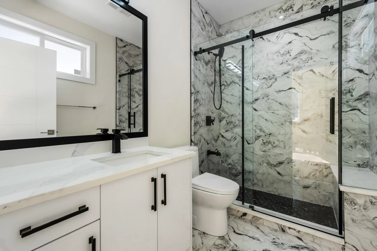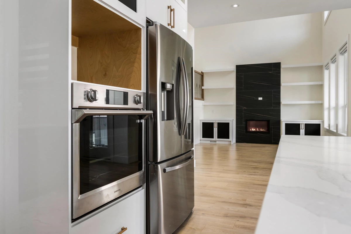 BRAND NEW 2 storey home w/bsmt offering 2,700+ sq.ft of LUXURIOUS living! Step into the SPACIOUS foyer w/feature wall & inviting warmth. The OPEN CONCEPT main floor boasts a bright living room w/black marble f/p, built-in shelving & large windows for ABUNDANT natural light! Stunning kitchen w/stylish backsplash, chic lighting, island w/gold accents, spice kitchen & covered patio, making this IDEAL for entertaining! Upstairs features a MASSIVE primary suite w/trayed LED ceiling, PRIVATE balcony, large W.I.C. w/custom shelving & spa-like ensuite w/dual sinks, walk-in glass shower & elegant gold finishes - plus 2 more bedrooms up! BONUS: Flex room & 2 pc bath downstairs w/under stairs storage & a 2-bed bsmt suite w/sep. entry AND laundry! Not to mention, a large fenced backyard w/turf - FAB!