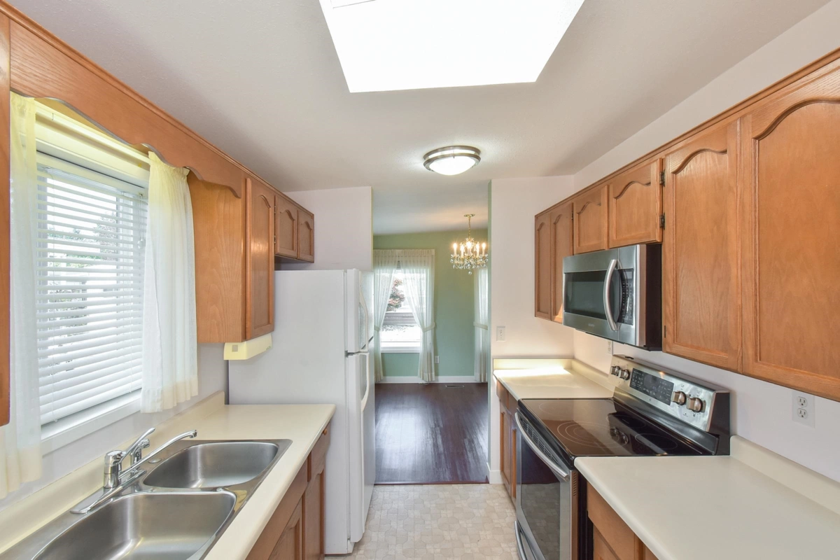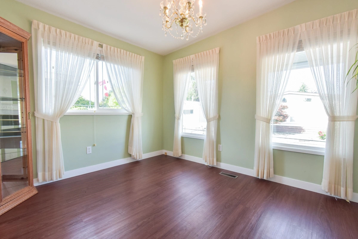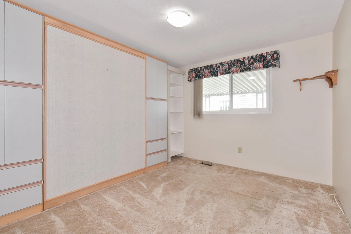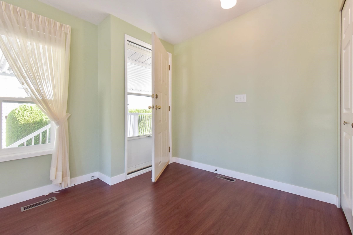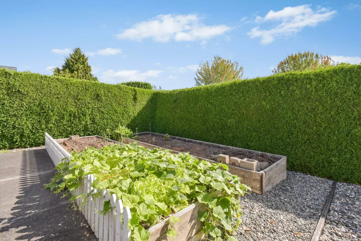 Desirable Sunnyside Estates! Bright, immaculate, move-in ready 2-bed, 2-bath manufactured home on a 4,068 sq ft owned lot with low strata fees. Features covered deck, large concrete patio, private yard with mature cedar hedge, and vegetable garden. Inside: newer vinyl windows, luxury vinyl flooring, spacious laundry room with deep freeze, window blinds, Murphy bed in guest room, and gas fireplace. Updates include: Brand new roof 2025, newer furnace & hot water tank. Perimeter skirting is fully insulated and dry for storage and energy efficiency. Pride of ownership shines! Workshop, pet-friendly, no age restrictions. Central to shopping, transit & more.