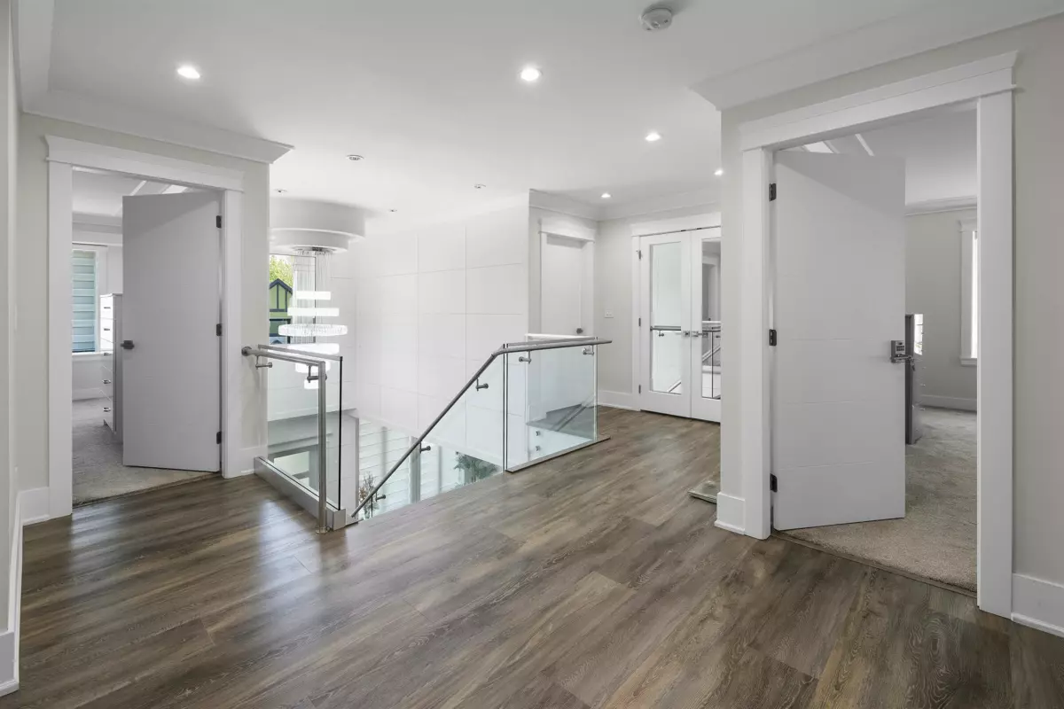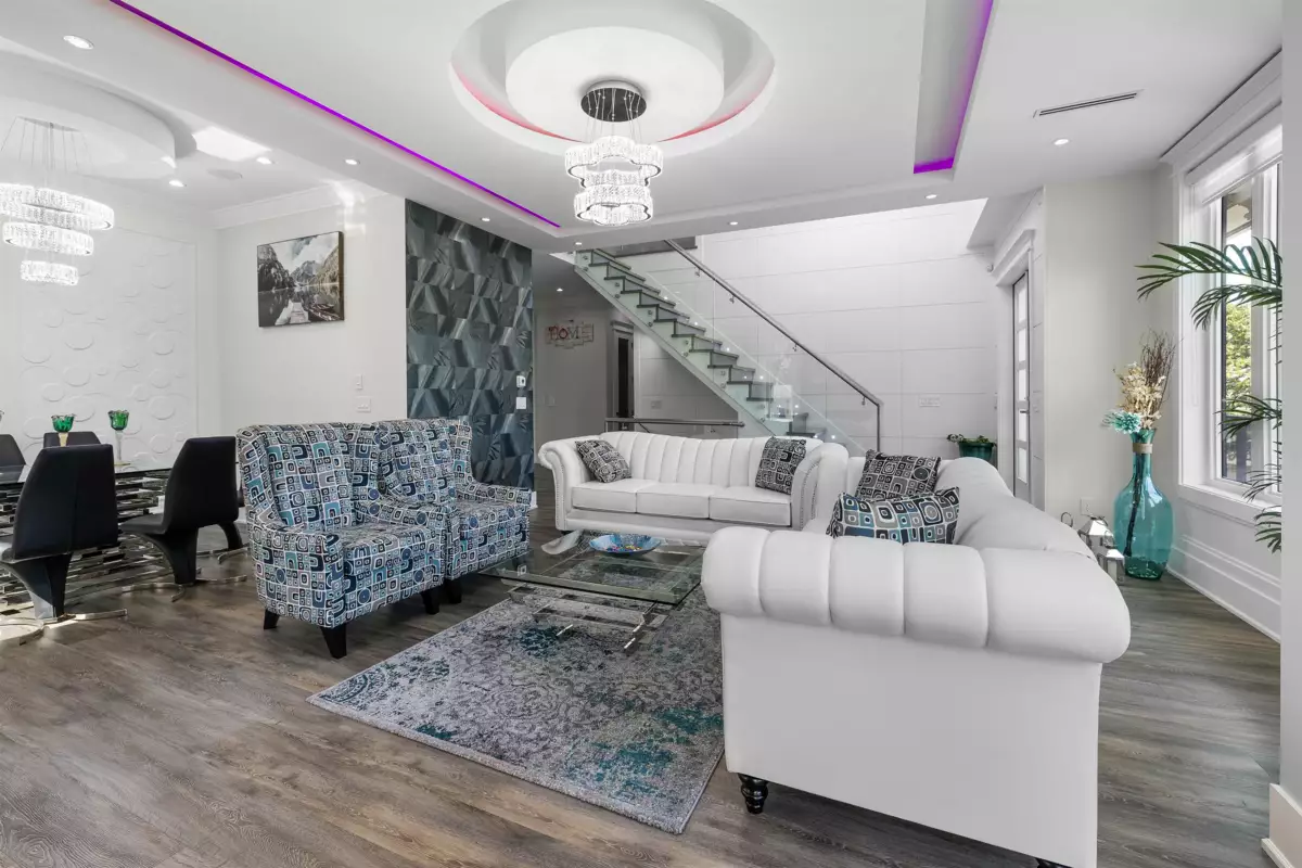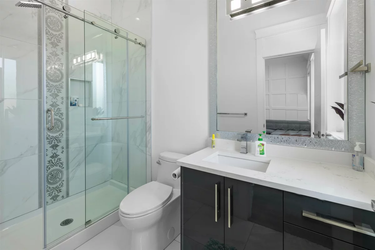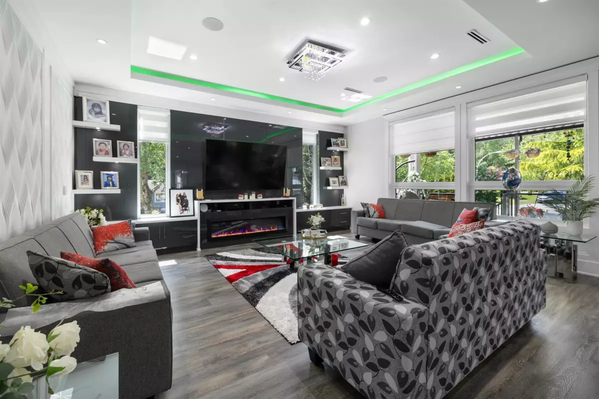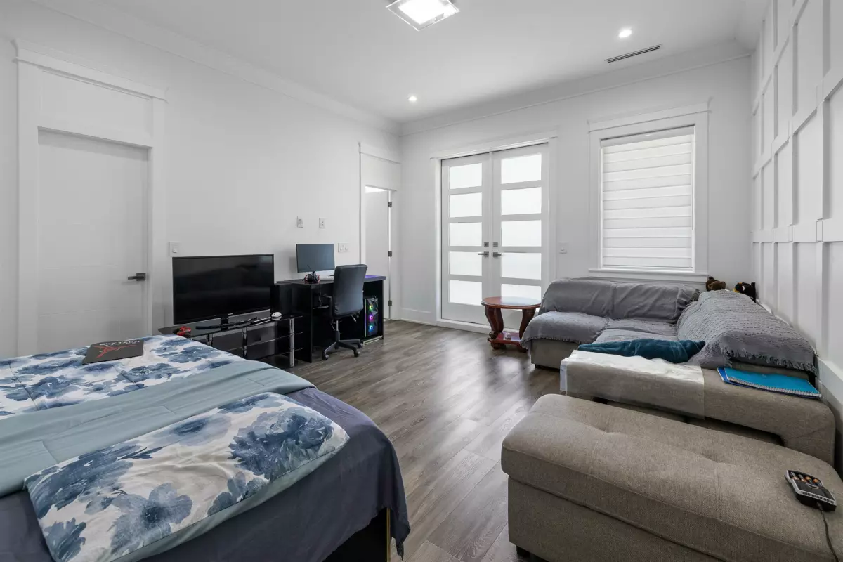 Beautifully crafted custom home offering over 6,200 sqft of living space on a large corner lot in a central, desirable area. This 9 bed, 10 bath home features a main-floor primary bedroom, spacious family room with high ceilings and large windows, and a modern kitchen with spice kitchen. The basement includes a theatre room, steam room, and two mortgage helpers 2+1, perfect for large or extended families.