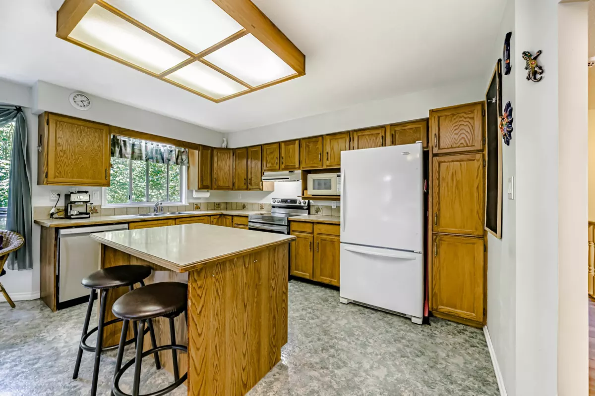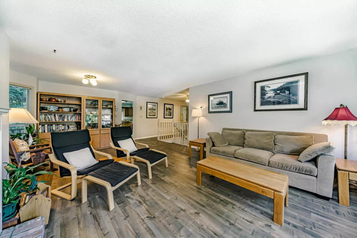 ORIGINAL OWNERS. Nice Big House! It's 1416 sq ft on the main floor, (3 bedroom 2 bathroom up) Living room and FAMILY ROOM ON THE MAIN. ( showing as eating area on floorplan ) Extra wide hallways. WELL MAINTAINED home with new boiler for heat system and ON DEMAND HOT WATER. Newer STAINLESS STEEL appliances and newer flooring mostly throughout the main floor and new flooring in the basement. Oversized primary bedroom plus a walk in closet. Super private, cool and huge SHADY DECK off the family room. BACKING ONTO GREENBELT, (Price Creek Park), for COMPLETE PRIVACY and with a 35 x 17 concrete pad. Perfect for a gazebo, cabana or a hot tub set-up. SEPARATE ENTRY to basement. Excellent potential for an INLAW SUITE. 1 or 2 bedroom, depending on configuration.