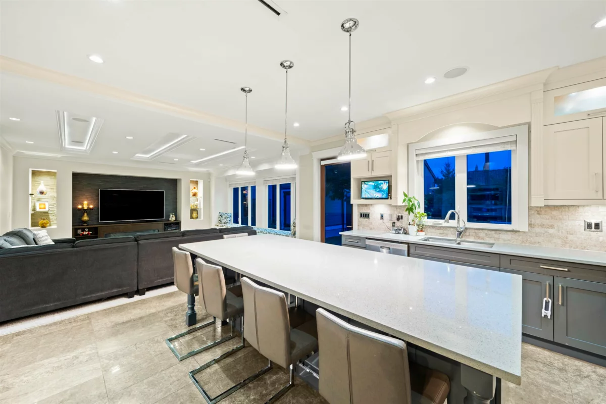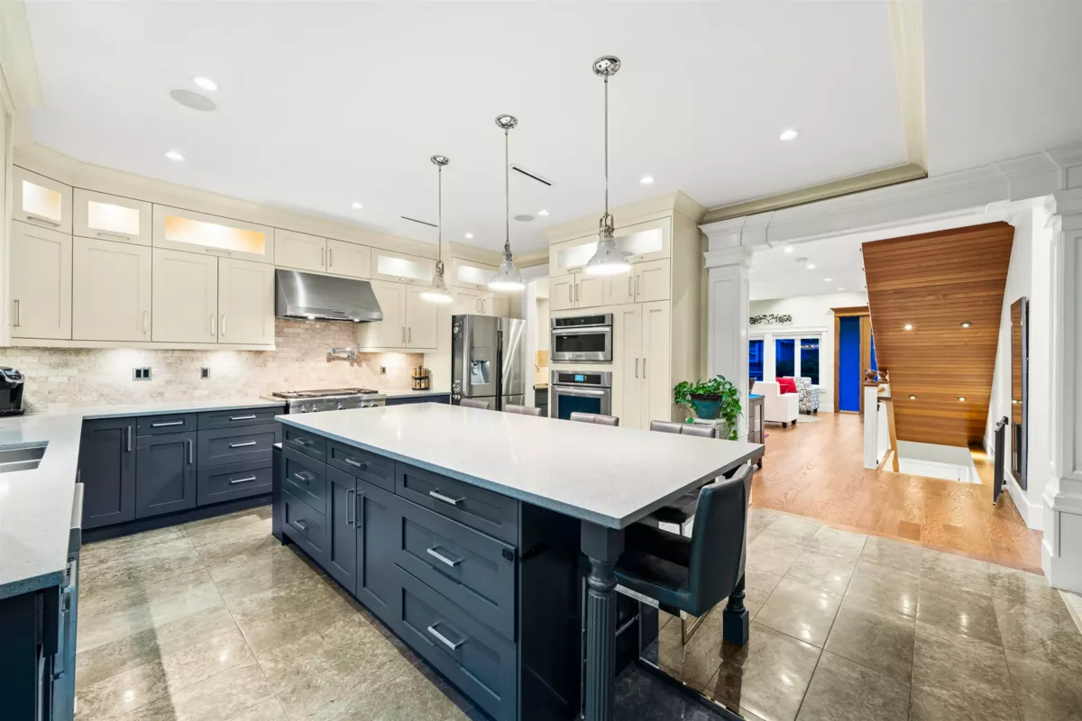 Discover timeless luxury in this bespoke, custom residence situated in a premier cul-de-sac. The exquisite design & quality construction create an extraordinary residence that meets the needs of today’s dynamic family lifestyle. Finishes include engineered hardwood floors, quartz countertops, crown moulding, radiant heating, air con, & more. Experience a spacious main level with soaring ceilings & generous principal rooms that offer an exceptional indoor-outdoor experience, with a walk-out cedar terrace + breathtaking views of the river, mountains, & city! The home offers 5 bedrooms, chefs kitchen, prep kitchen, spa-like primary suite, theatre, recreation room, & wet bar - perfect for entertaining. BONUS: One bedroom legal suite.
