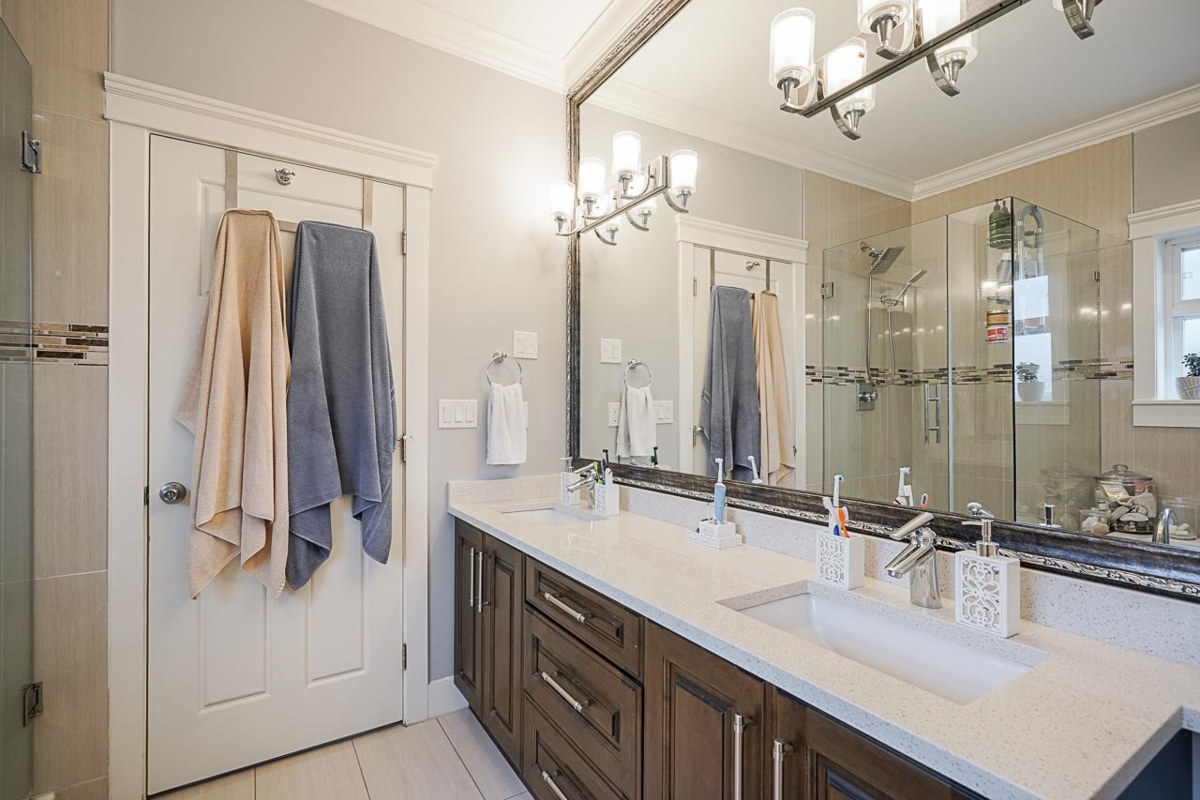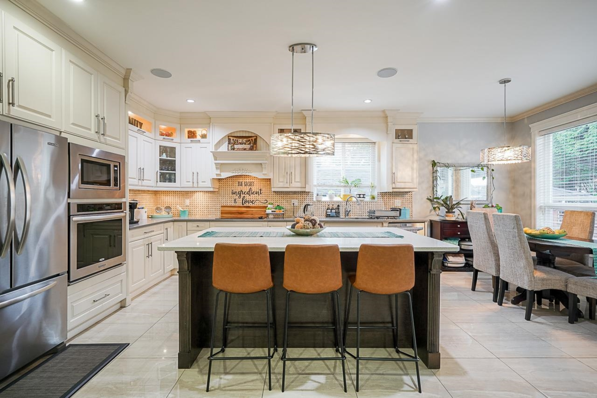 Welcome to this stunning, high-quality residence offering nearly 5,000 SF (including garage) of exceptional living space in a desirable area. This 8-bedroom, 7-bathroom home is designed with elegance, comfort, and functionality in mind. The top floor boasts two spacious primary suites plus two additional bedrooms with a main bath. On the main level, enjoy soaring ceilings in the formal living and dining areas, a chef-inspired kitchen with island, a separate spice kitchen, a bright family room with a built-in media wall and a main-floor bedroom with ensuite. The basement features a 2-bedroom legal suite, a guest bedroom, and a private theatre room—perfect for entertaining or extended family living. A rare opportunity to own a home in one of North Delta’s best areas!