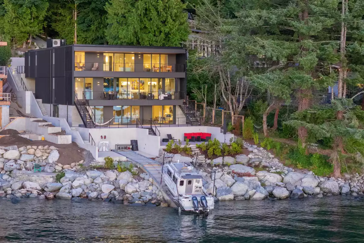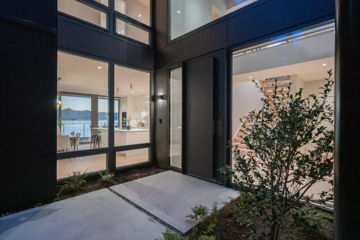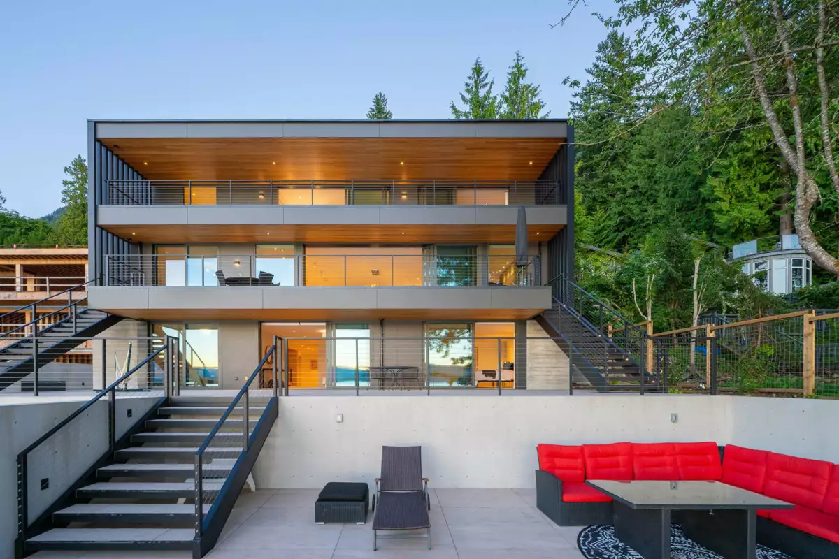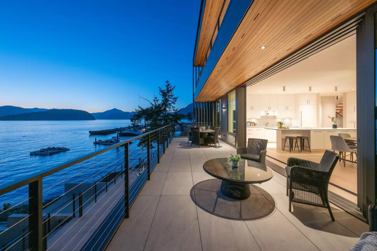 Experience 5,679 sq ft of extraordinary modern waterfront living in West Vancouver, an architectural masterpiece crafted to perfection. Just 15 minutes from Park Royal, this brand-new residence showcases flawless design with dramatic floor-to-ceiling Reynaers windows, sliding doors, elevator, and fire-resistant Linarte siding. Offering 5 bedrooms, 5 bathrooms, an office, self-contained guest suite, and an expansive studio opening to the courtyard, every detail exudes luxury. Oversized patios on every level frame panoramic ocean views—watch whales, marine life, and golden sunsets. A gated entrance, forest path, Zen creekside seating, landscaped courtyard, outdoor lighting, irrigation with rainwater capture, and private boat lift complete this one-of-a-kind estate.