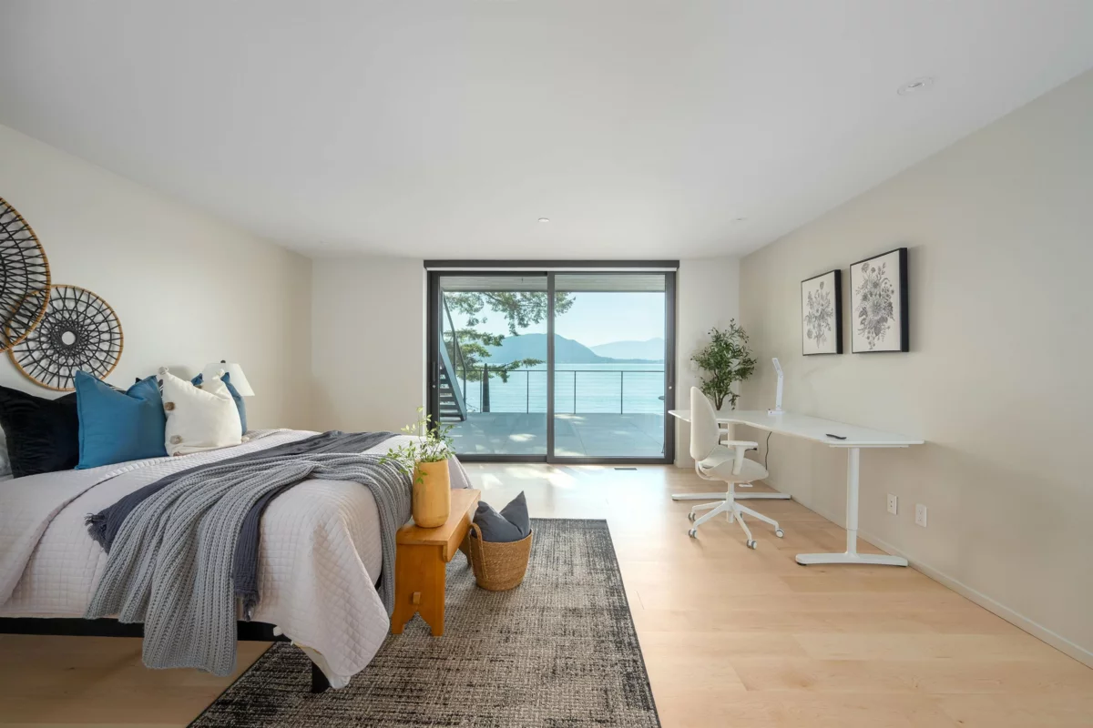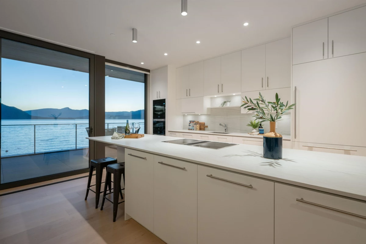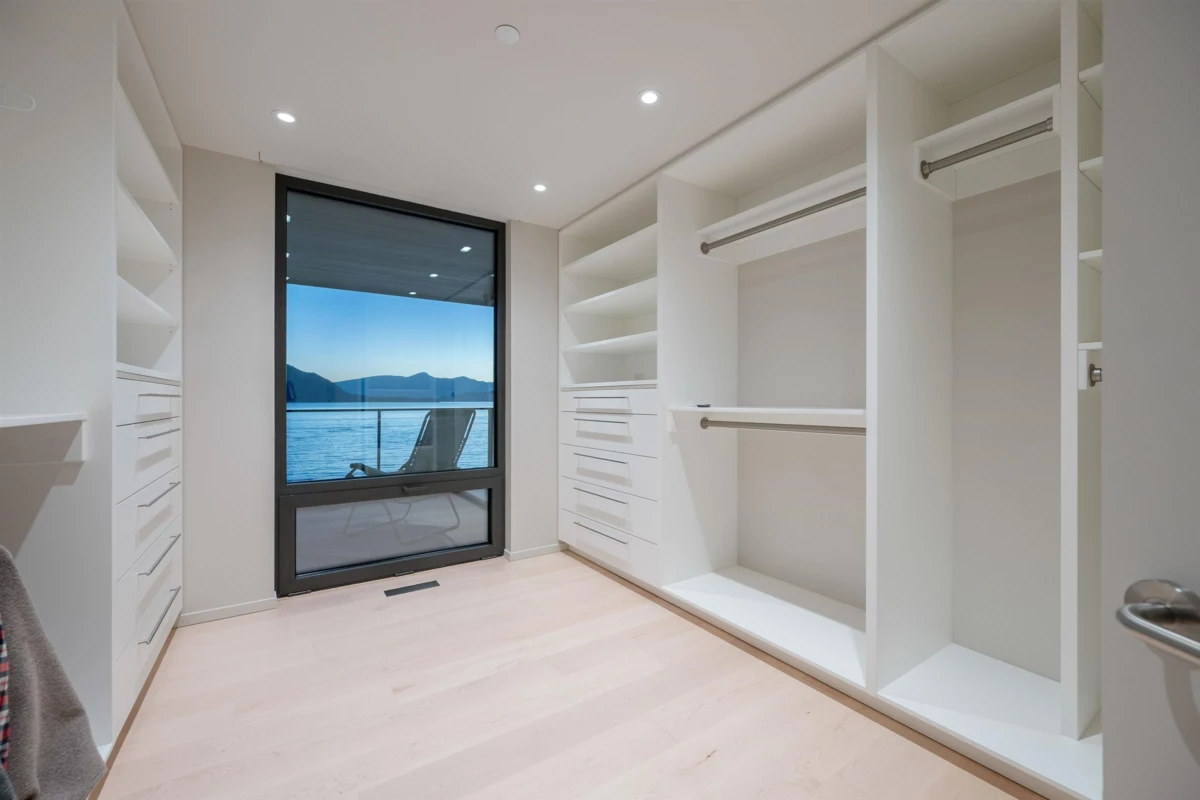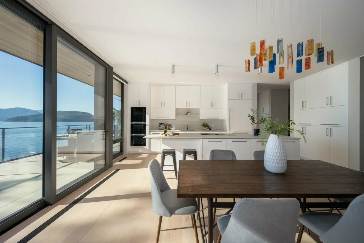 Experience 5,679 sq ft of extraordinary modern waterfront living in West Vancouver, an architectural masterpiece crafted to perfection. Just 15 minutes from Park Royal, this brand-new residence showcases flawless design with dramatic floor-to-ceiling Reynaers windows, sliding doors, elevator, and fire-resistant Linarte siding. Offering 5 bedrooms, 5 bathrooms, an office, self-contained guest suite, and an expansive studio opening to the courtyard, every detail exudes luxury. Oversized patios on every level frame panoramic ocean views—watch whales, marine life, and golden sunsets. A gated entrance, forest path, Zen creekside seating, landscaped courtyard, outdoor lighting, irrigation with rainwater capture, and private boat lift complete this one-of-a-kind estate.