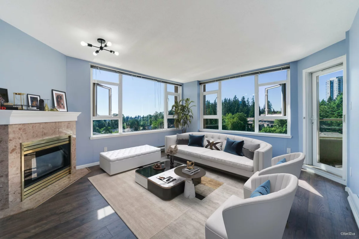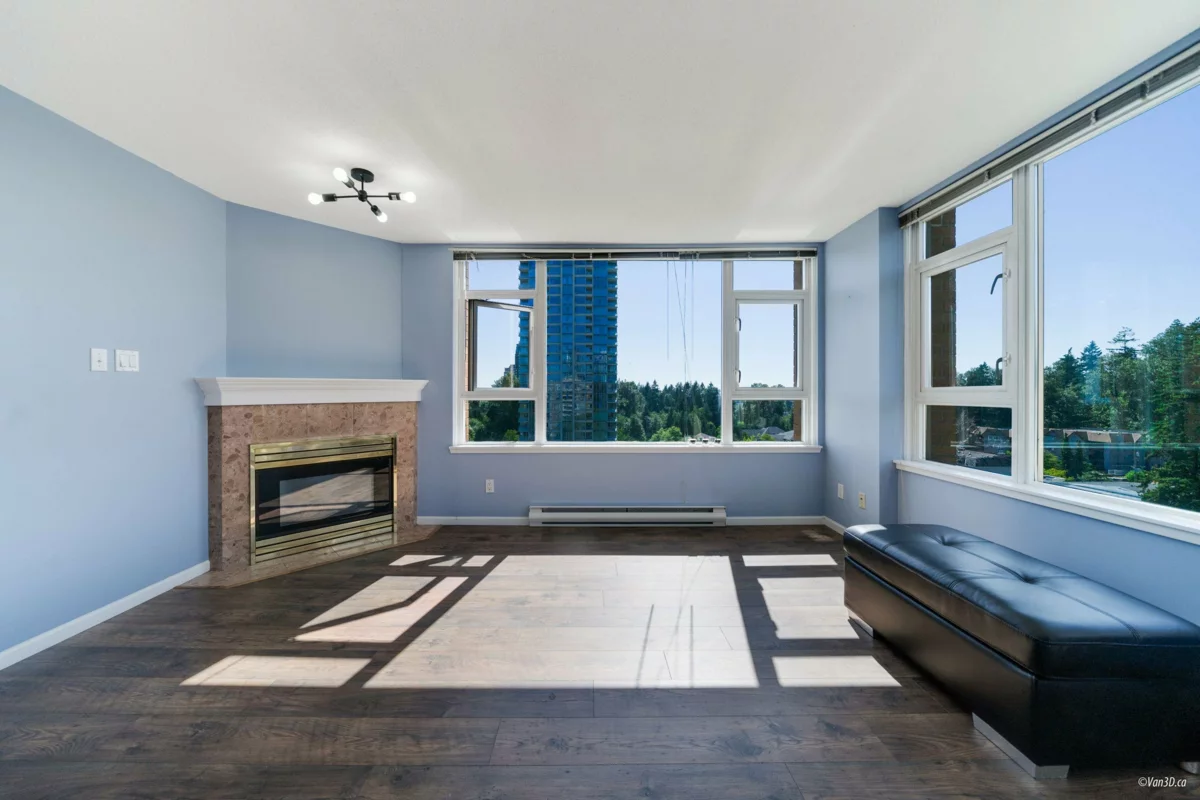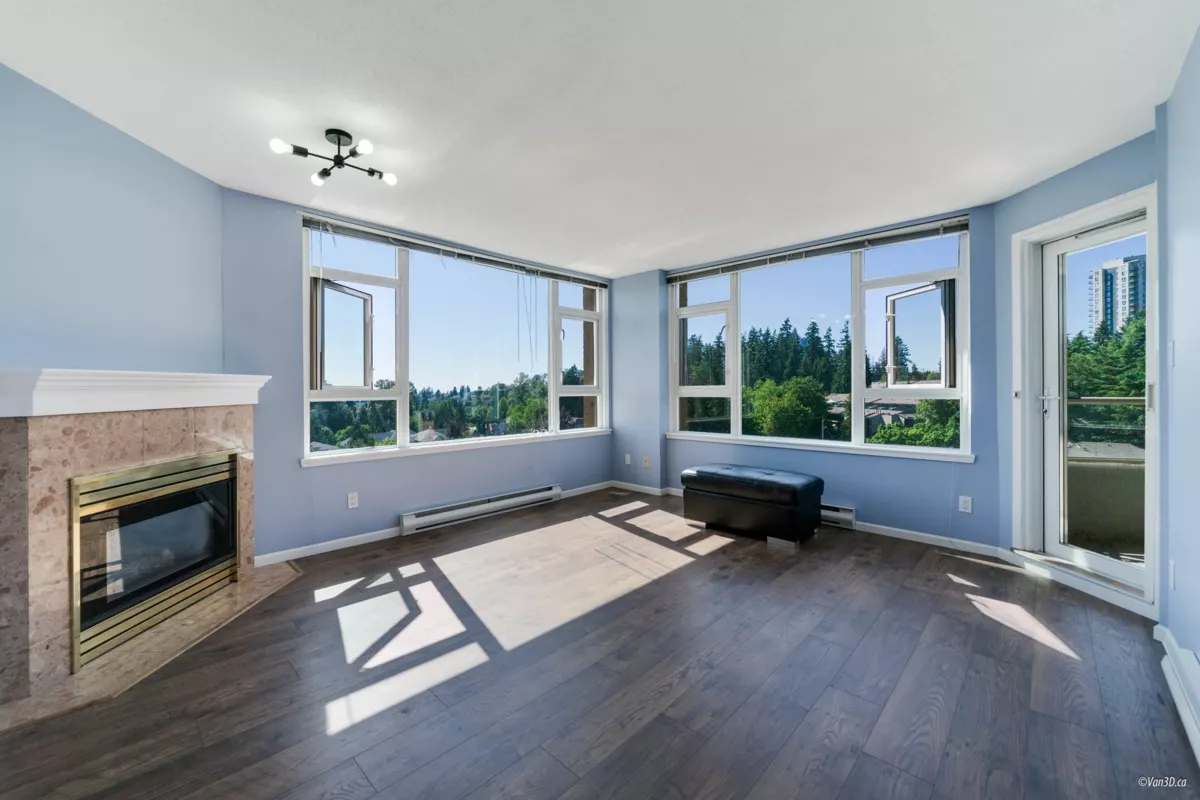 Welcome to your Sub-penthouse home at "The Parkhill" - A concrete BOSA building. This bright & spacious 2-bed, 2-bath home features stunning sunset views and a large covered balcony (24'x7'). The NW corner unit home boasts floor-to-ceiling windows, generously sized rooms, updated kitchen with newer appliances, new bathroom vanities, fresh paint, high-end flooring, in-suite laundry, & gas fireplace. Includes 1 parking, in-suite storage, + oversized storage locker. Perfect walkability to SkyTrain & Highgate Village (500m), Edmonds CC. Building amenities: bike room, sauna, exercise room, party room & EV charging. Recent building updates include rainscreen, windows, refreshed lobby/common areas, plumbing upgrades, roof, and new elevators already paid for (installation early 2026). CALL TODAY!