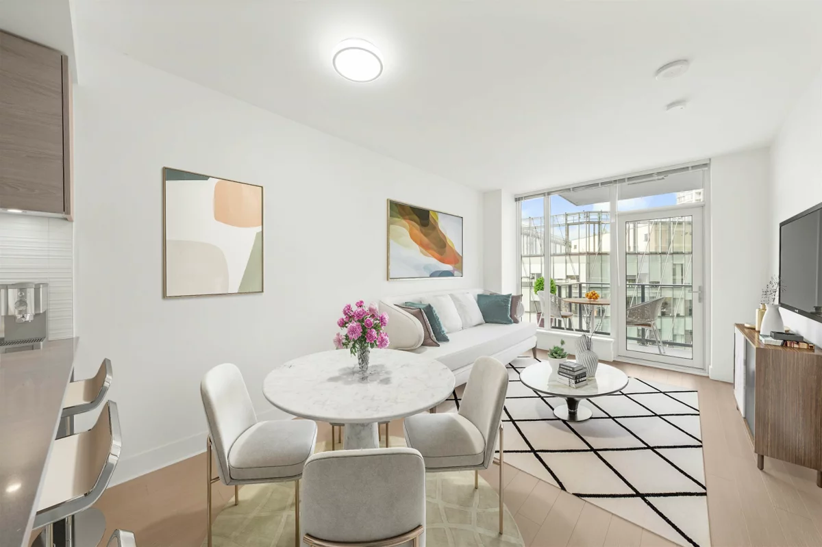 Welcome to Kings Crossing by Cressey Development an architectural statement where refined living meets urban convenience. This luminous 1 Bed 1 Bath home, offers high ceilings, & a private balcony overlooking the beautiful garden courtyard. Thoughtfully designed with year-round comfort in mind, it is enhanced by AC and expansive windows that bathe the home in natural light. At the heart of the home lies the signature Cressey Kitchen — a culinary masterpiece boasting quartz countertops, a sleek double fridge, gas cooktop, and built-in wall oven, curated for those who value both form and function. Residents are immersed in resort-inspired amenities, including a 2 Level fitness centre, indoor basketball & squash courts, sauna & steam rooms, a rooftop garden retreat and much more. Call today