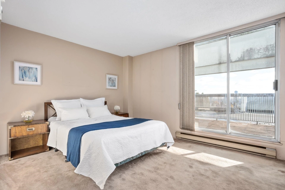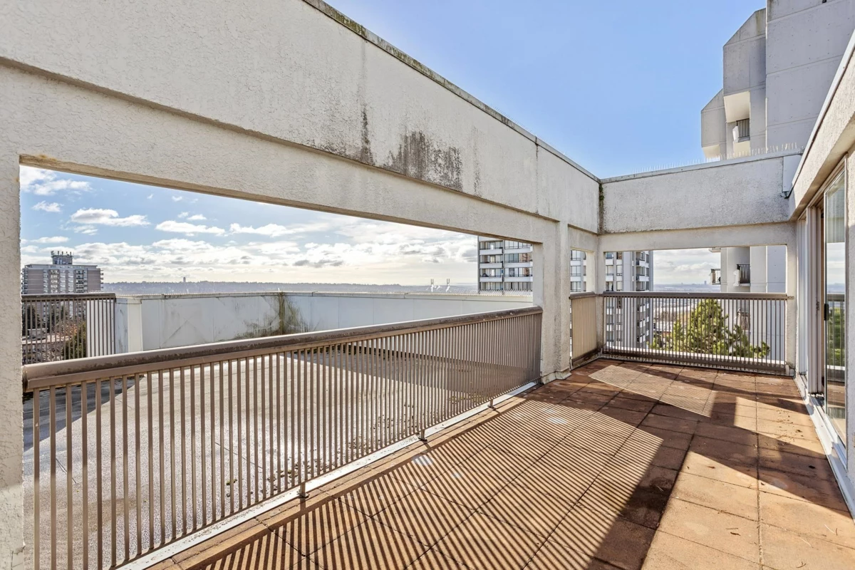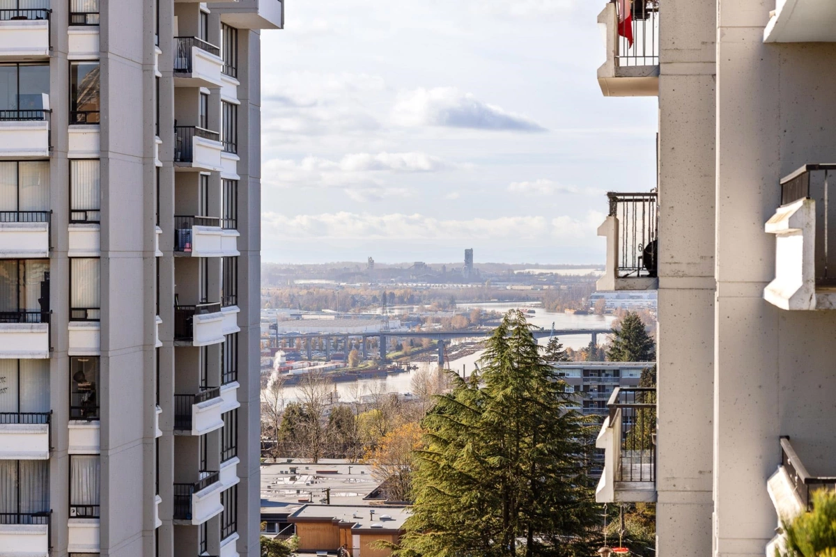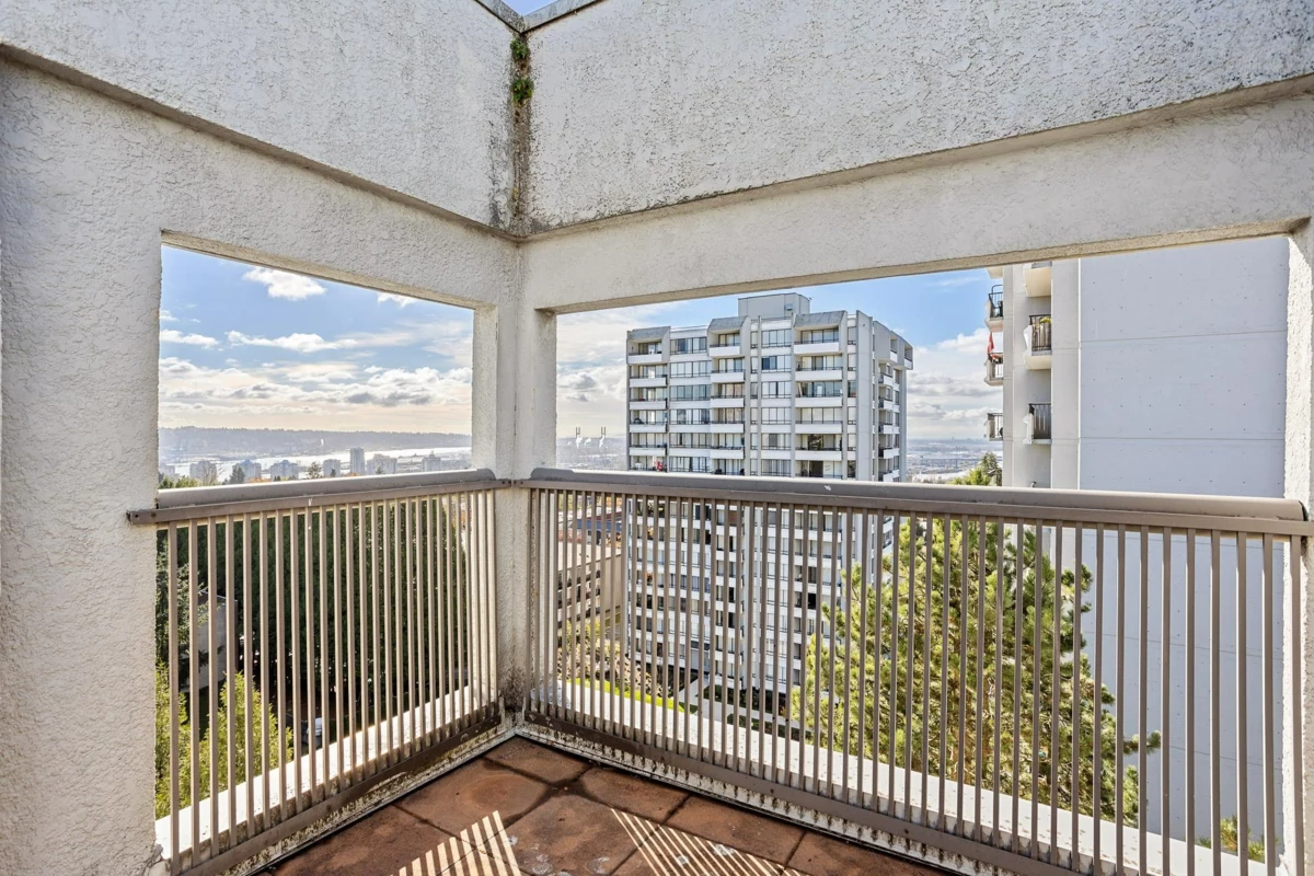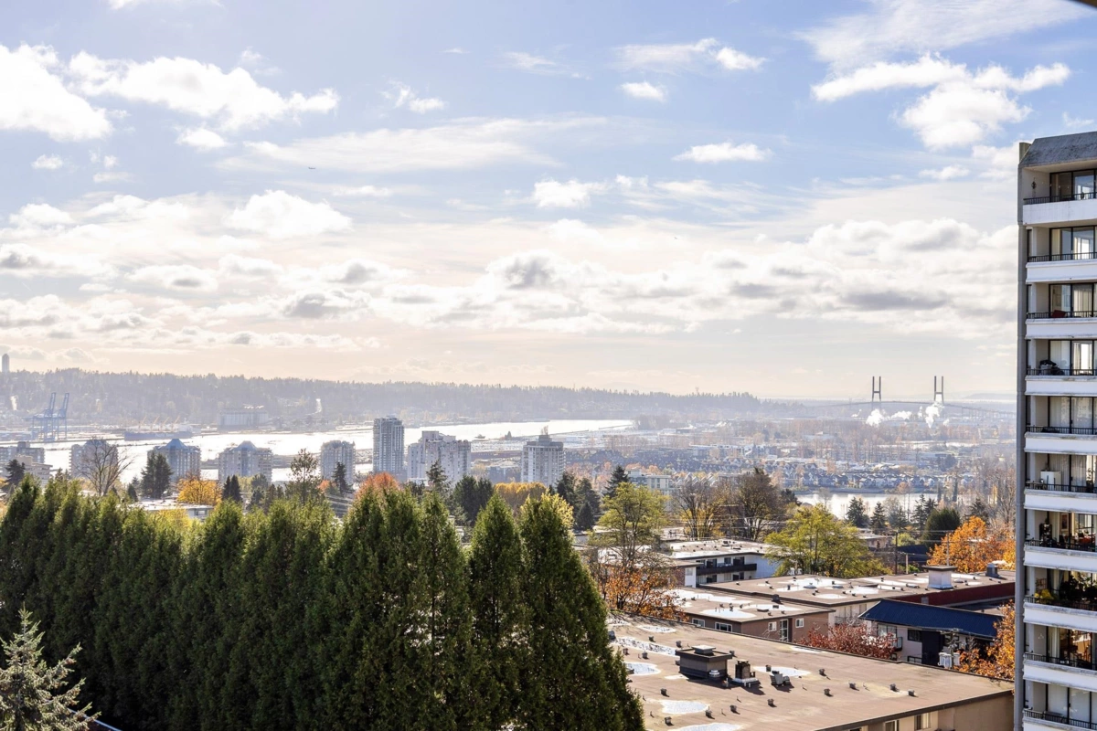 Welcome to the Park Ridge PENTHOUSE, featuring 2 bedrooms and 1 bathroom, located in the heart of Uptown New Westminster! Just steps away from schools, Moody Park, Columbia Skytrain Station, dining, shopping, and entertainment. This expansive 1133 sqft unit offers ample space to relax and settle in. With three large balconies, enjoy stunning views of the city, river, and mountains. Additional perks include two parking stalls and one locker. Don't miss this opportunity! OPEN HOUSE SEP 20 SAT 2-4PM