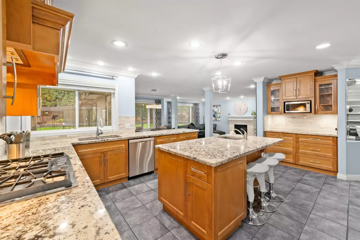 Come take a look at this grand custom built home nestled in a quiet cul-de-sac! A perfect blend of comfort and serene neighbourhood setting. The home boasts over 5,200 sq ft of living space, including 8 bedrooms and 5 bathrooms. The primary bedroom features a west-facing deck, gas fireplace, and a spa-like bath. Upgrades include a renovated kitchen with granite countertops, new windows, gutters, vinyl decking, and more. Spacious west-facing backyard, perfect for enjoying afternoon sun and outdoor entertaining. The property also offers a large basement suite with 3 bedrooms, a triple-car garage with EV charger, and space for an RV. Close to schools and shopping centers, providing convenient access to daily necessities.