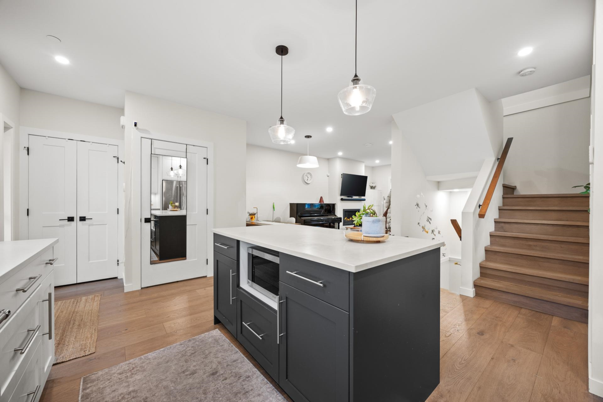 Beautifully crafted front duplex built in 2020 with 1,470 sq.ft. of quality living in the heart of East Vancouver. Bright main level with high ceilings, engineered hardwood, electric fireplace and a modern kitchen with quartz counters, gas range and large island. Upper floor offers three bedrooms including a serene primary with ensuite. Lower level has a self-contained studio with kitchen, laundry and separate entry—ideal as a mortgage helper or guest suite. Bonus 176 sq.ft. crawl space plus attic storage for seasonal items. Craftsman curb appeal, fenced yard, patio, radiant floor heat, hot water on demand and ample built-ins. Walking distance to parks, top schools, vibrant Fraser Street cafés and daily conveniences—offering comfort, function and East Van charm in a sought-after community.