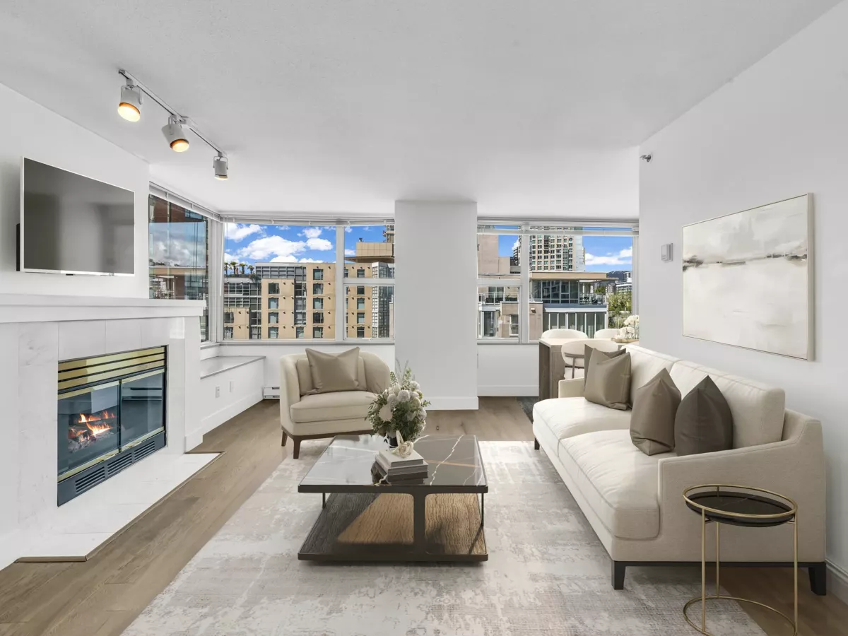 Welcome to 888 Beach. Great opportunity to secure a home in the desirable Beach District. Close to the Seawall, English Bay, Granville Island, Downtown and many restaurants/shops in trendy Yaletown. This complex has a 24-hr Concierge, gym, indoor pool, sauna, EV (shared) and a private inner courtyard with greenery/reflecting pool. This 2 bed, 2 bath southwest-facing condo has a view of the marina and features engineered HW floors throughout with a gas fireplace in the living room. The kitchen has granite countertops and updated S/S appliances. The primary bedroom is large enough for a king-sized bed. Includes 2 parking & 1 storage. Some photos are virtually staged.
