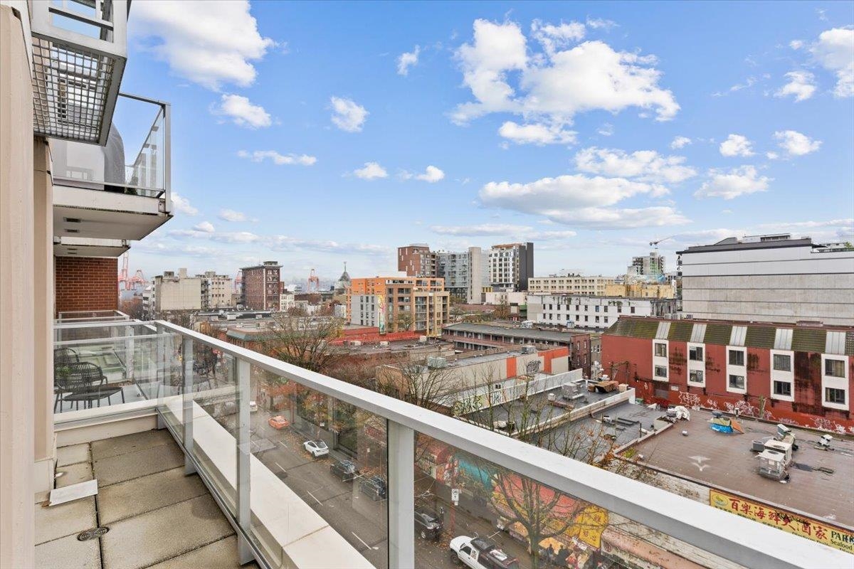 This modern 2 bed + flex SUB-PENTHOUSE at Keefer Block features 3 BALCONIES (322 sq.ft.) with city, mountain & peek-a-boo water views! European-inspired design with high-gloss cabinetry, wide-plank flooring & integrated appliances. Upgrades: BBQ gas hookup, added sound-proof wall insulation, lighting, & high-end doors. Flex room perfect for an office. Heating & gas included in strata fee. Amenities: rooftop with movie screen, BBQ, garden plots, dog wash, bike room & party room. Strong rental demand with proximity to SkyTrain, Downtown, the new St. Paul’s Hospital, and the city's best cafés & restaurants. Airbnb & short-term rentals allowed. Pets OK (3). 1 parking & 1 storage included (both oversized!). Turnkey opportunity in a high-growth neighbourhood! Open House Sat Nov 29, 2-4pm!