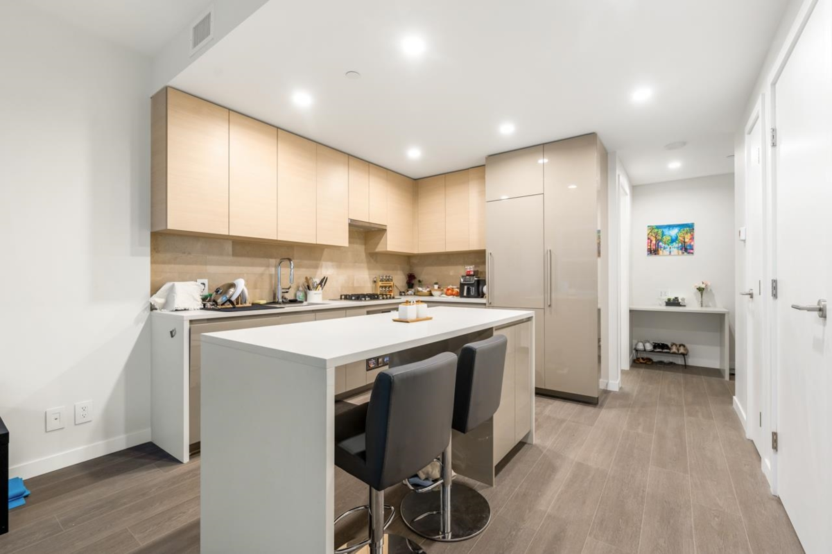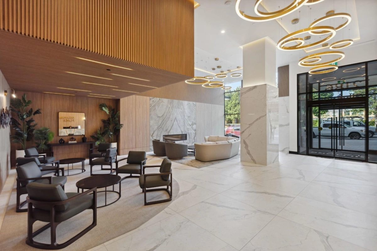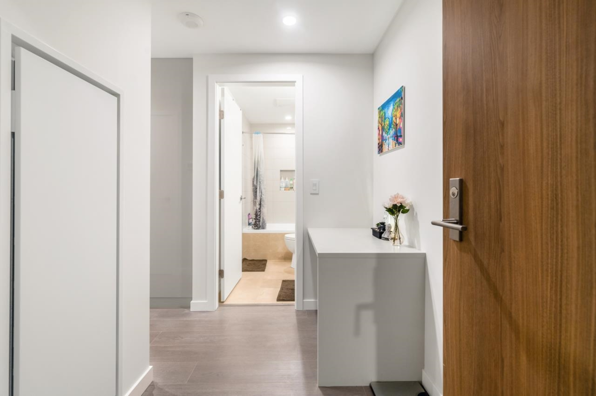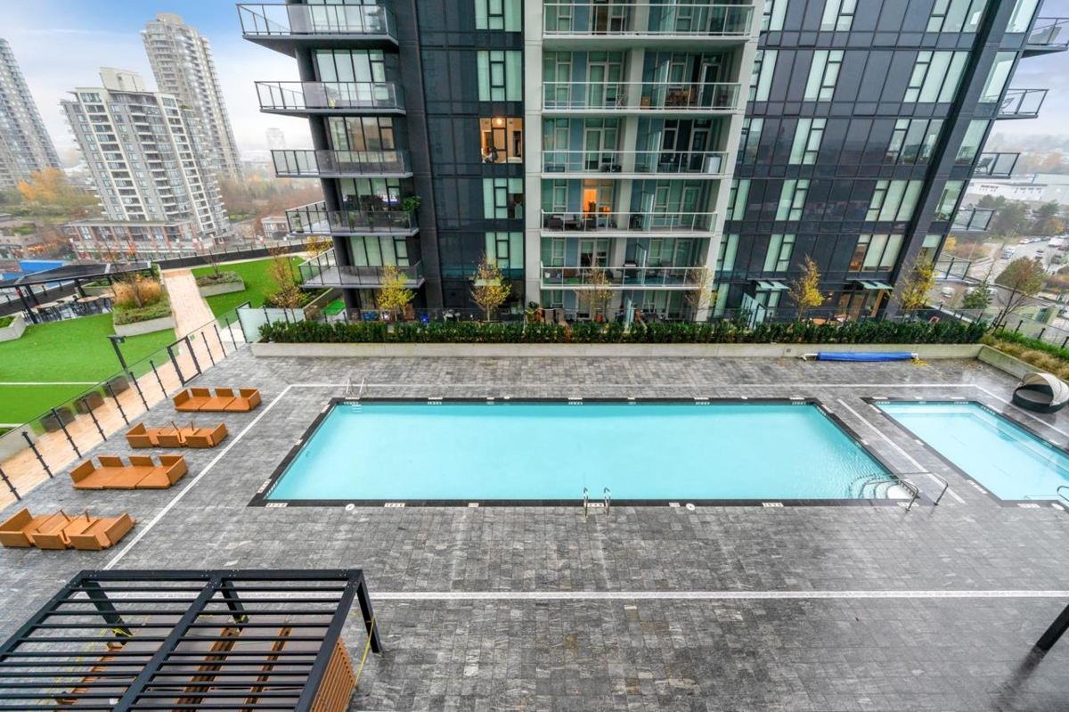Amazing value for investment or live-in at north Burnaby's landmark Gilmore Place II by Onni Group! This south facing brand new like home offers all the features of luxury modern living: 9 ft ceiling, functional layout with no wasted space, high-end finishings & appliances, big windows, over-sized walk-in closet, balcony overlooking garden & outdoor pool, etc. Over 75,000 sqft resort like amenities: concierge, gyms, in & outdoor pools, party rooms, bowling, golf simulator, music rooms, kids' play rooms, 5 guest suites, theatres, etc. Unbeatable transit friendly location right next to Gilmore skytrain station, walkable distance to Amazing Brentwood mall, shops, restaurants & the future T&T. 1 storage locker. No parking stall. Open House Nov. 30 (Sun) 2-4pm.