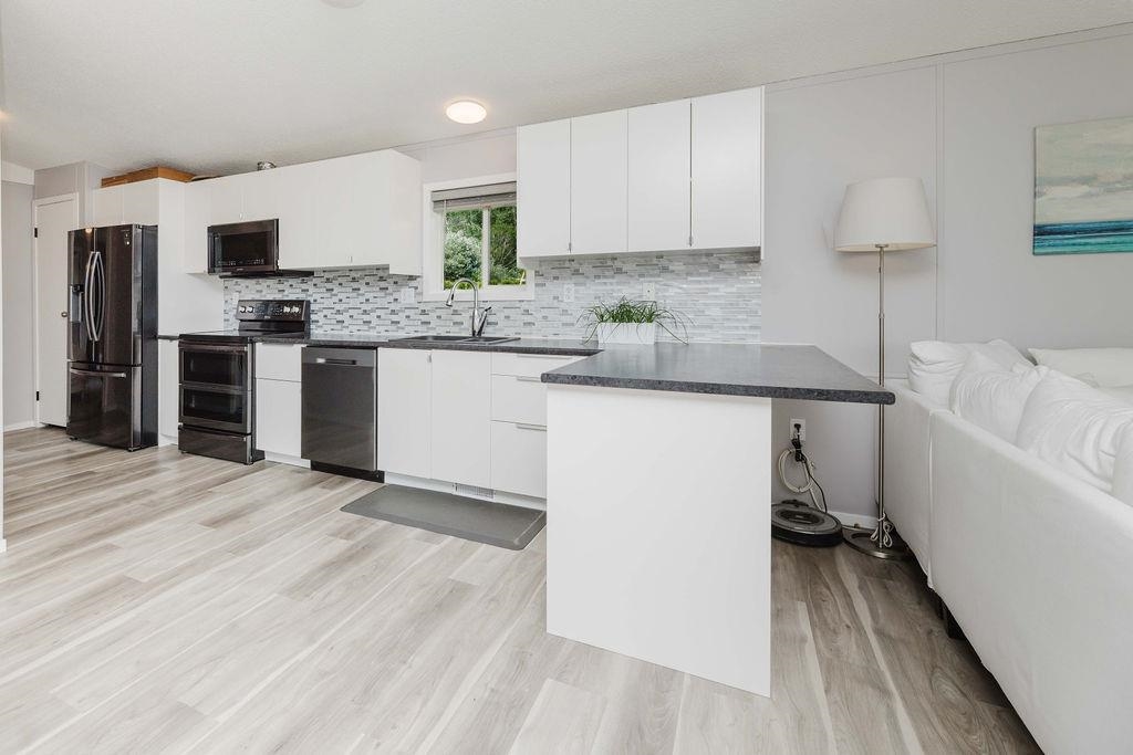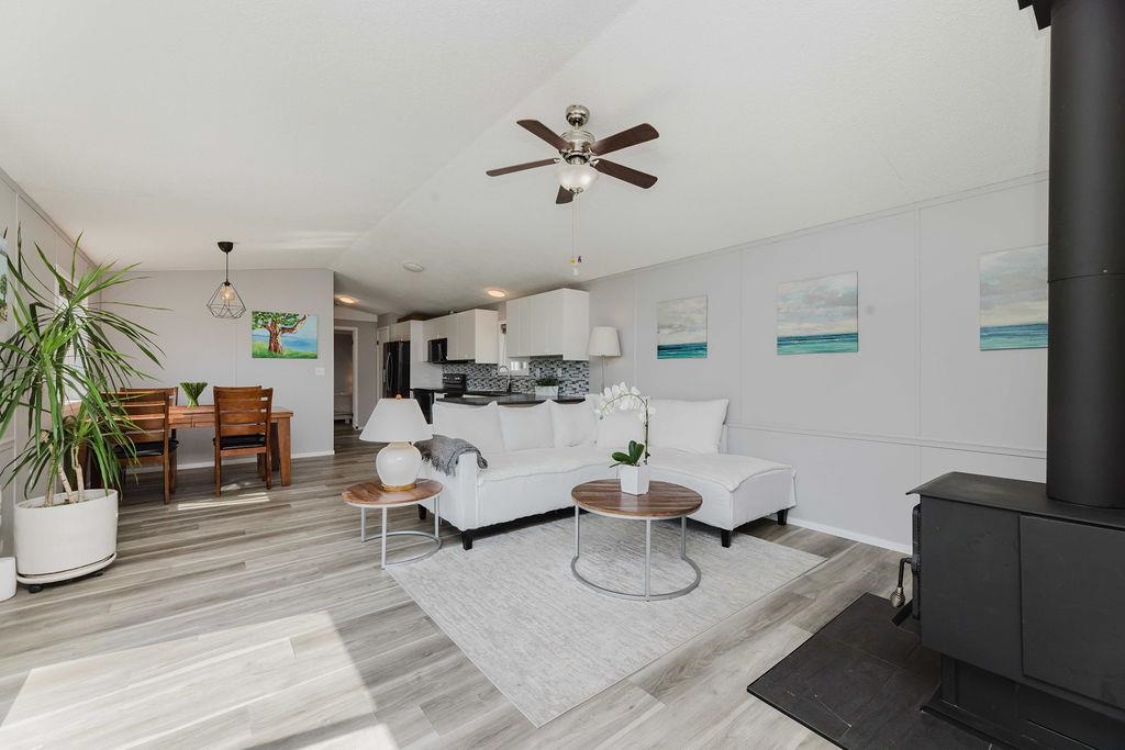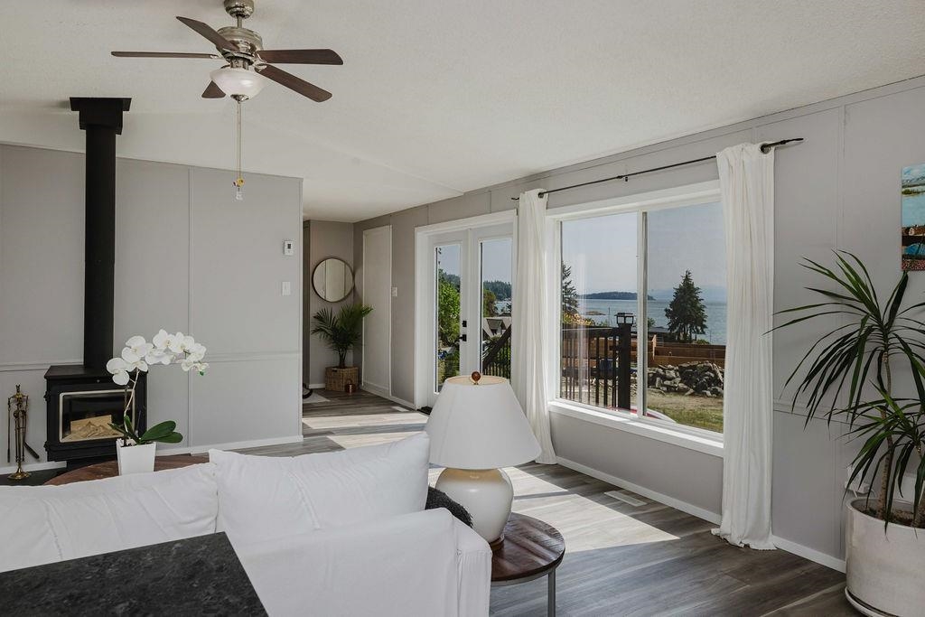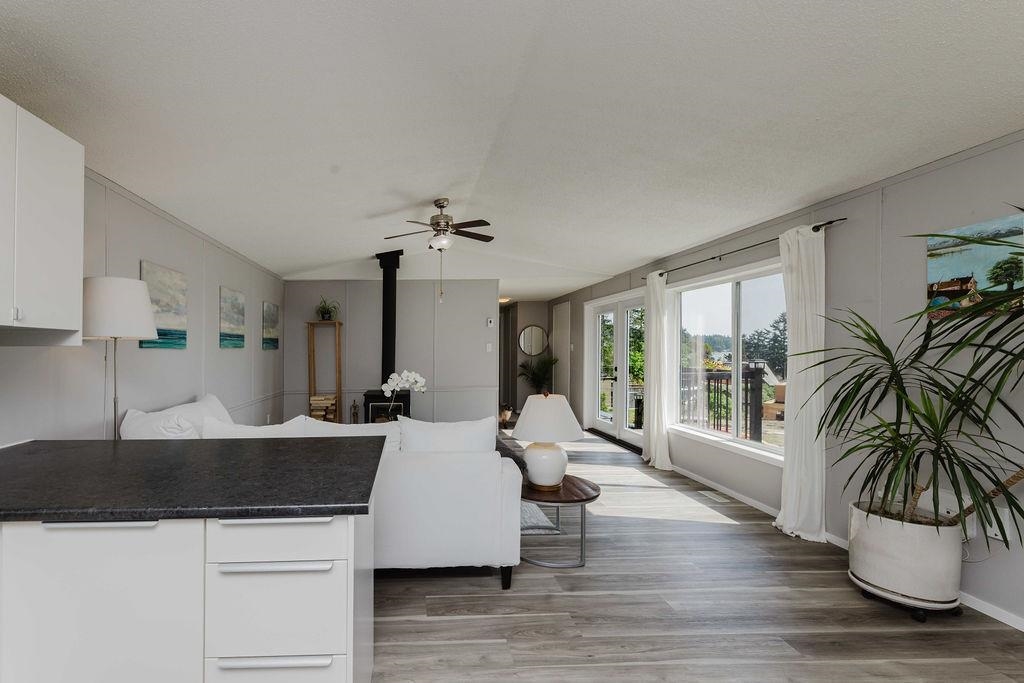 Beautifully bright and updated 3 bedroom, 2 bathroom manufactured home with incredible ocean views in Halfmoon Bay. Large lot, spacious backyard with toolshed and woodshed. Cedar hedge and fence to be built in near future for privacy but not impeding on the ocean view. Close to hiking trails, beaches, general store and transit. New metal roof, new siding, easy to maintain landscaping and a lovely patio to sit and enjoy the ocean views. The open layout has spectacular views, a new wood stove to keep you cozy all winter long and large windows to get plenty of sunlight. Well insulated with 2 x 6 wall construction rather than the standard 2 x 4. 13 minutes to Sechelt and affordable coastal living, this property will not disappoint. Private pad rental (includes property tax) by owner.
